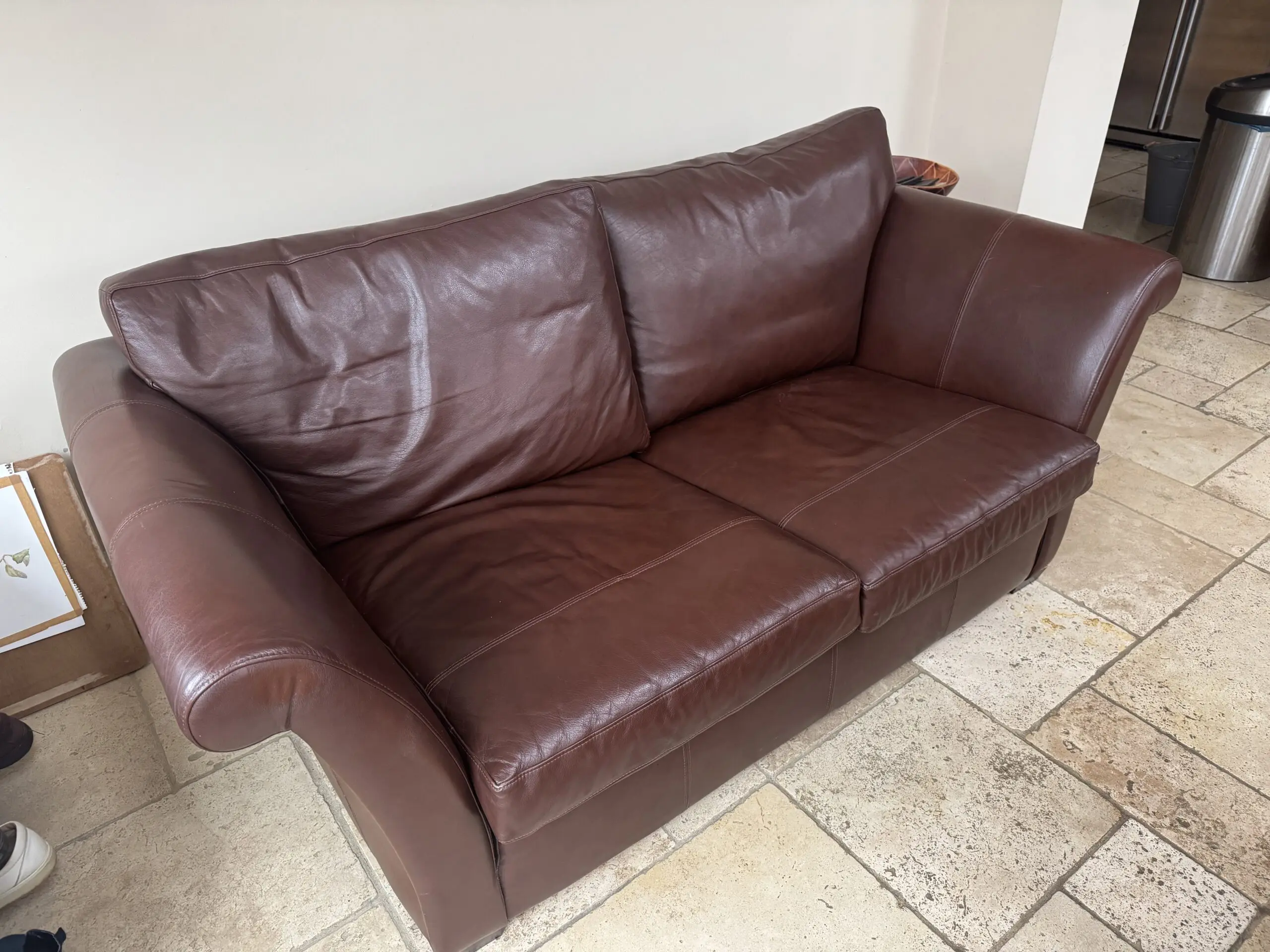Beautiful leather sofa in good condition. (The height measured is to the top of the arms).