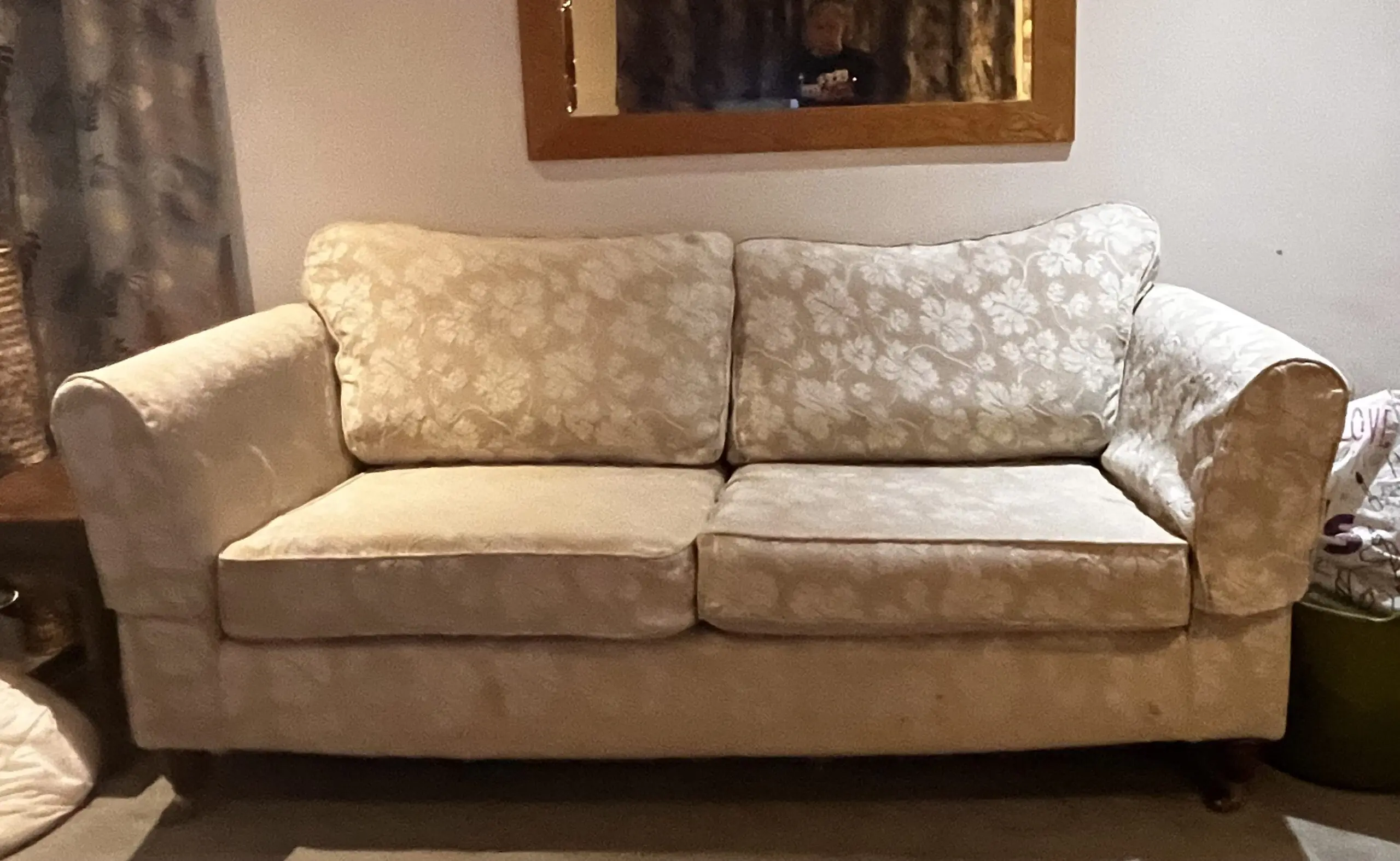 This lovely 3-seater sofa offers comfortable seating for your living room with classic styling that suits most home decors. The sofa features attractive floral patterned back cushions that add a touch of elegance, paired with coordinating plain seat cushions. Built with a sturdy frame and well-padded cushions, it’s perfect for relaxing or entertaining guests. The neutral colour palette makes it easy to incorporate into your existing furniture arrangement.