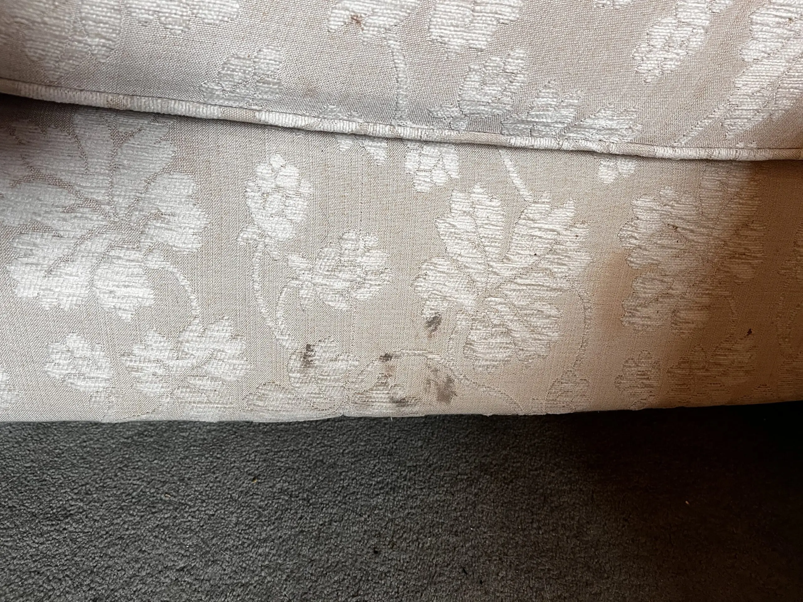 Washable cushion covers and arm protectors. Some staining to the material on the frame, hence price, that should be possible to be cleaned.