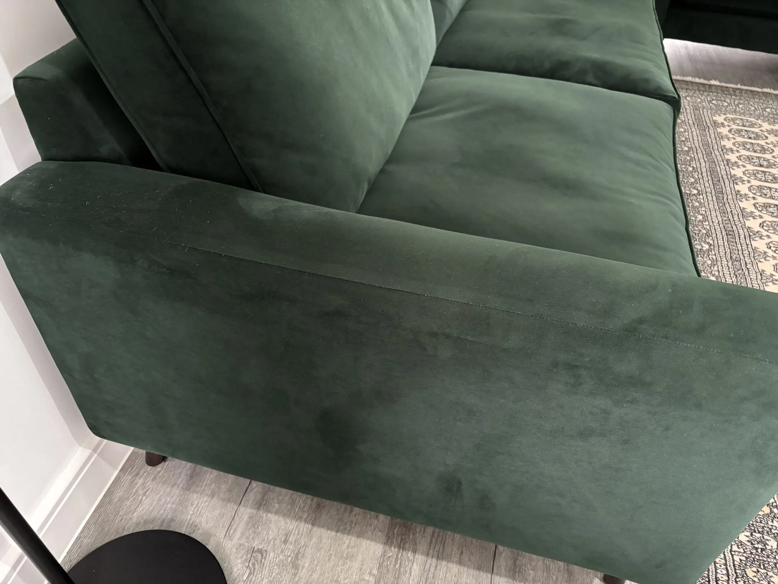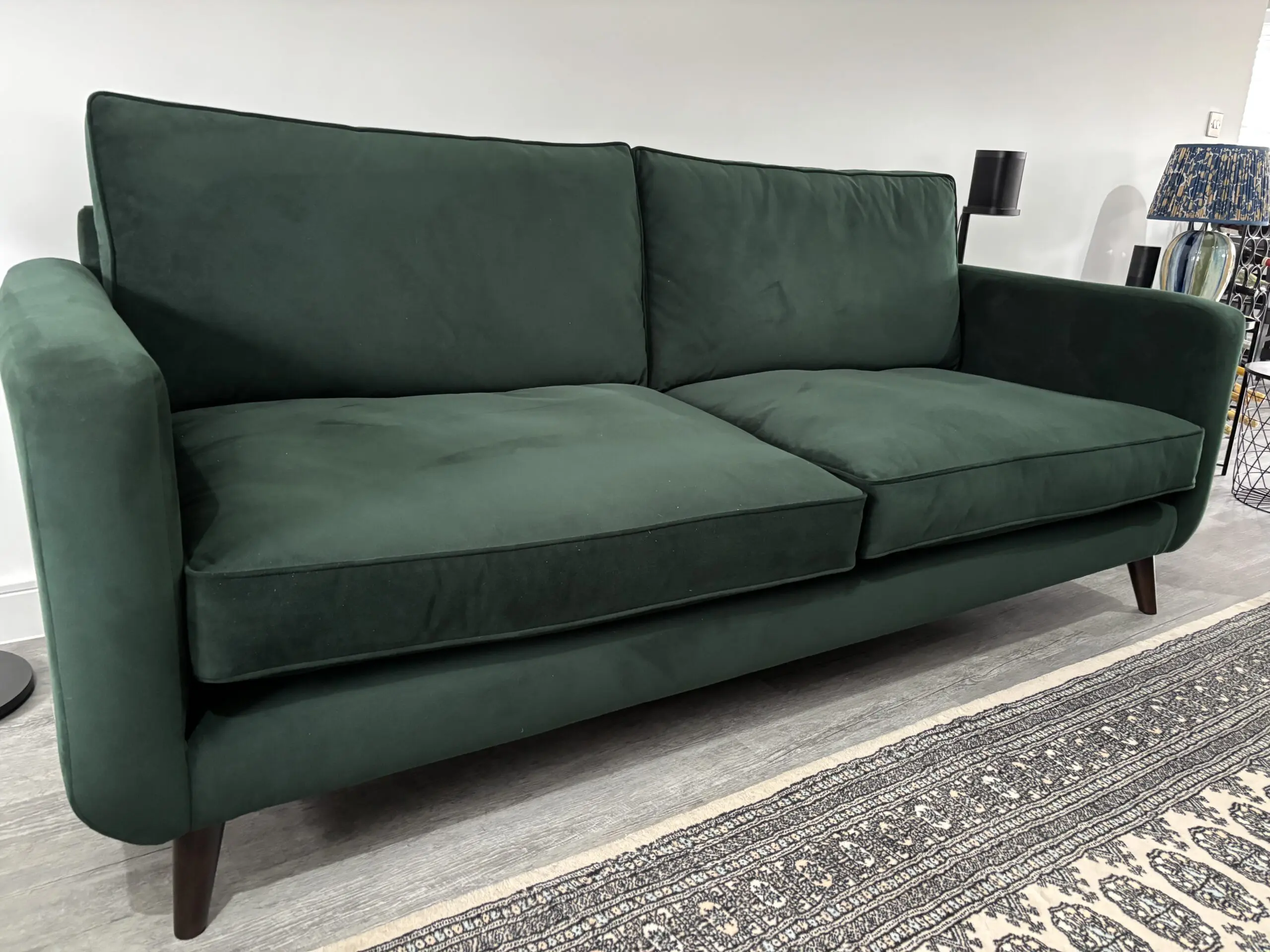 ‘Grace’ bespoke sofa, made by renowed Long Eaton Sofas. Nearly new, barely used, reluctant sale. Hard wearing stain guard fabric, ‘fusion’ cushion inserts.