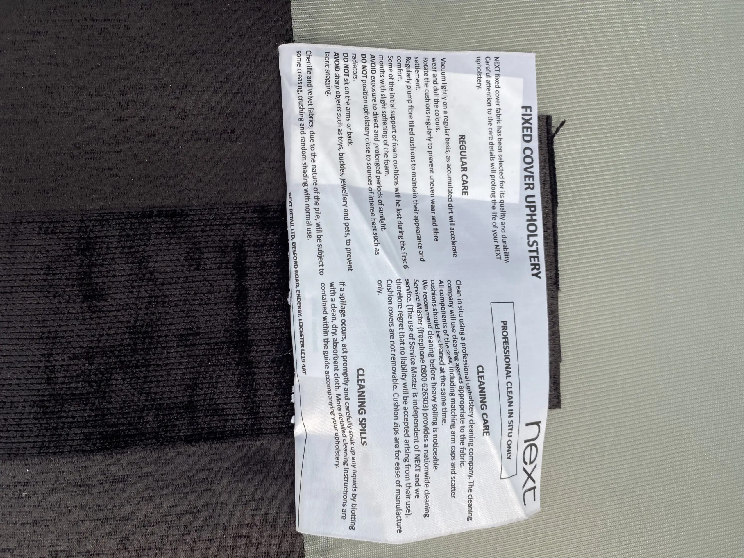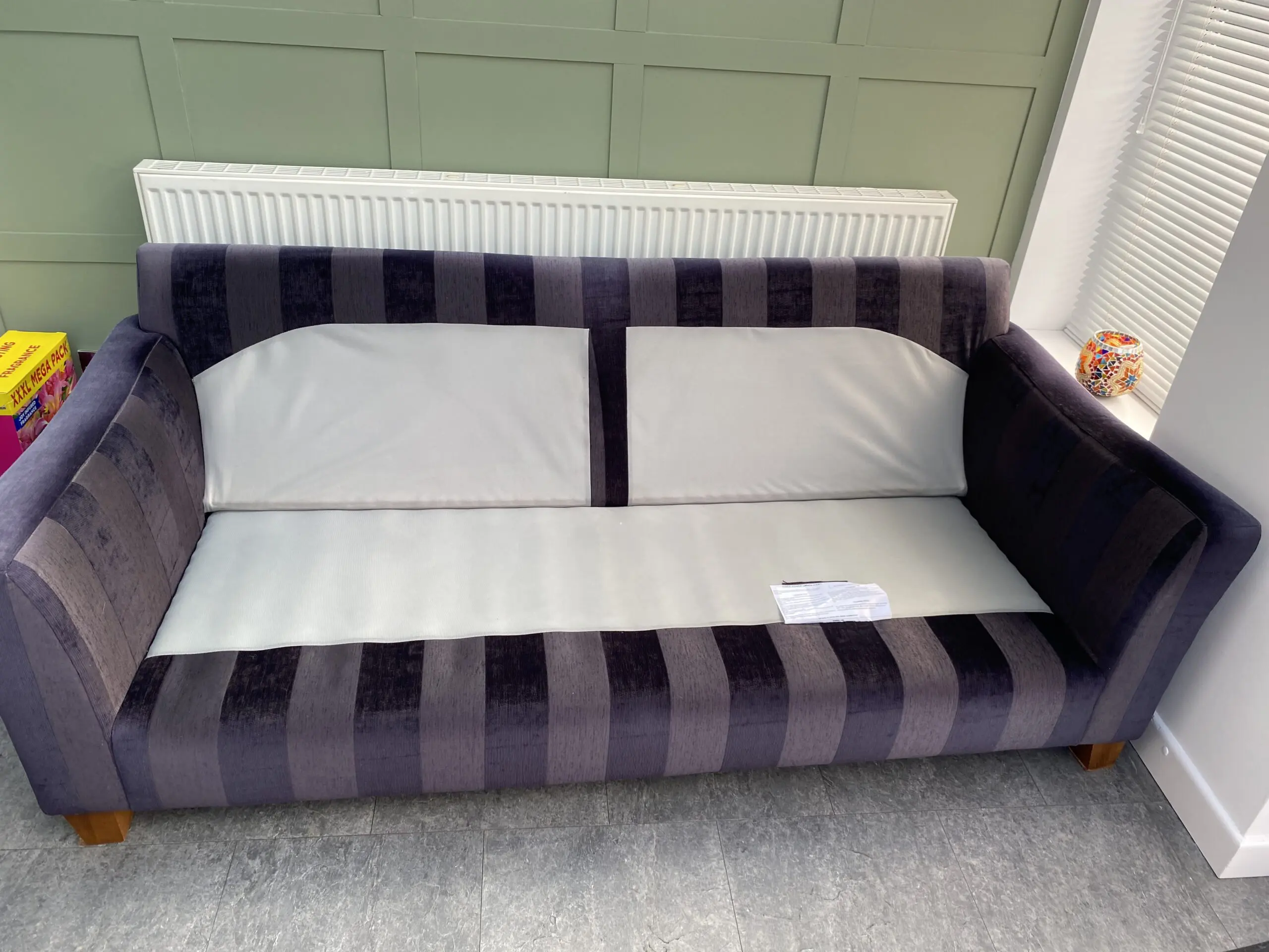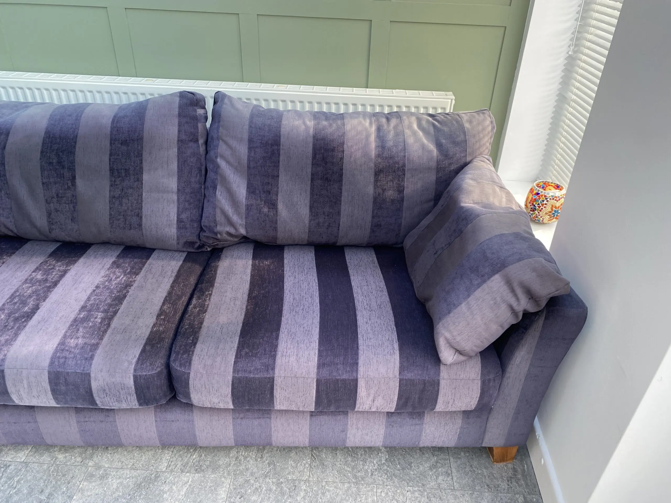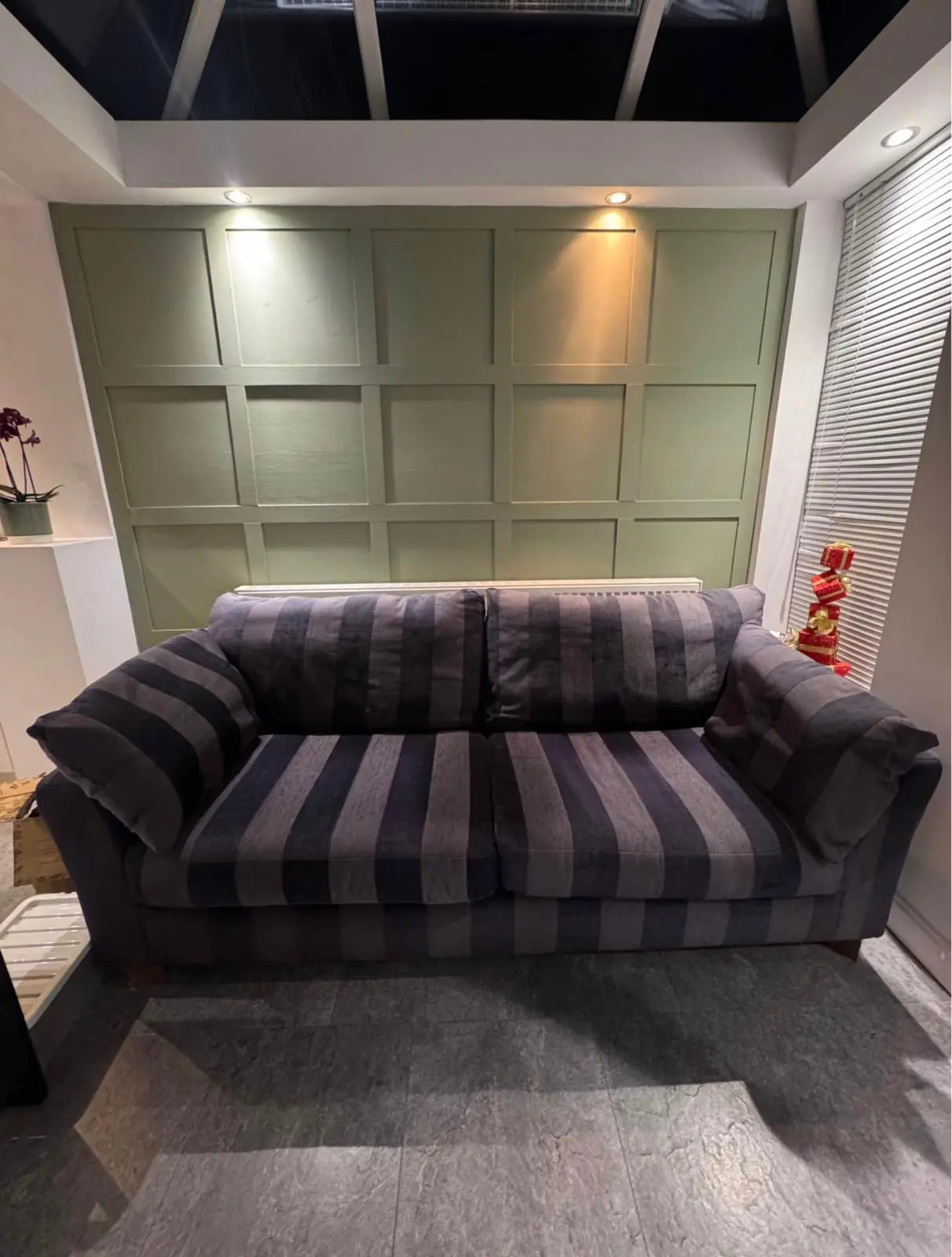 Black thick striped Sofa removable cushions. Extremely comfortable, hardly used. Spotless no marks. Slightly discoloured with the sun