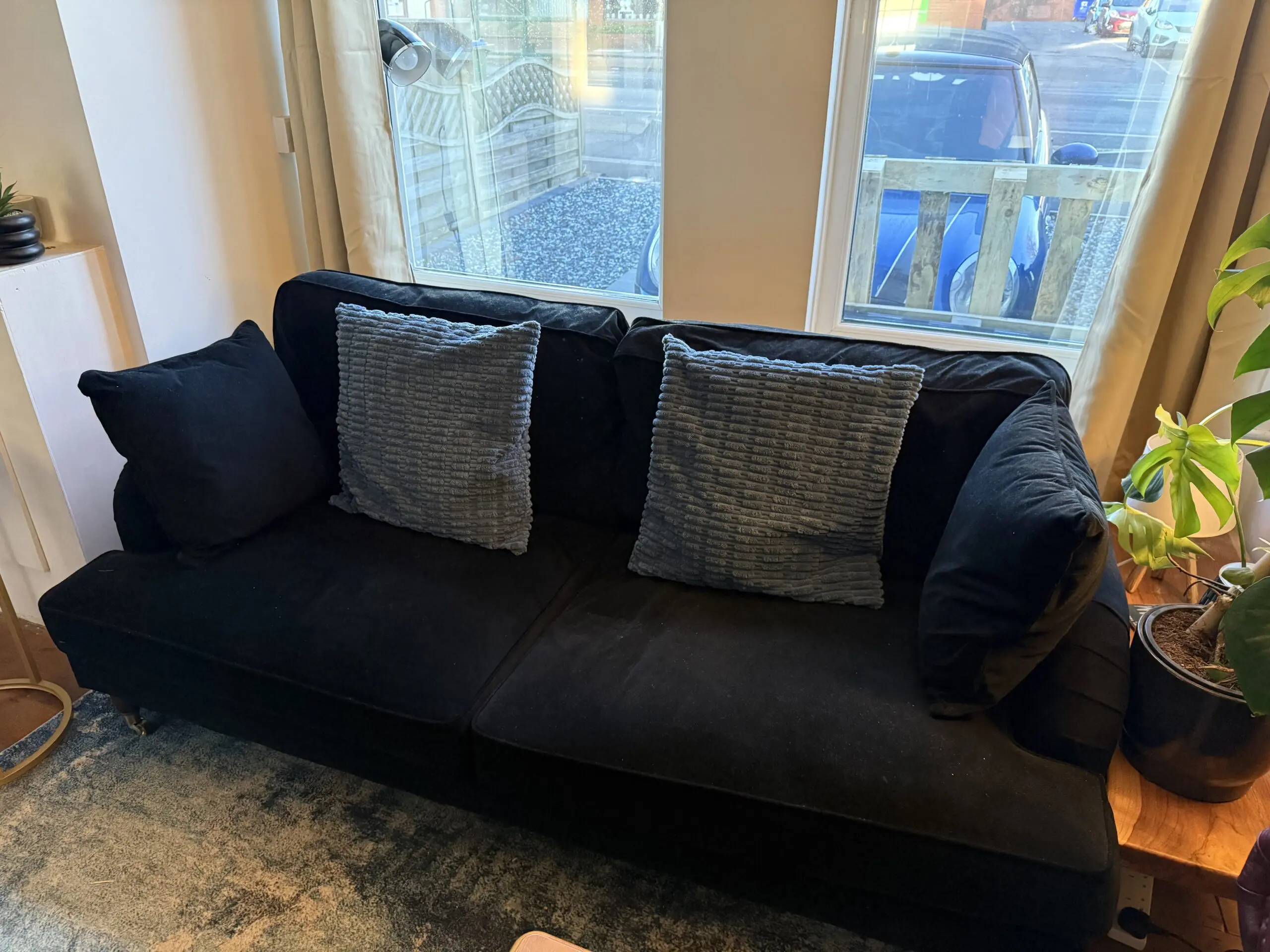 Black Velvet 3 seater sofa for sale. Immaculate condition.
