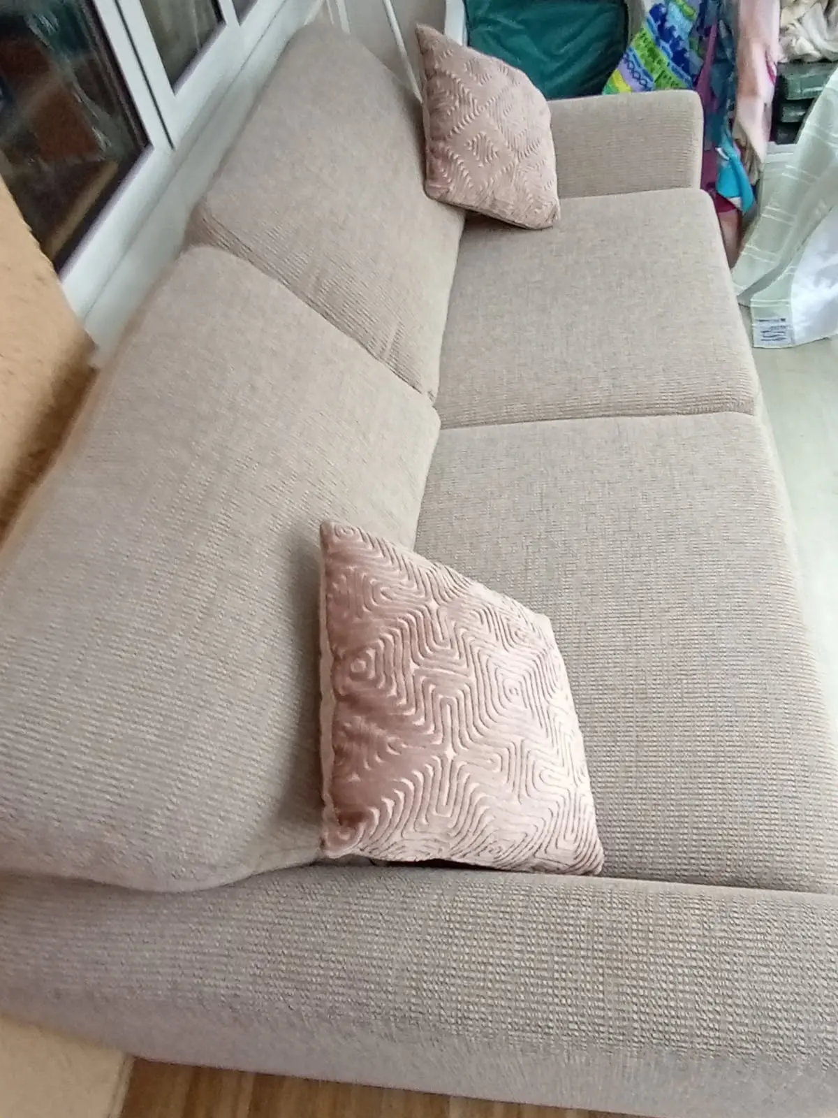 It is brand new, comes with x2 scatter cushions. The seat and back pads have a zip for removal for washing and the fire tags are still attached.