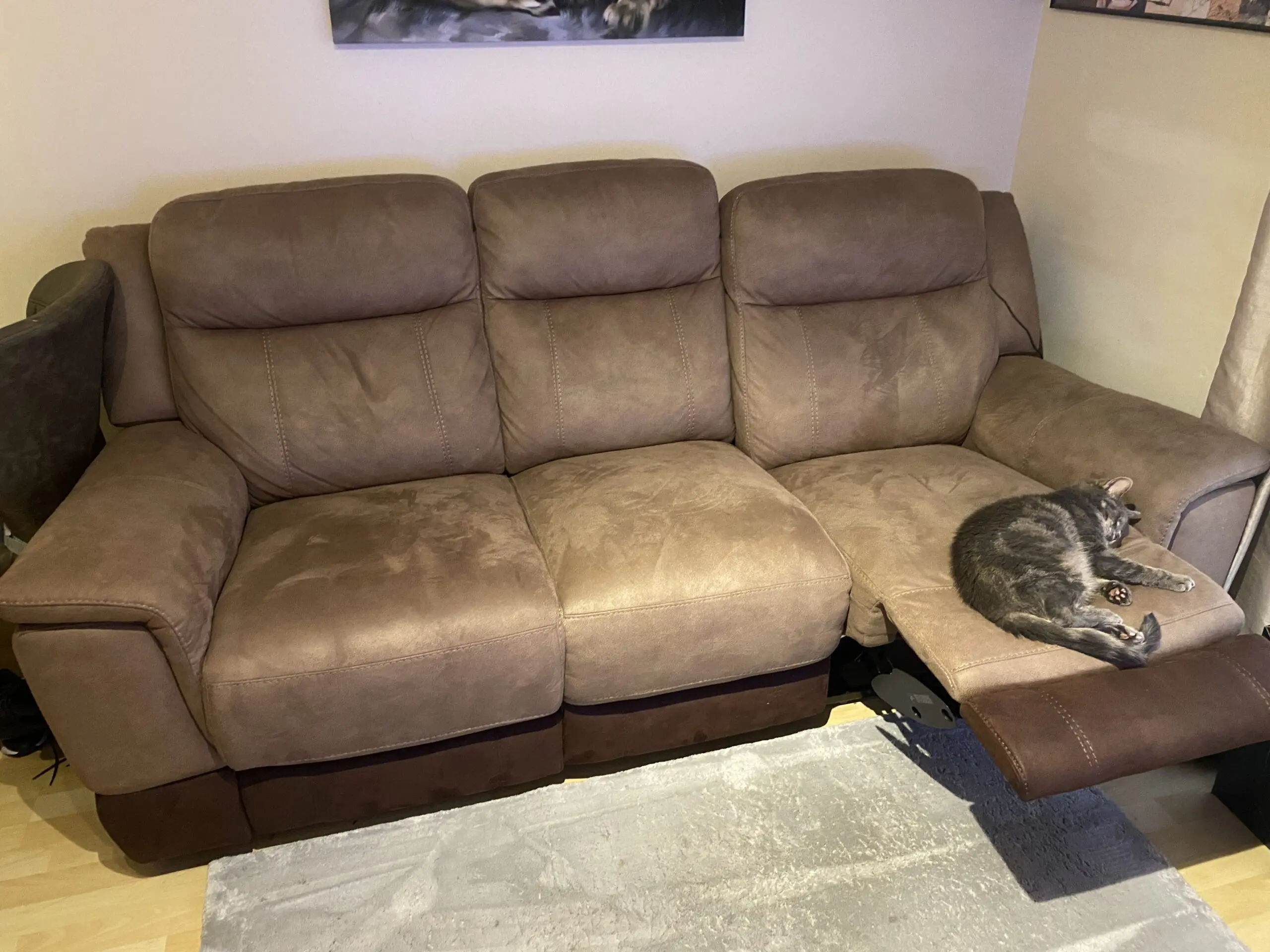 Bought new from DFS 5 years ago. Some marks but no damage. In good working condition. Very comfy