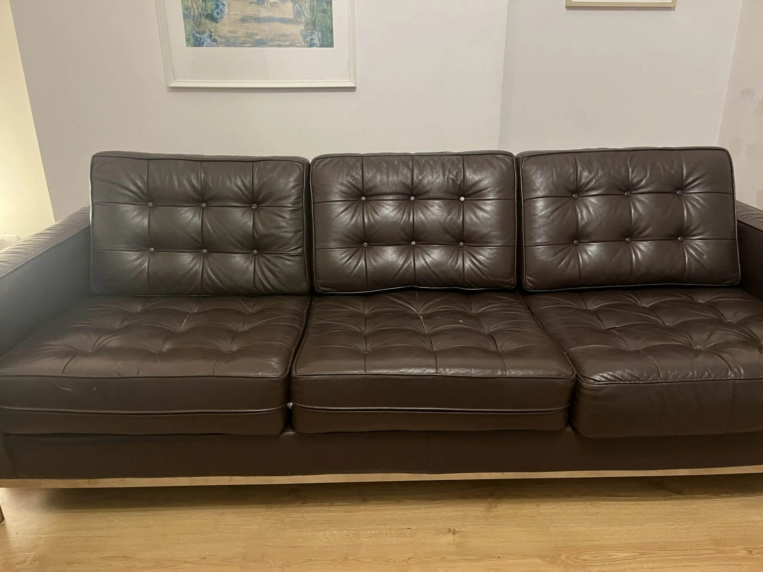 Extremely comfortable and sturdy. Back cushions can be removed to use as sofa bed. In good condition without noticeable faults. Also have 2 seater 168×91 cm with two places where material has split along seam so can be repaired. Well loved but need to go as moving home and no space for them.