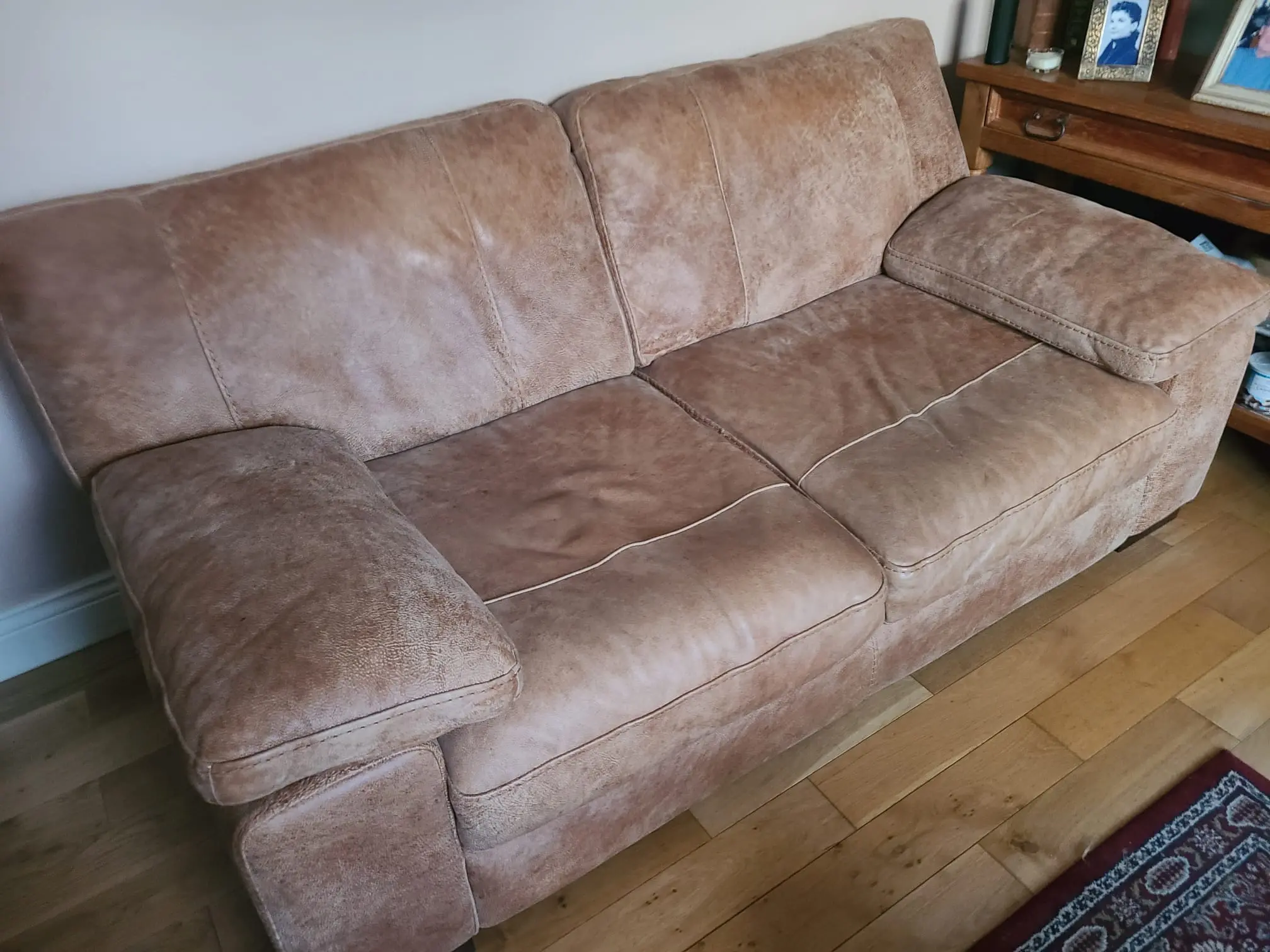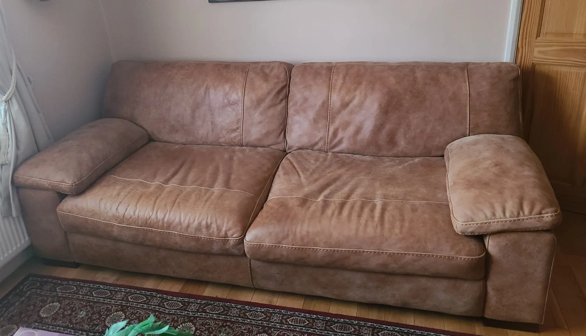 3+2 Leather Nubuck sofa’s …………….Comes from a smoke-free home, dog owner, but he is not allowed on our settees, they are 4 years old, we are just two people , no kids, bought in June 21. in great condition, Wife just fancies a change.
