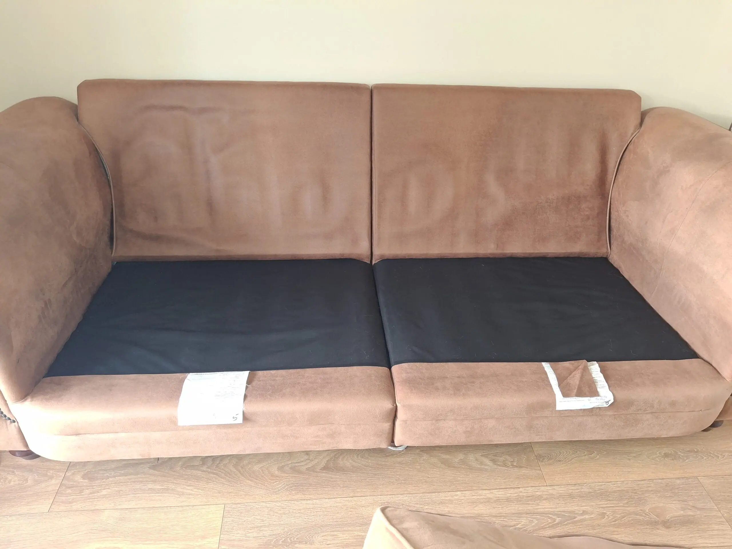 Brown Suede Effect 3 Seater Sofa With Cushions. Bought From SCS.