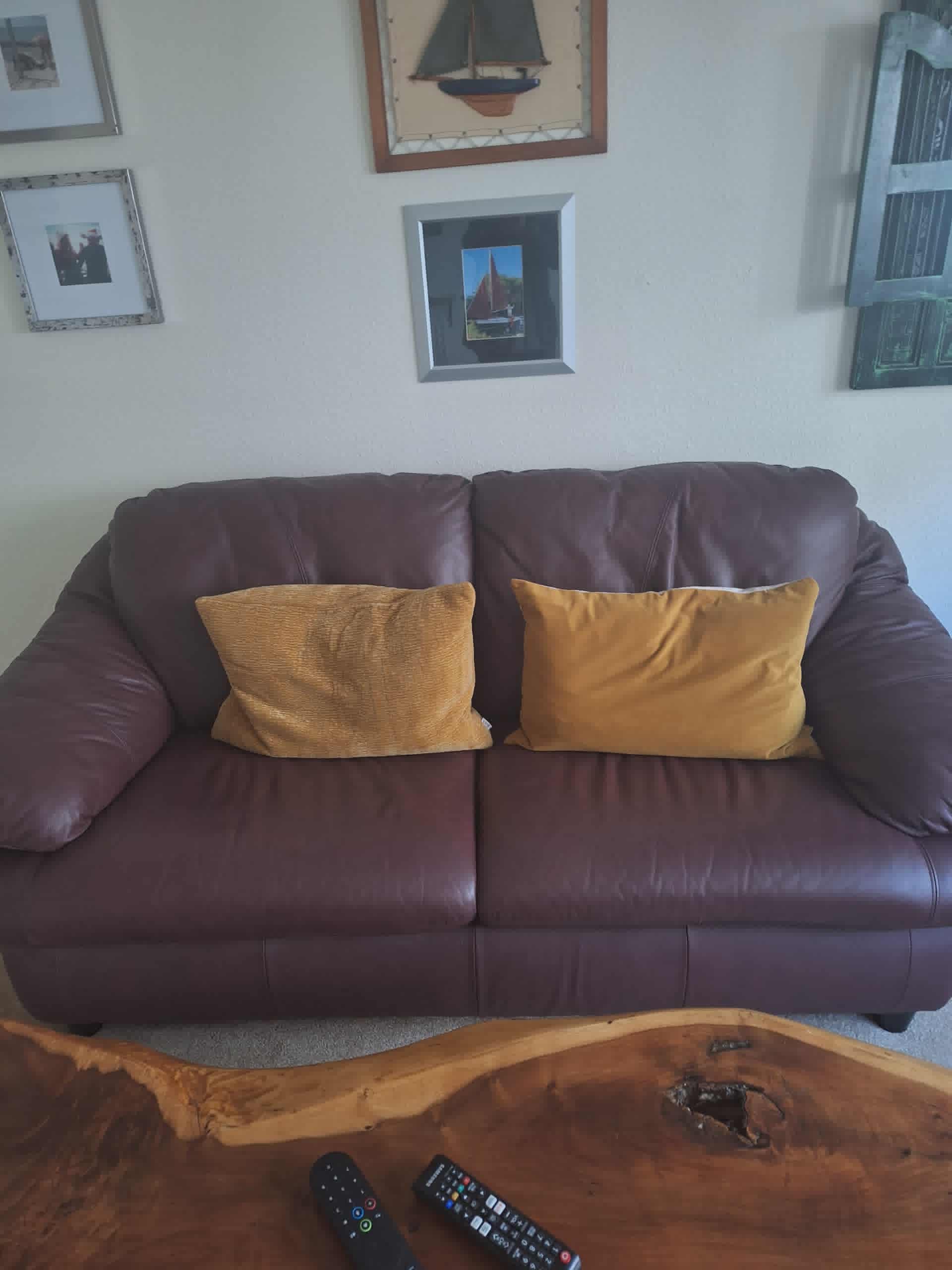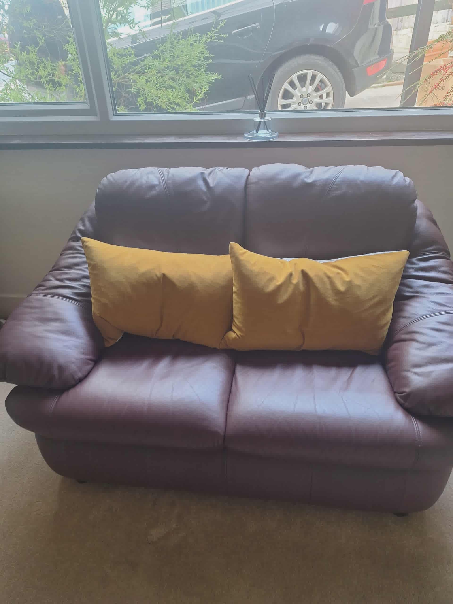 Burgundy Brown Leather sofa 2 seater, pet free, smoke free home, great condition, moving home no longer fits in new place