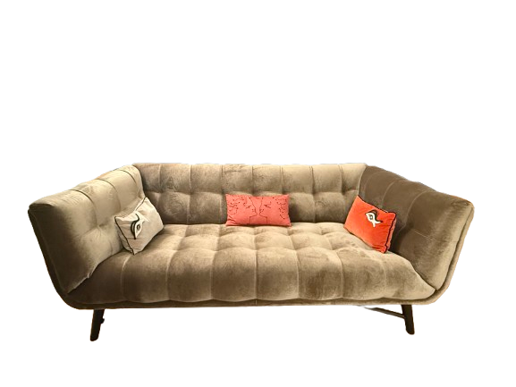 Avec Profile, les designers Roberto Tapinassi & Maurizio Manzoni ont imaginé un modèle intemporel, qui associe une ligne d’inspiration années 50 à un piètement très contemporain. Entièrement capitonné et habillé d’un velours couleur taupe.