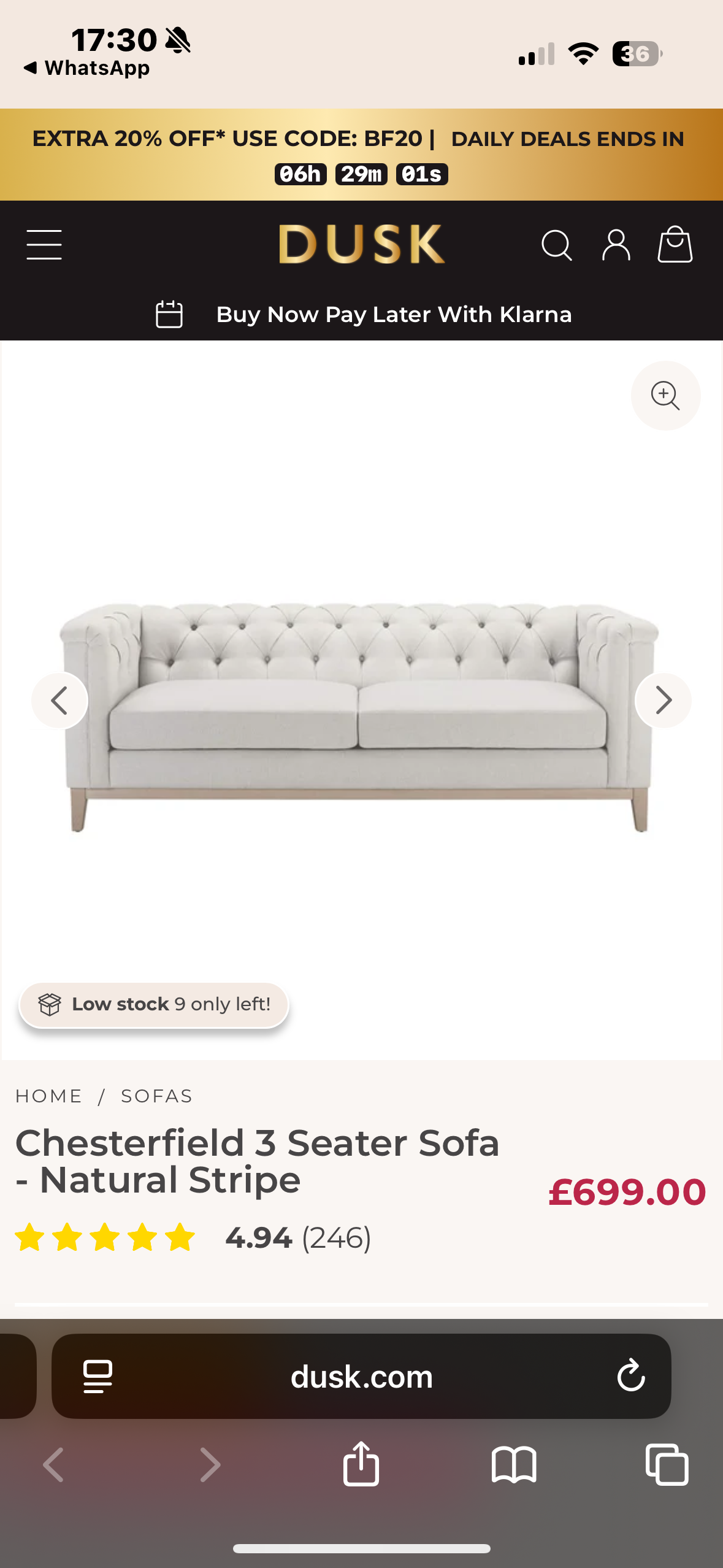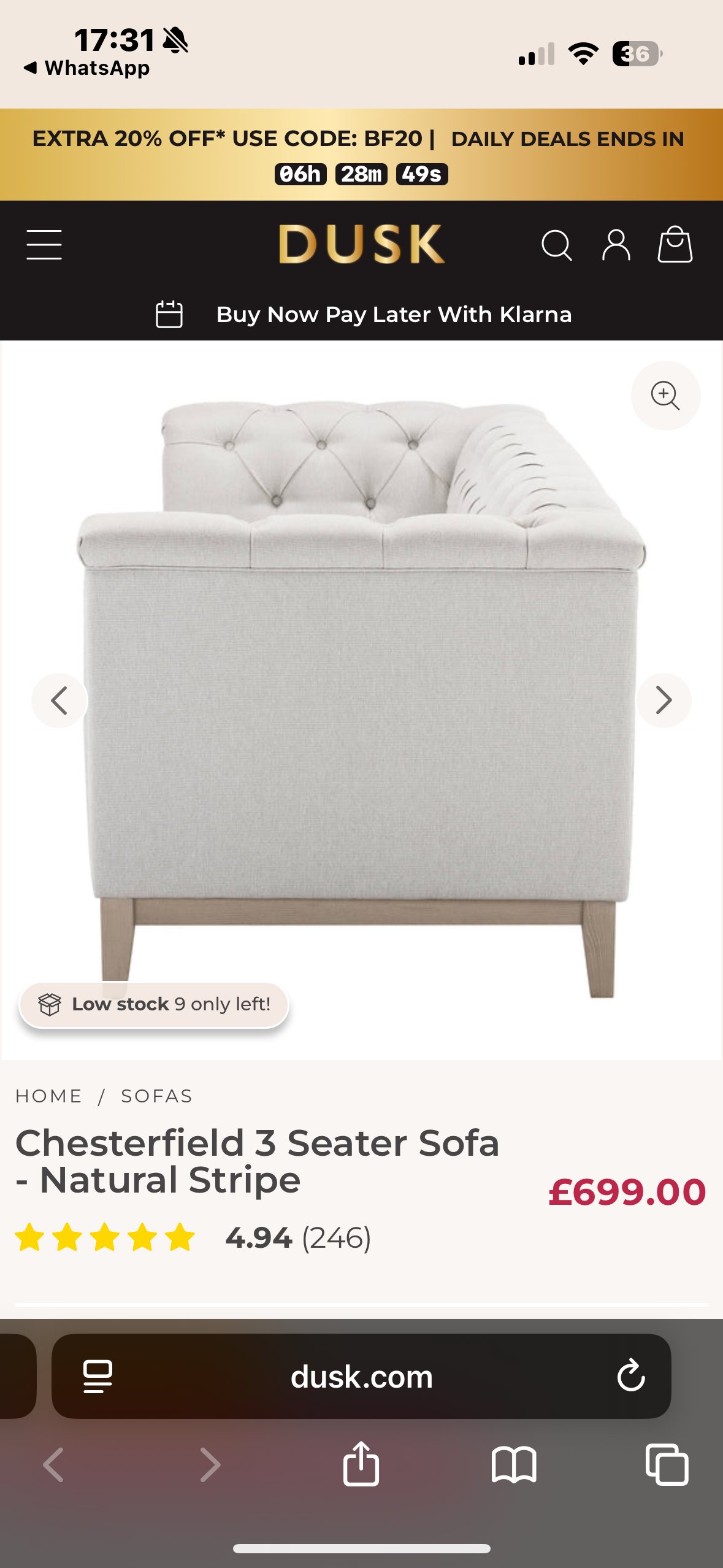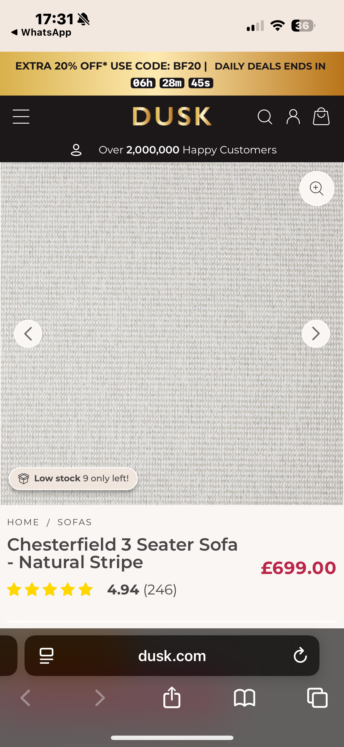 Wow all I can say is 100% satisfied. From choosing a sofa online last weekend . For it to be delivered today . What a beautiful sofa at a fraction of the price of a shop bought one. It's in excellent condition. Sofalistic is a wonderful place to purchase your sofa . I will recommend them to all my friends and family.