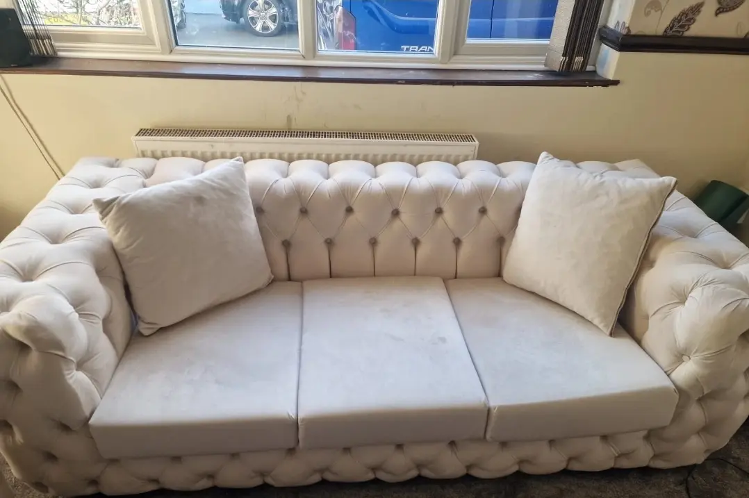 Bought only 3 months ago, but as we’re redecorating it doesnt fit in anymore. Light signs of use, overall good condition cushions not included