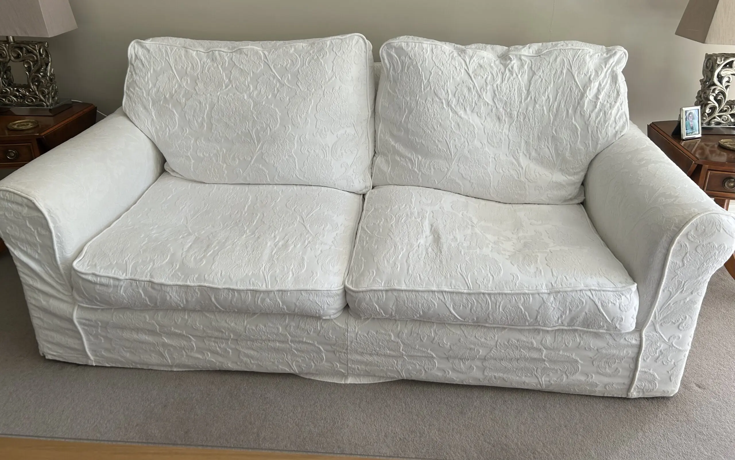 Beautiful white removable and machine washable covers on this classic style sofas. From a smoke-free, pet-free home