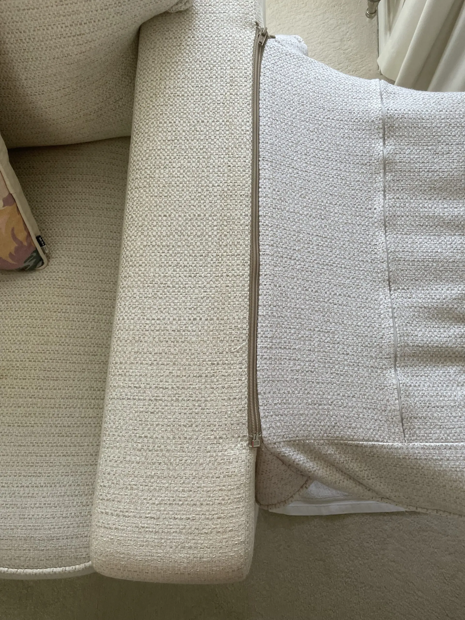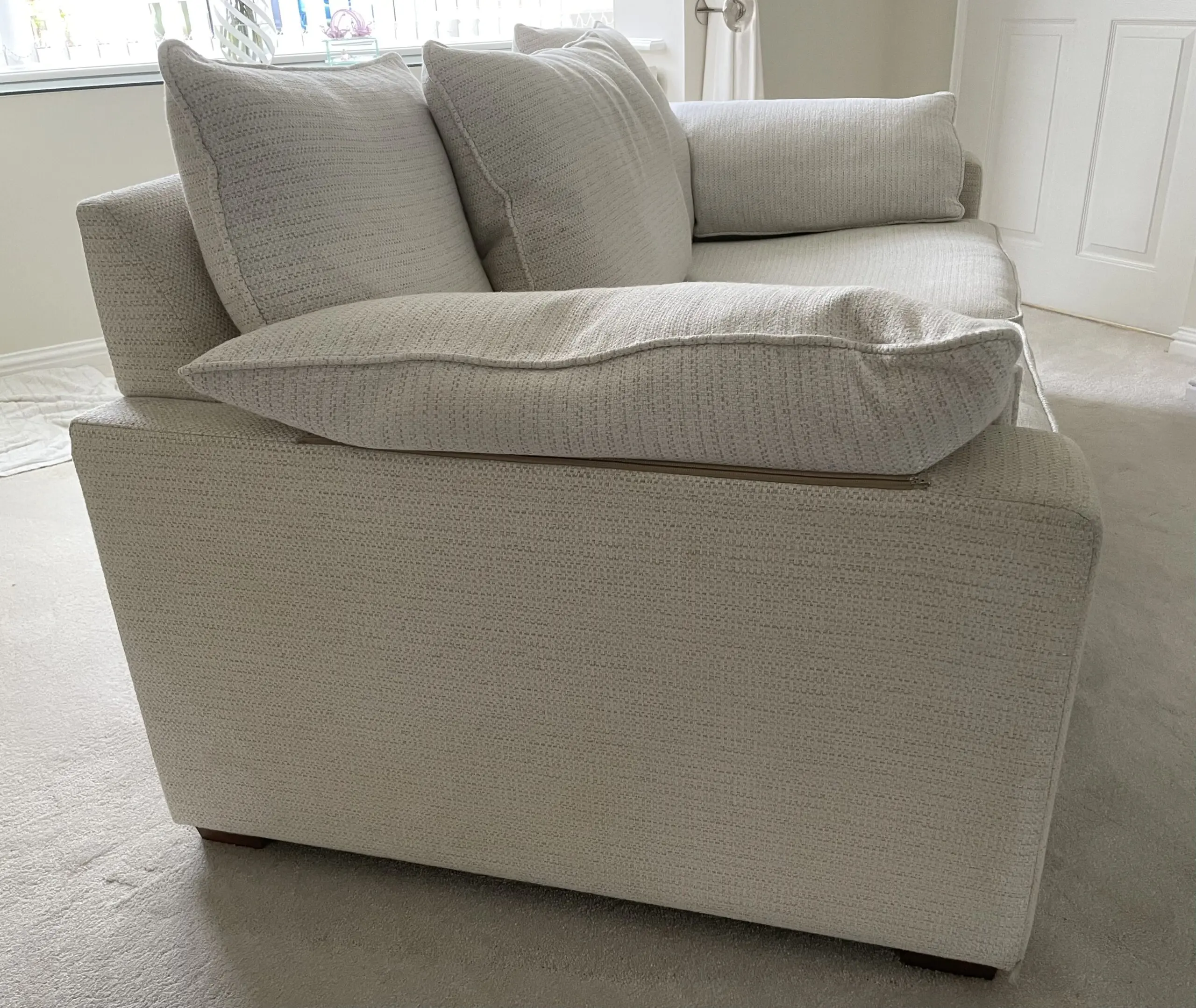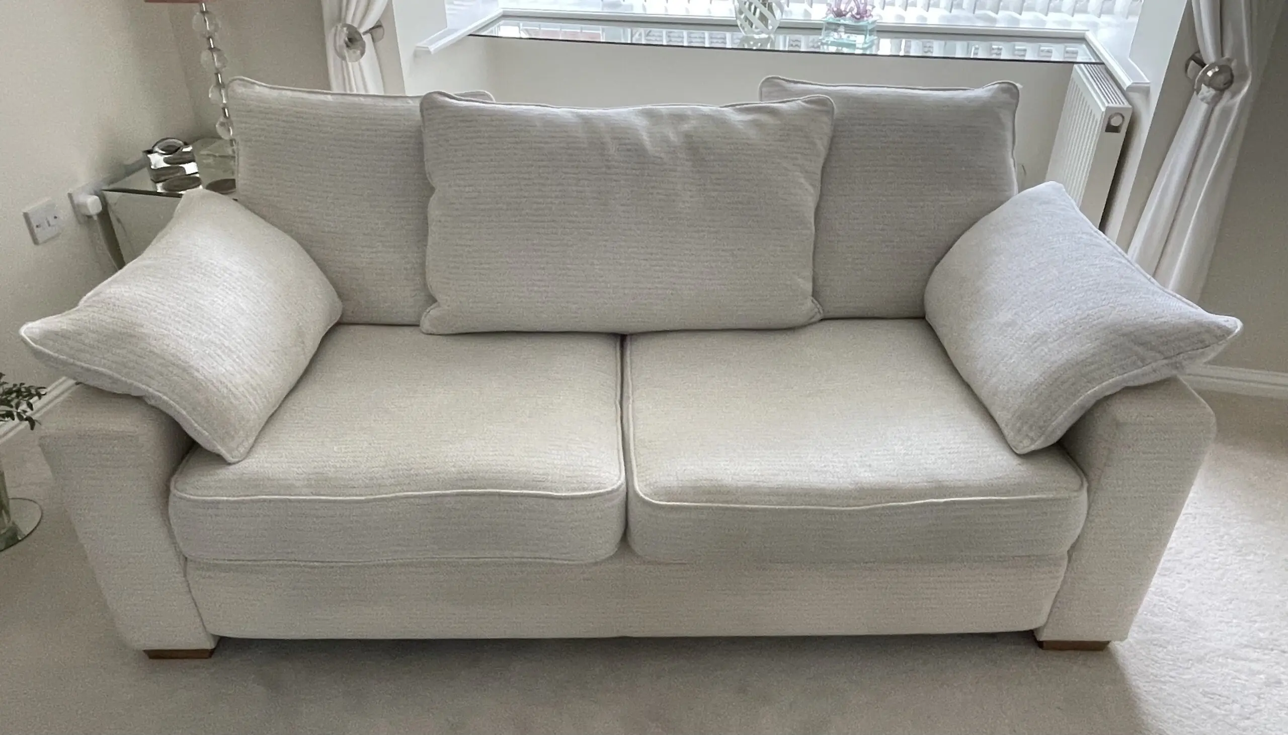 slight water marks, on sofa, hidden by arm and seat cushions where the main body was cleaned.