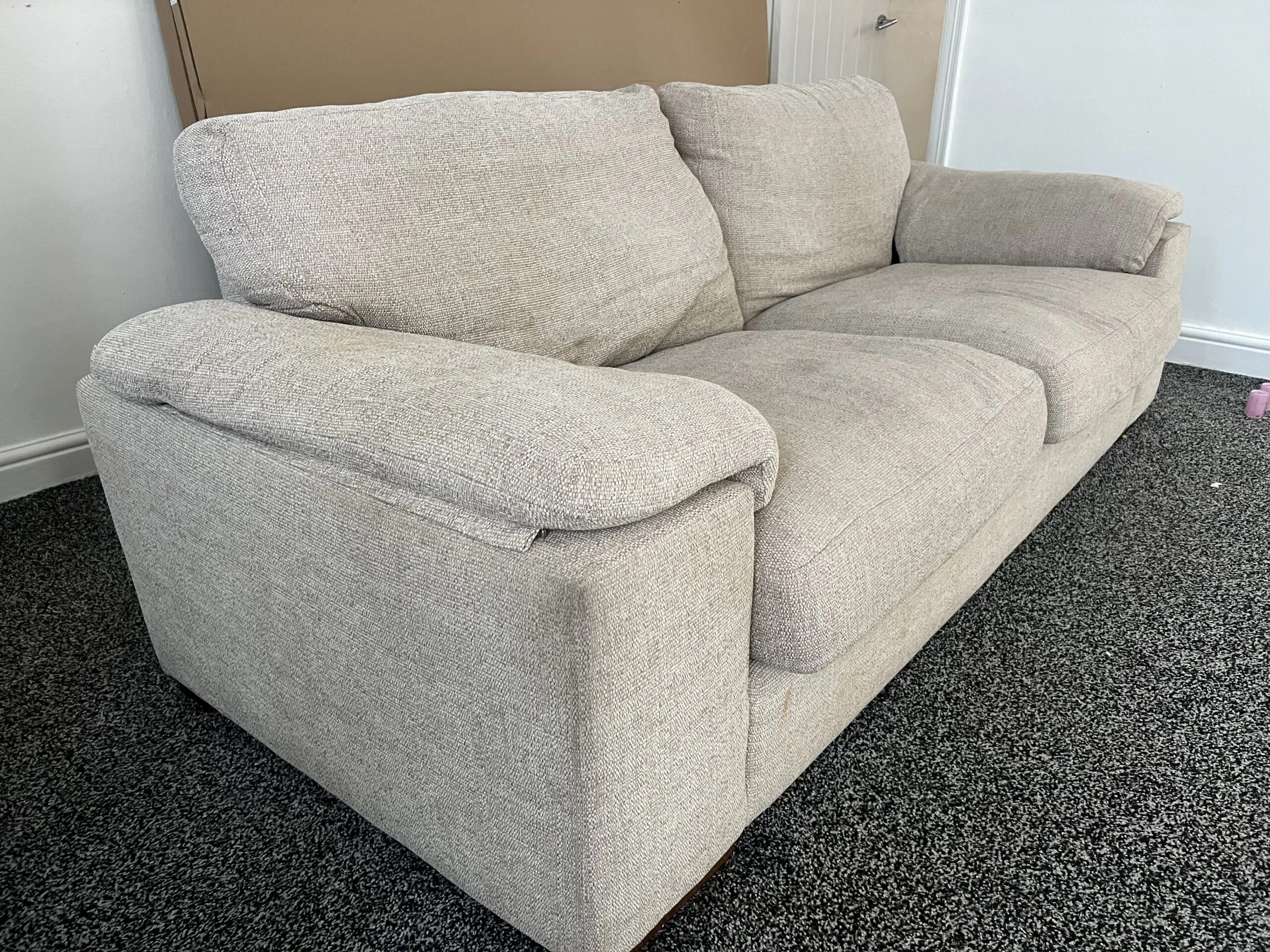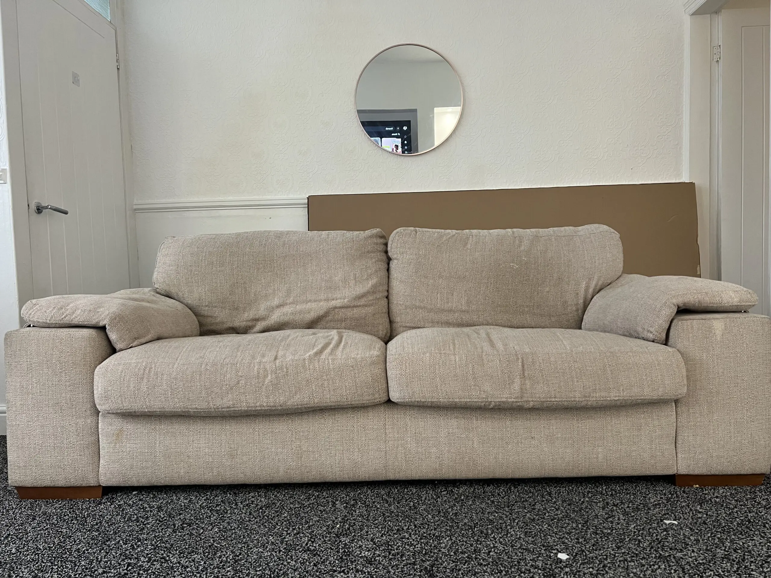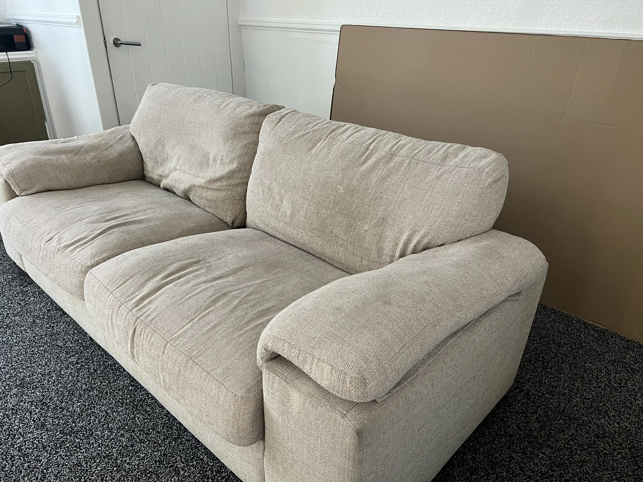 Comfy 3 Seater Cream sofa fairly used and will be cleaned before sale. Pet and smoke free. Selling on low price due to getting a bigger corner sofa