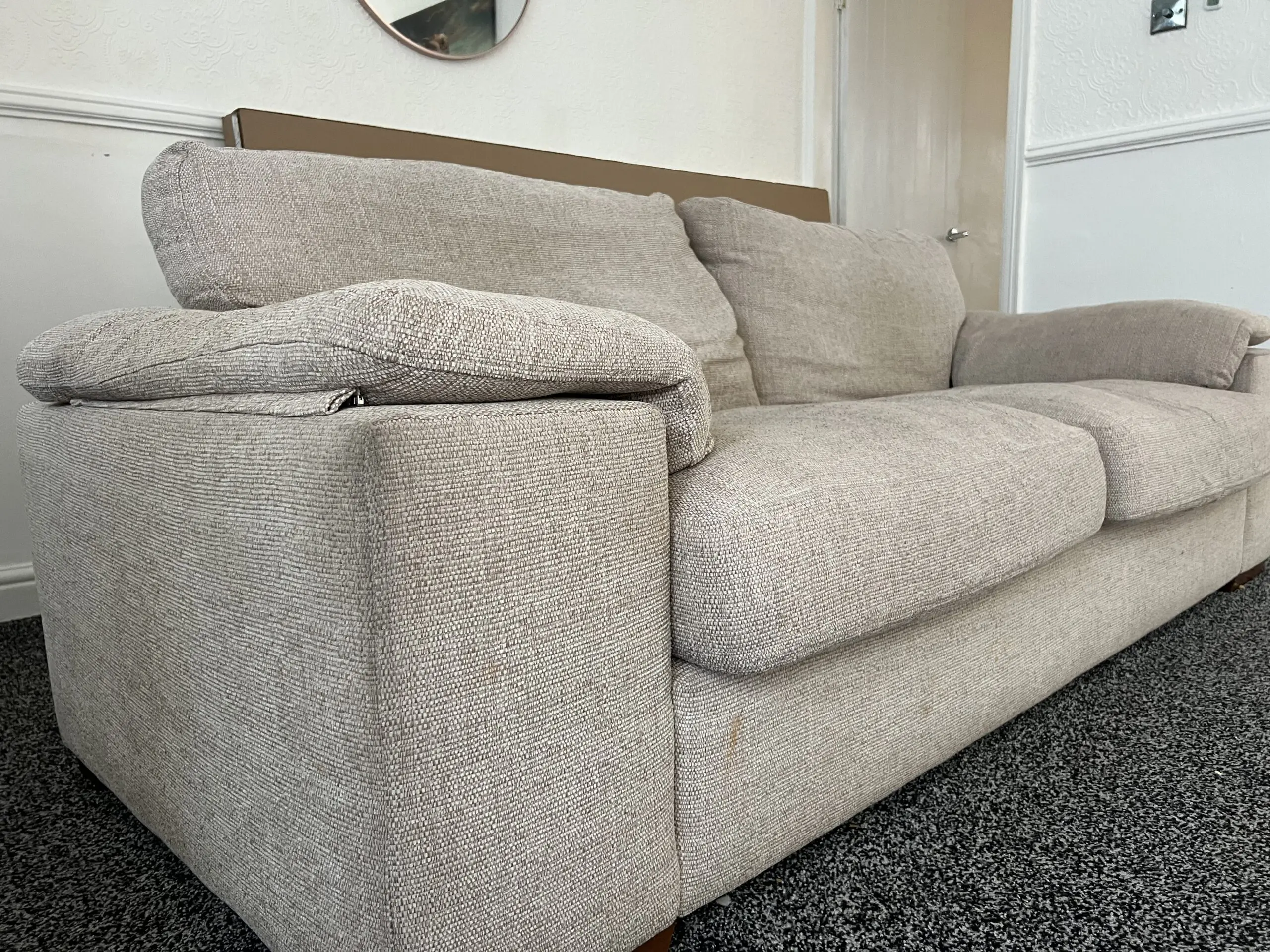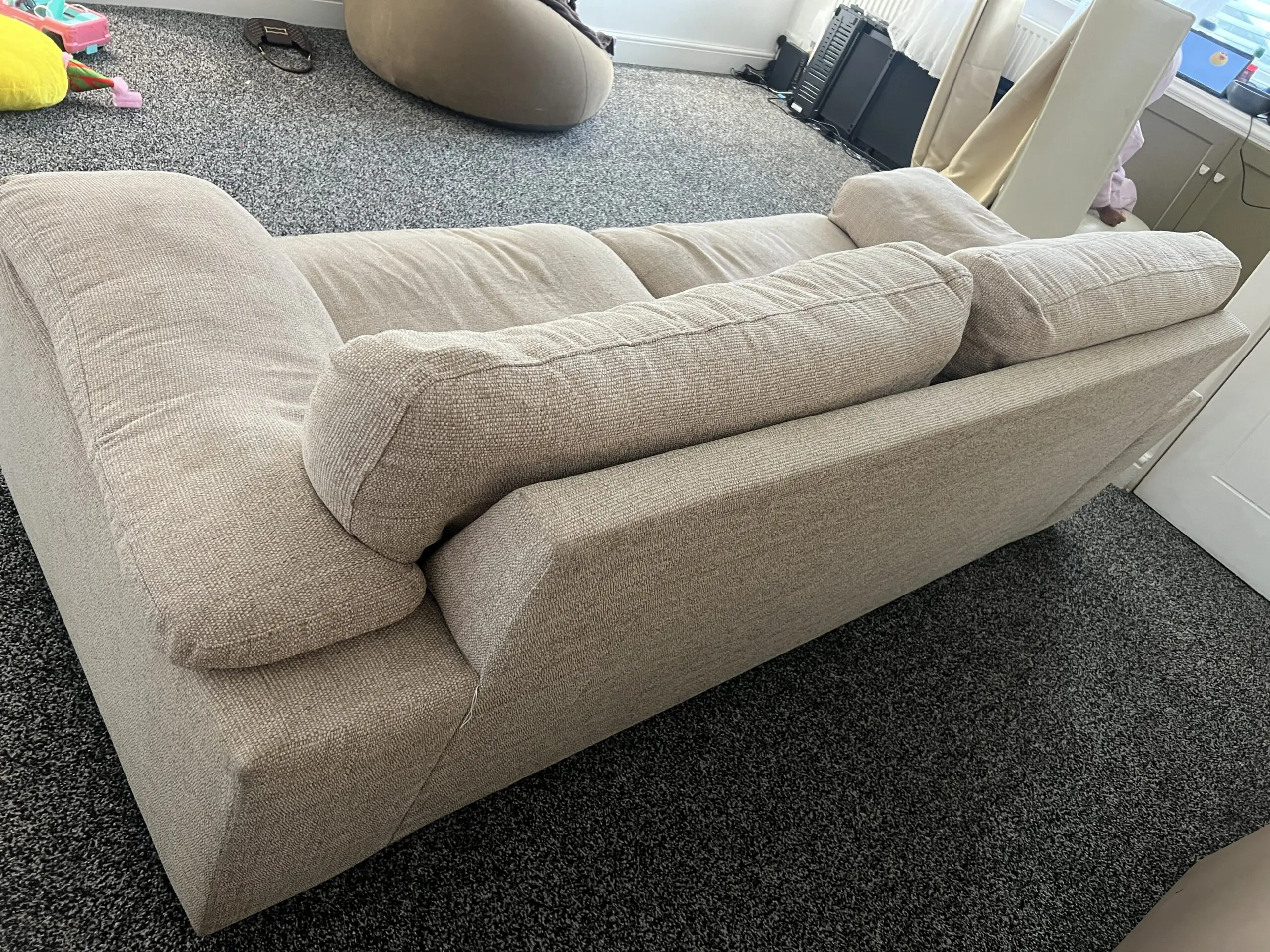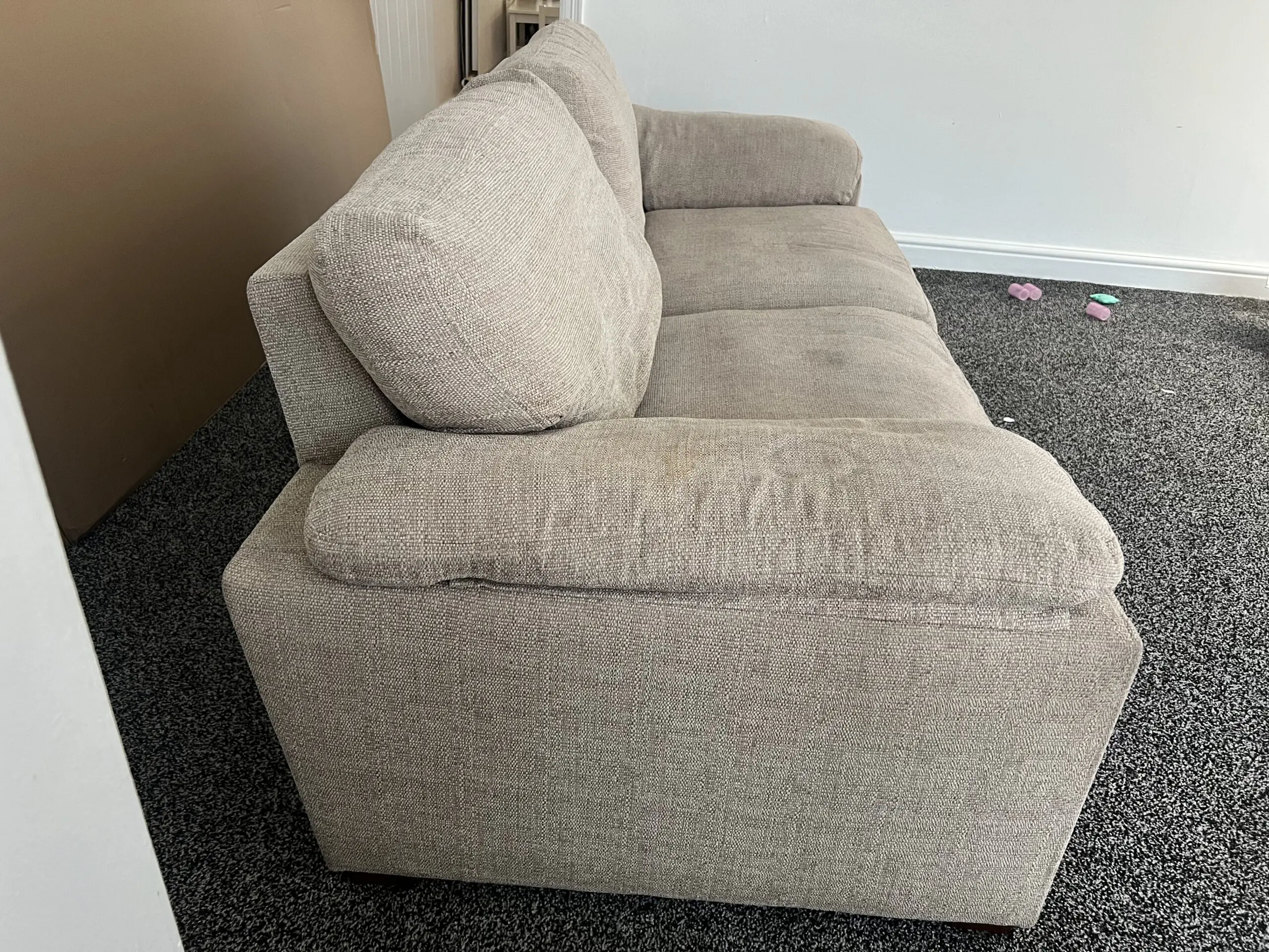 Comfy 3 Seater Cream sofa fairly used and will be cleaned before sale. Pet and smoke free. Selling on low price due to getting a bigger corner sofa