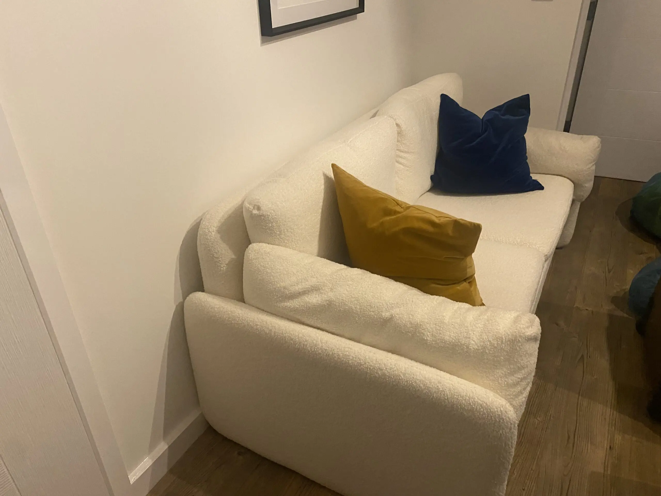 This lovely cosy sofa is modern, exclusive and brings life to any living room/Office etc. It has not been used, was in a show home.