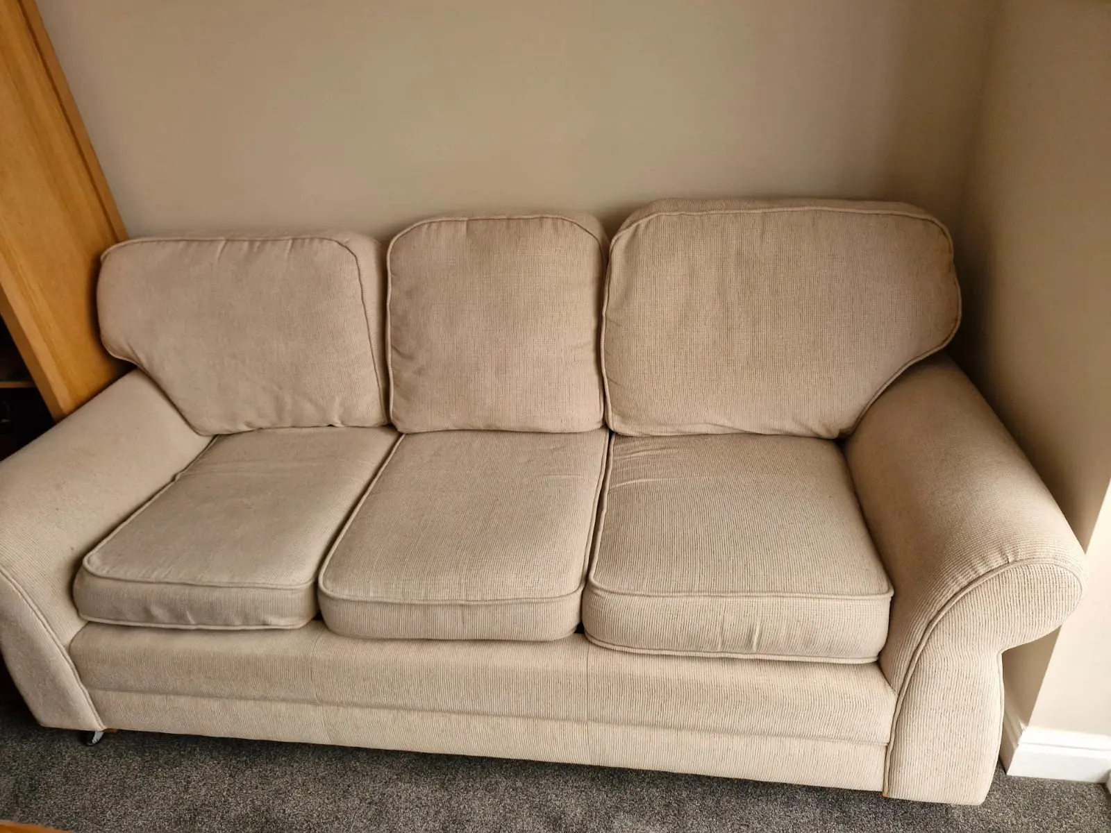 The sofa and chair I bought was as described by the seller - excellent condition. Delivery was quickly arranged and without any incidents. I was kept well informed of the delivery time on the day. Highly recommended.