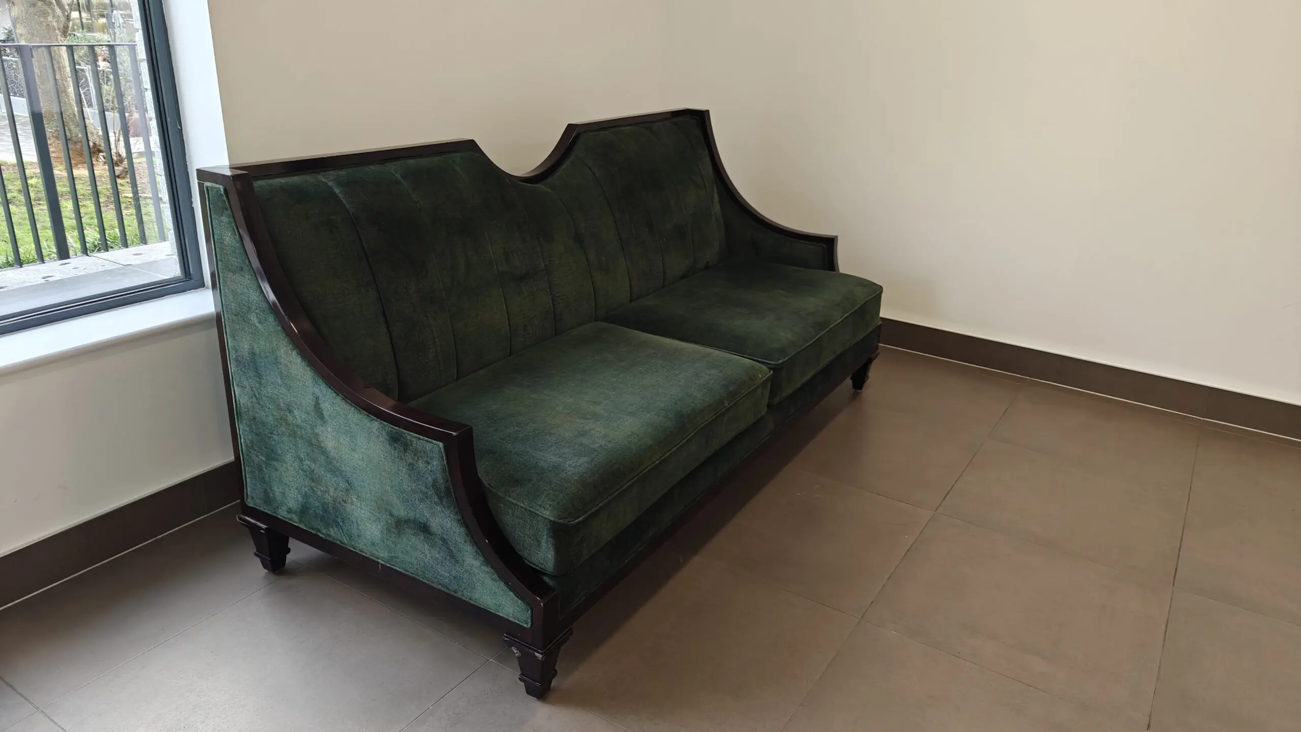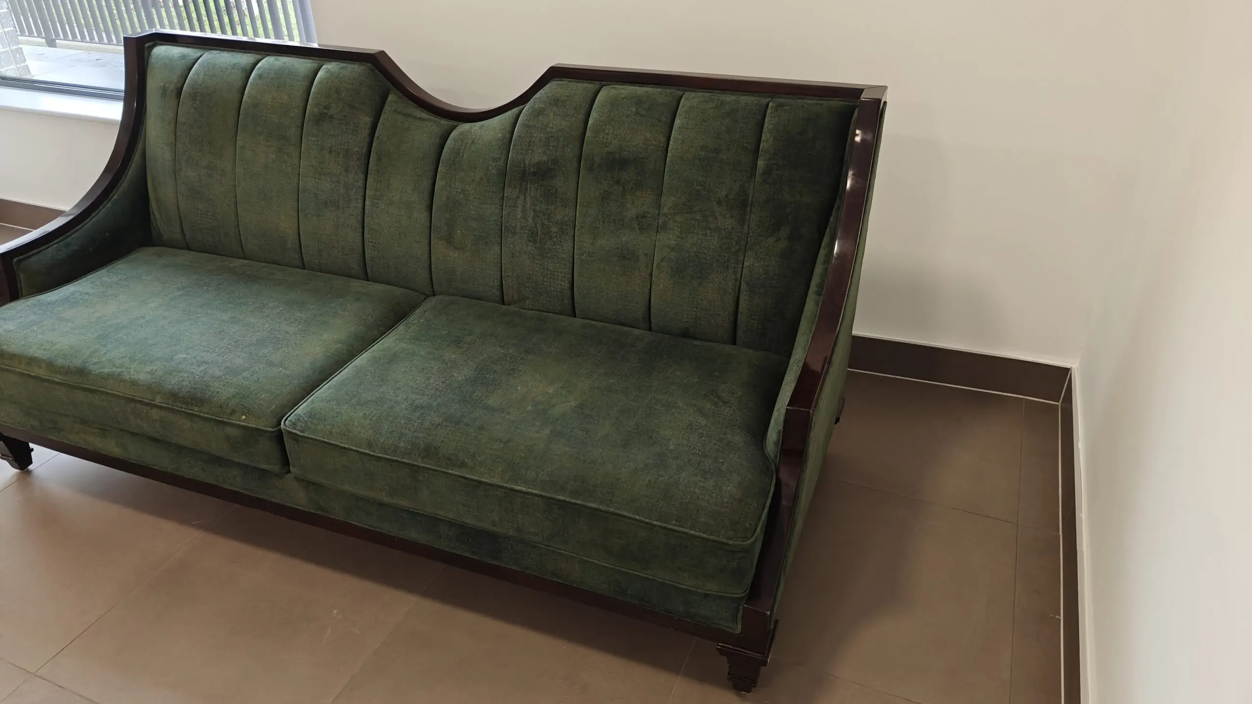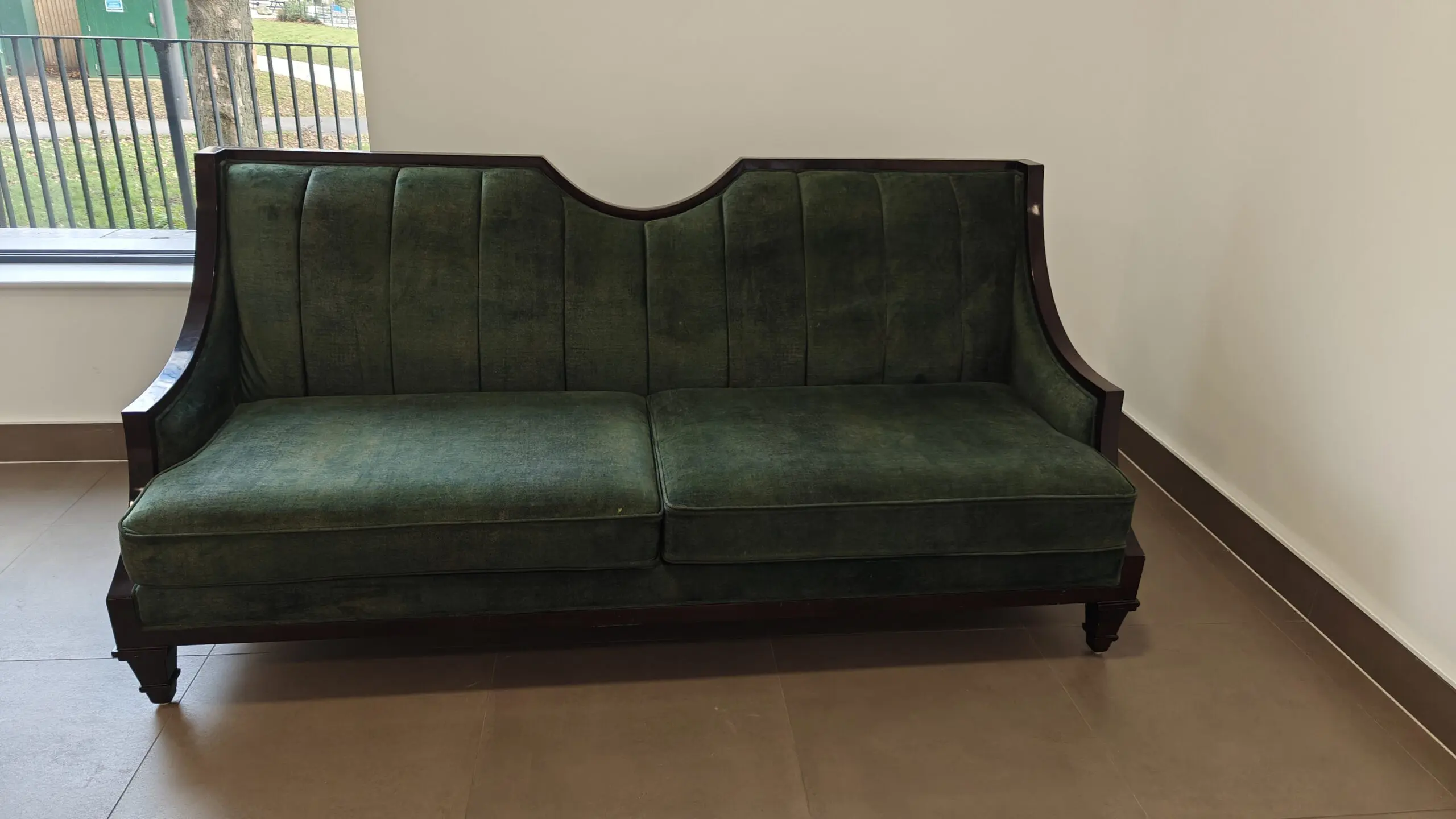 Lovely looking sofa in good condition! Will add lots of color and character to your home. Made from solid wood that can withstand moisture. Can’t be disassembled.