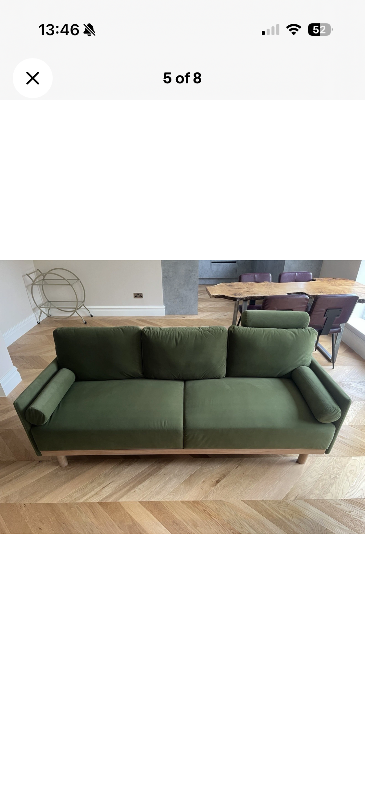 Daals Timber Fern Green Velvet Sofa, 3-Seater new only just a few times bought to stage a house for sale. Like new condition