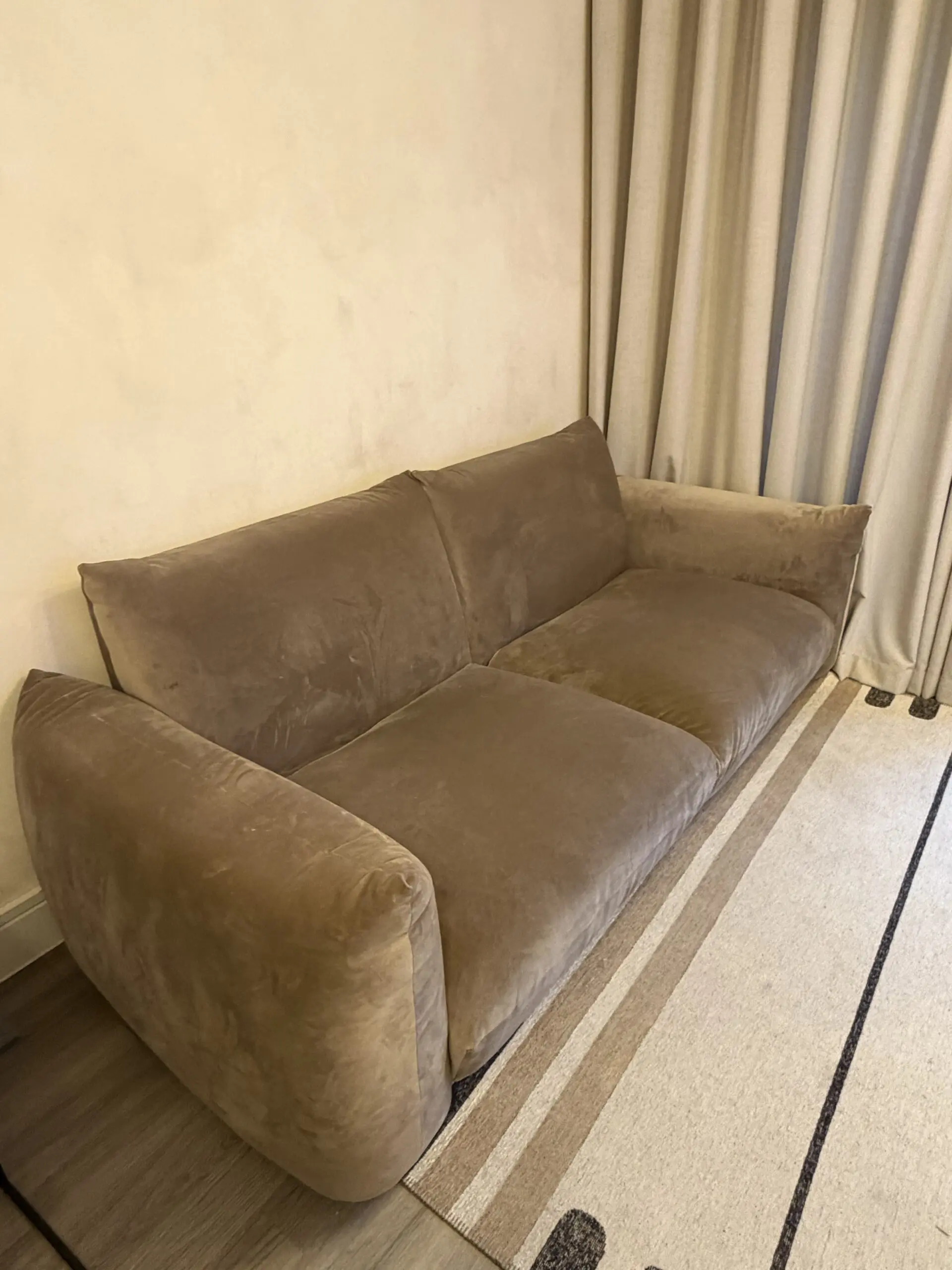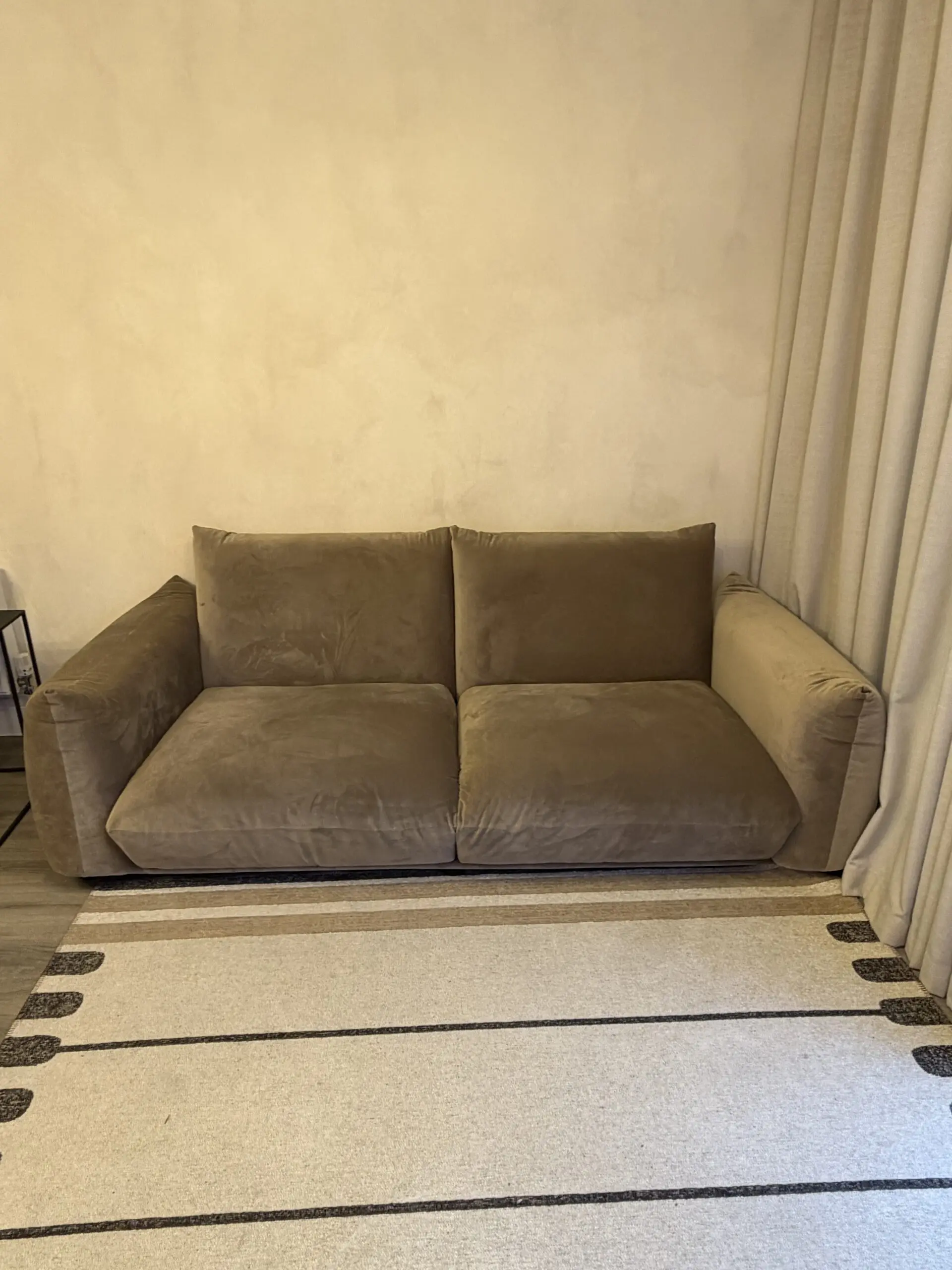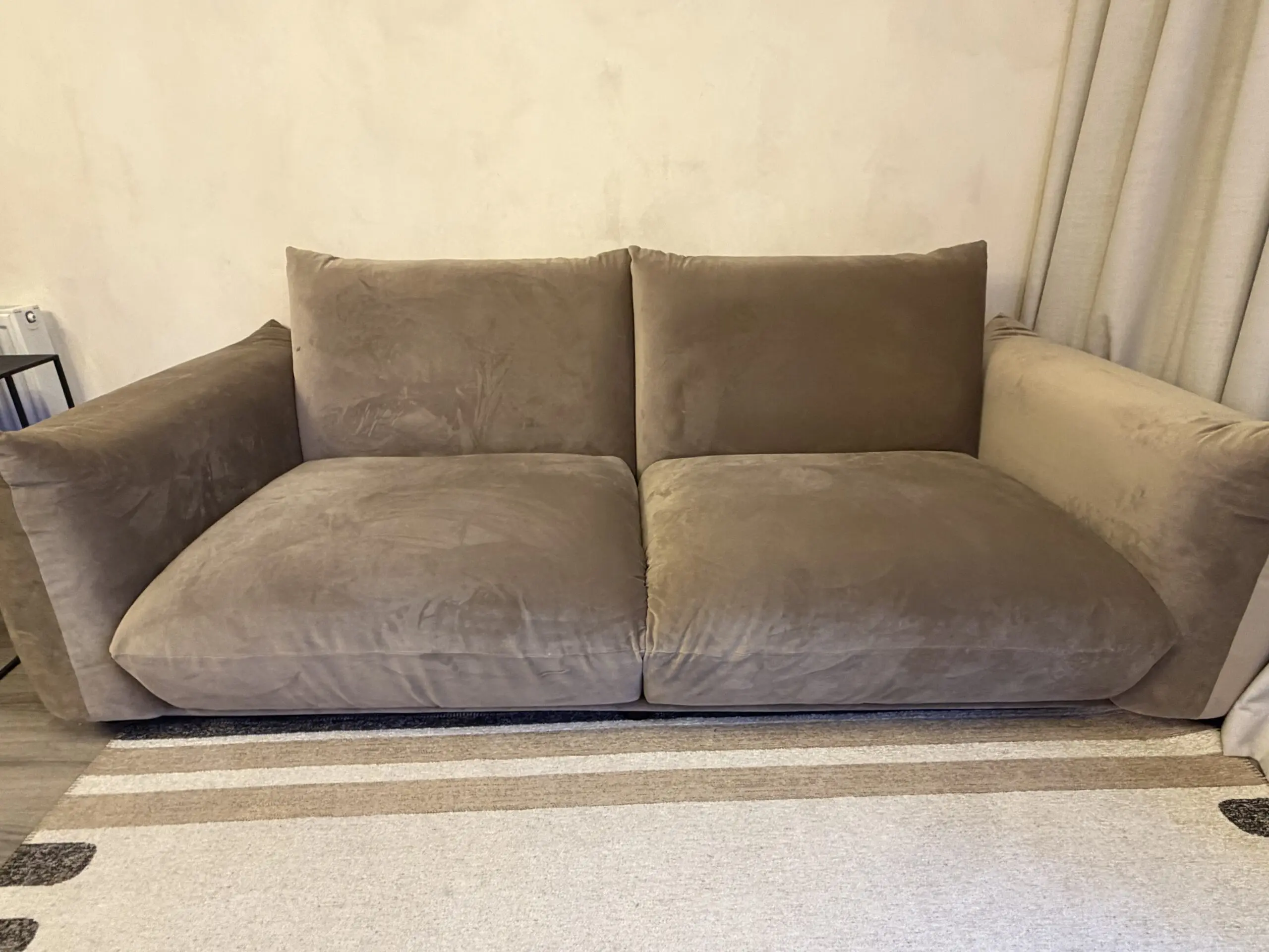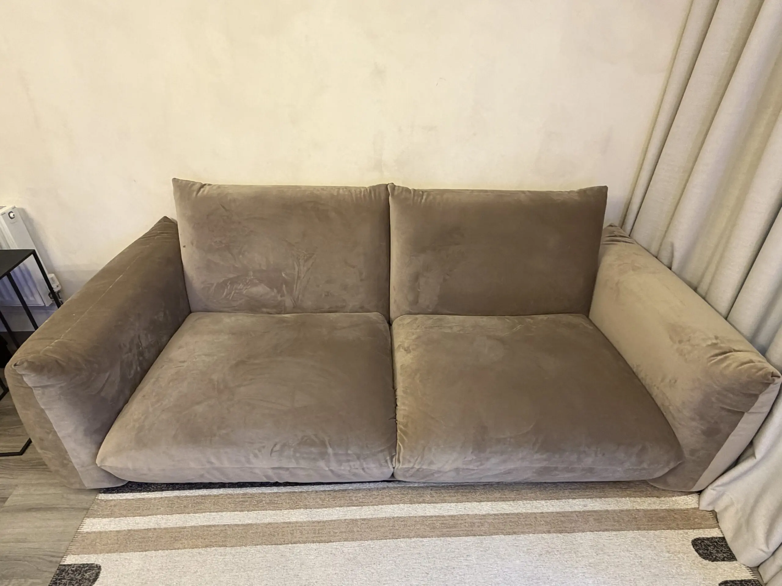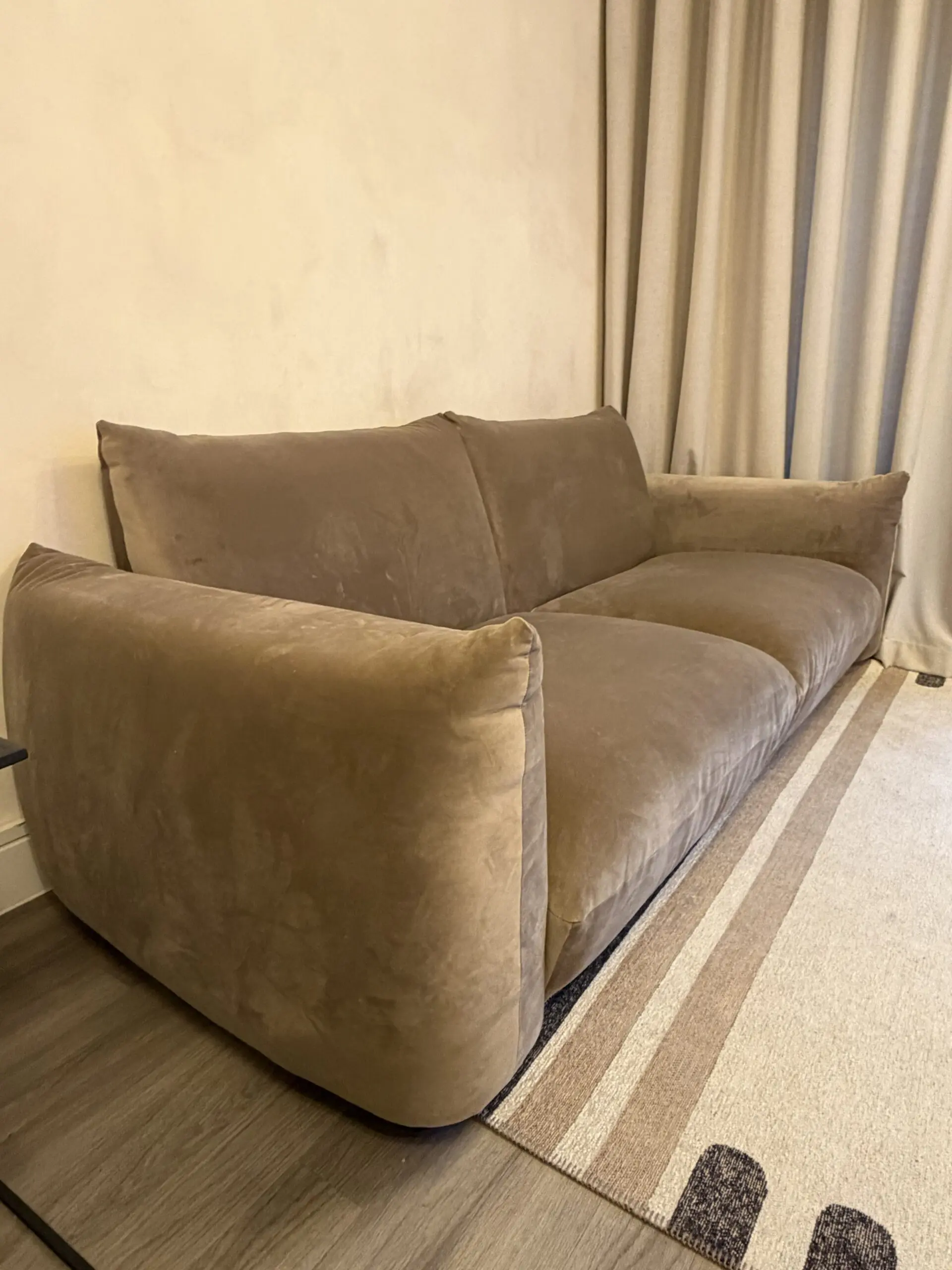 Less than a year old. Selling as moving. Original price was £999. Chic and inviting, the Gianni sofa features curved edges and rounded edges.