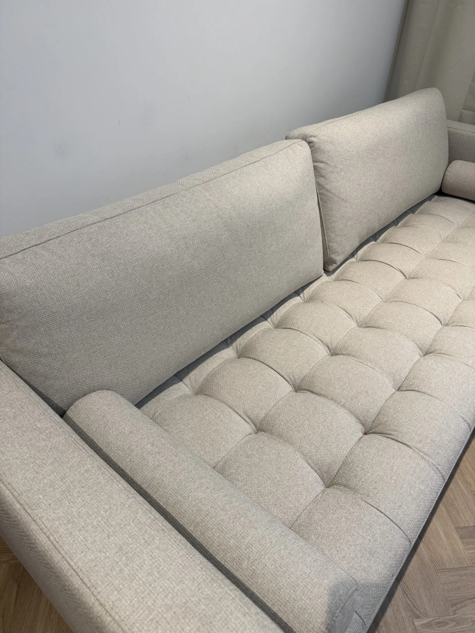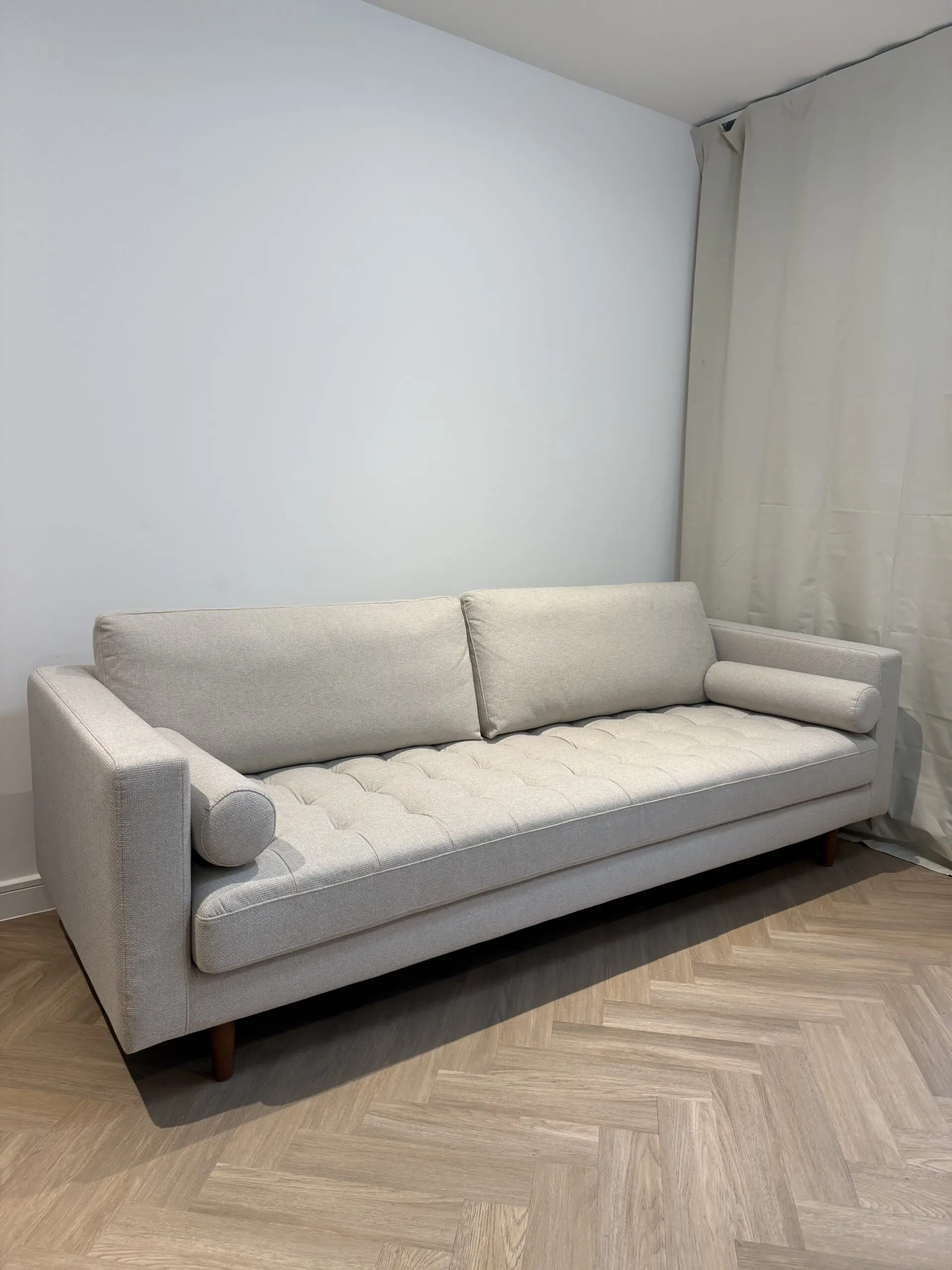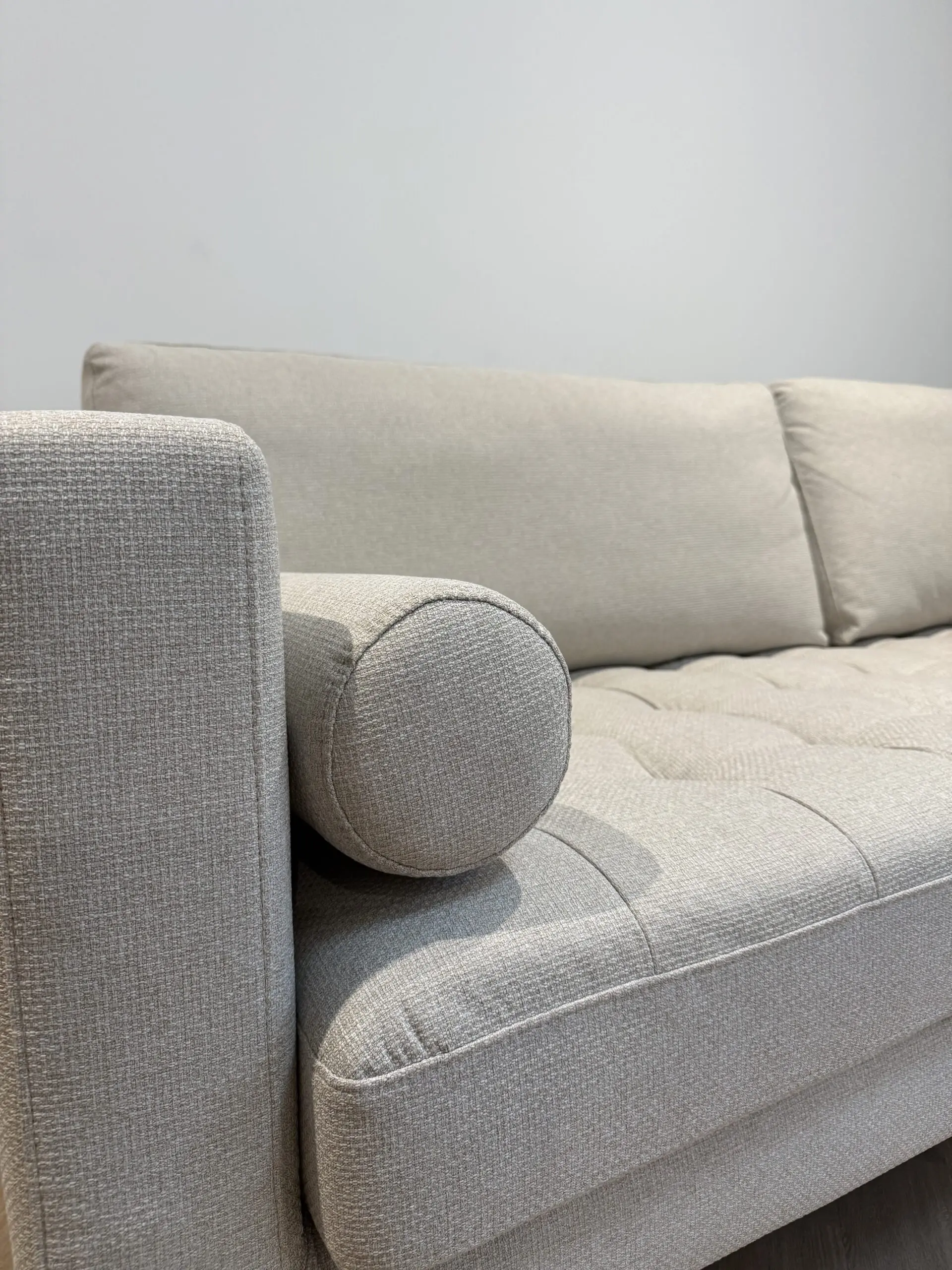 Two matching round bolsters, as well as piping details add to the beauty of the sofa in details.