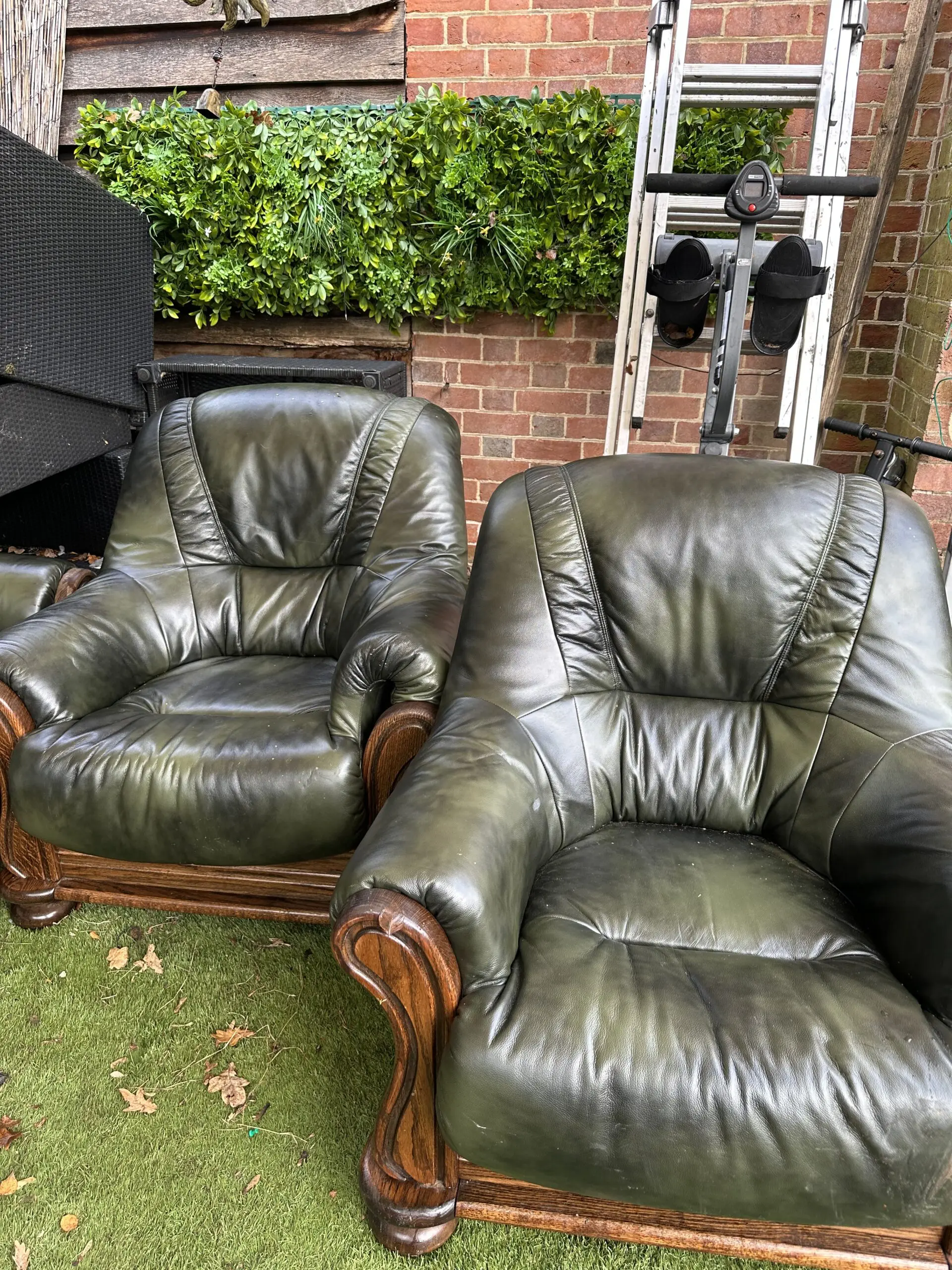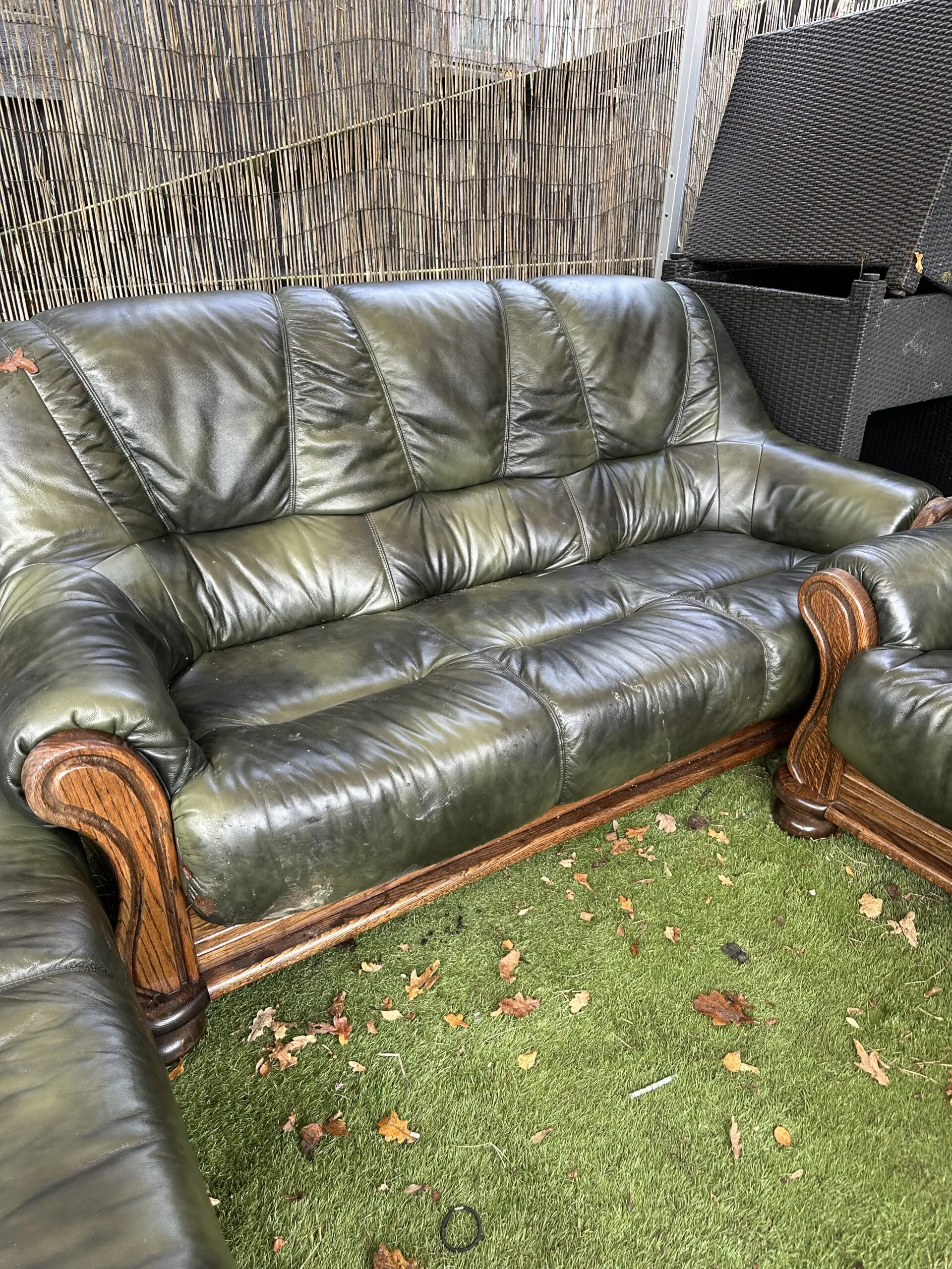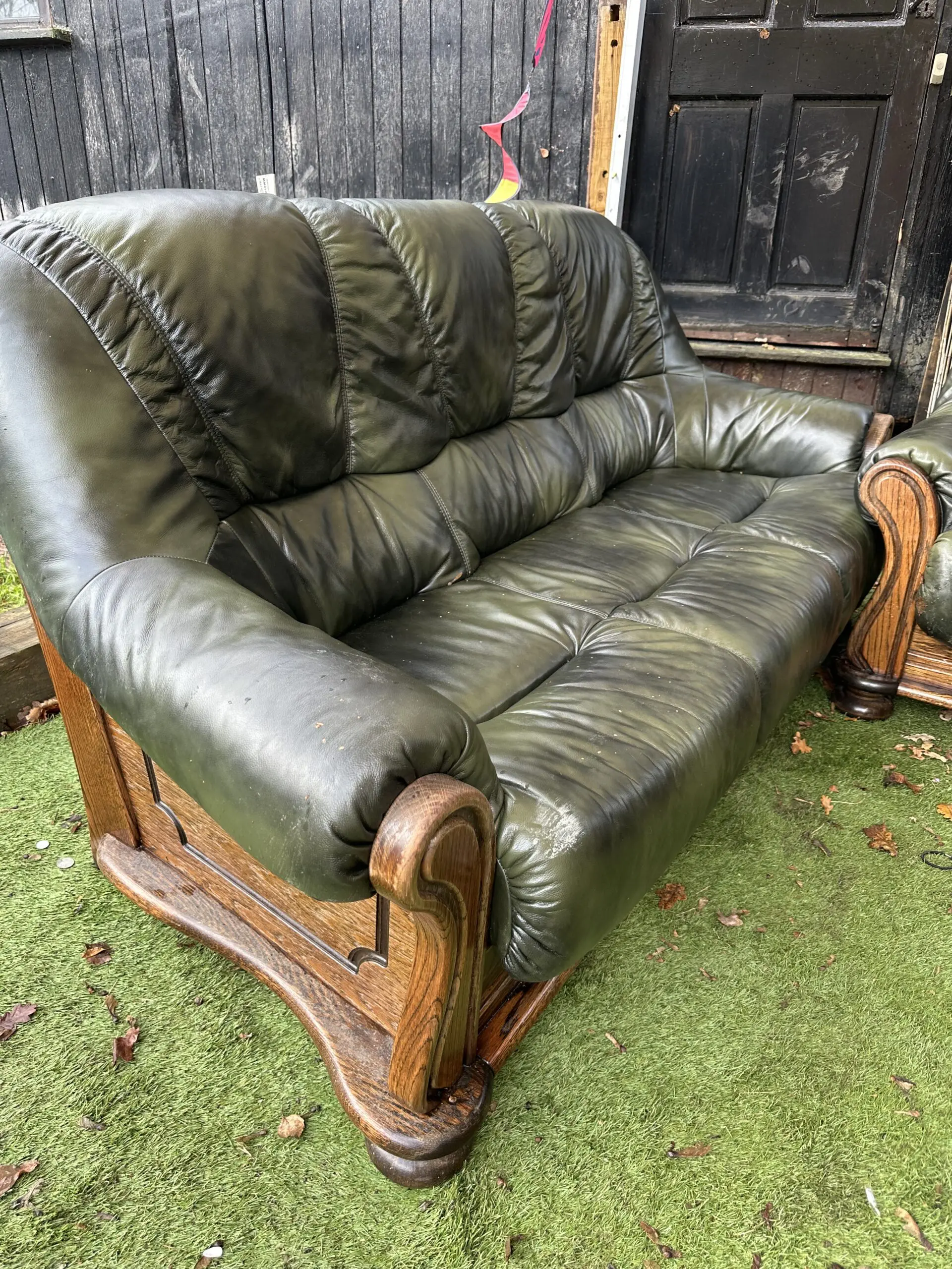 Dark green leather sofa set