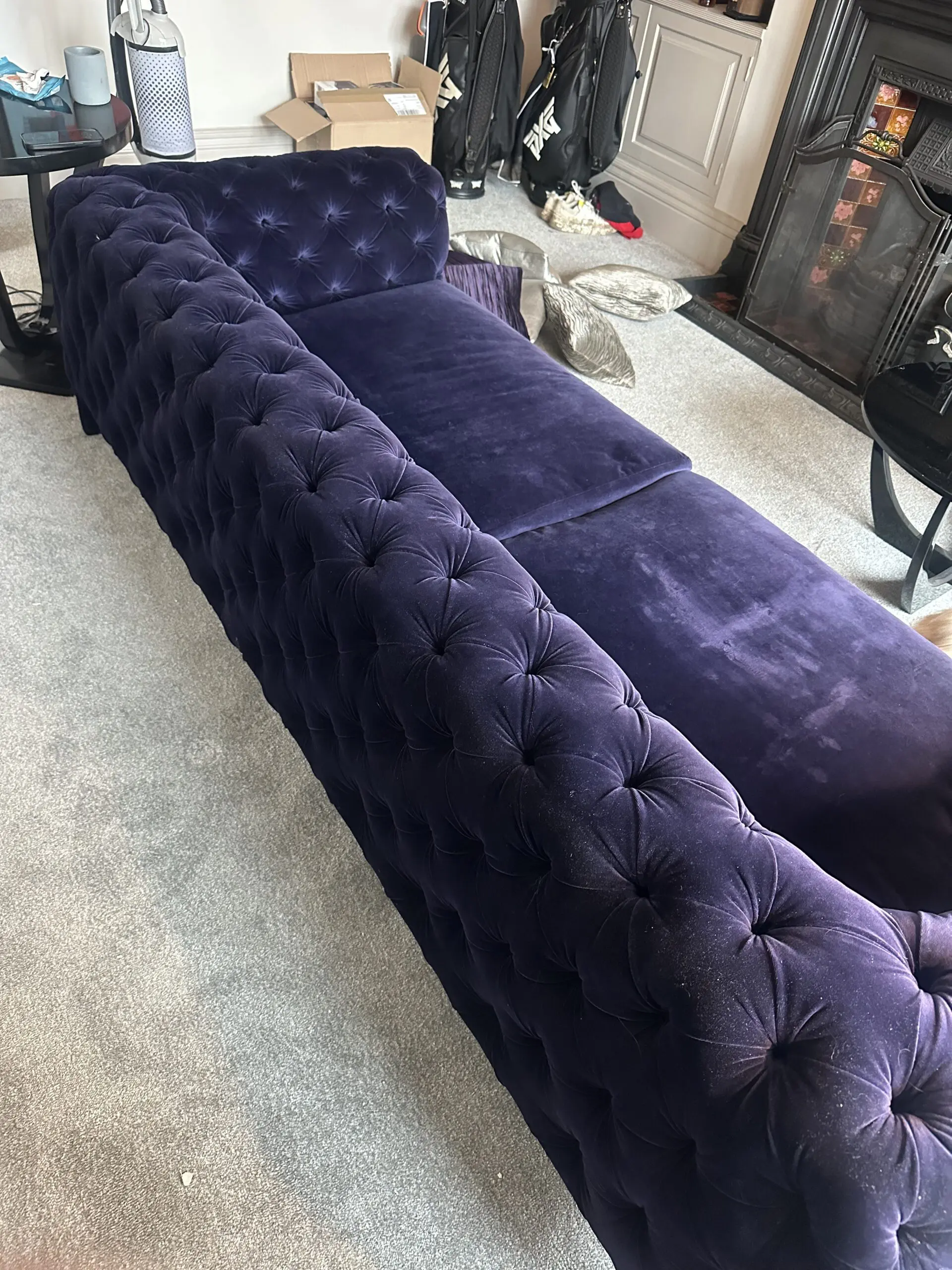 Arketipo Windsor 3 seater sofa in dark purple velvet.