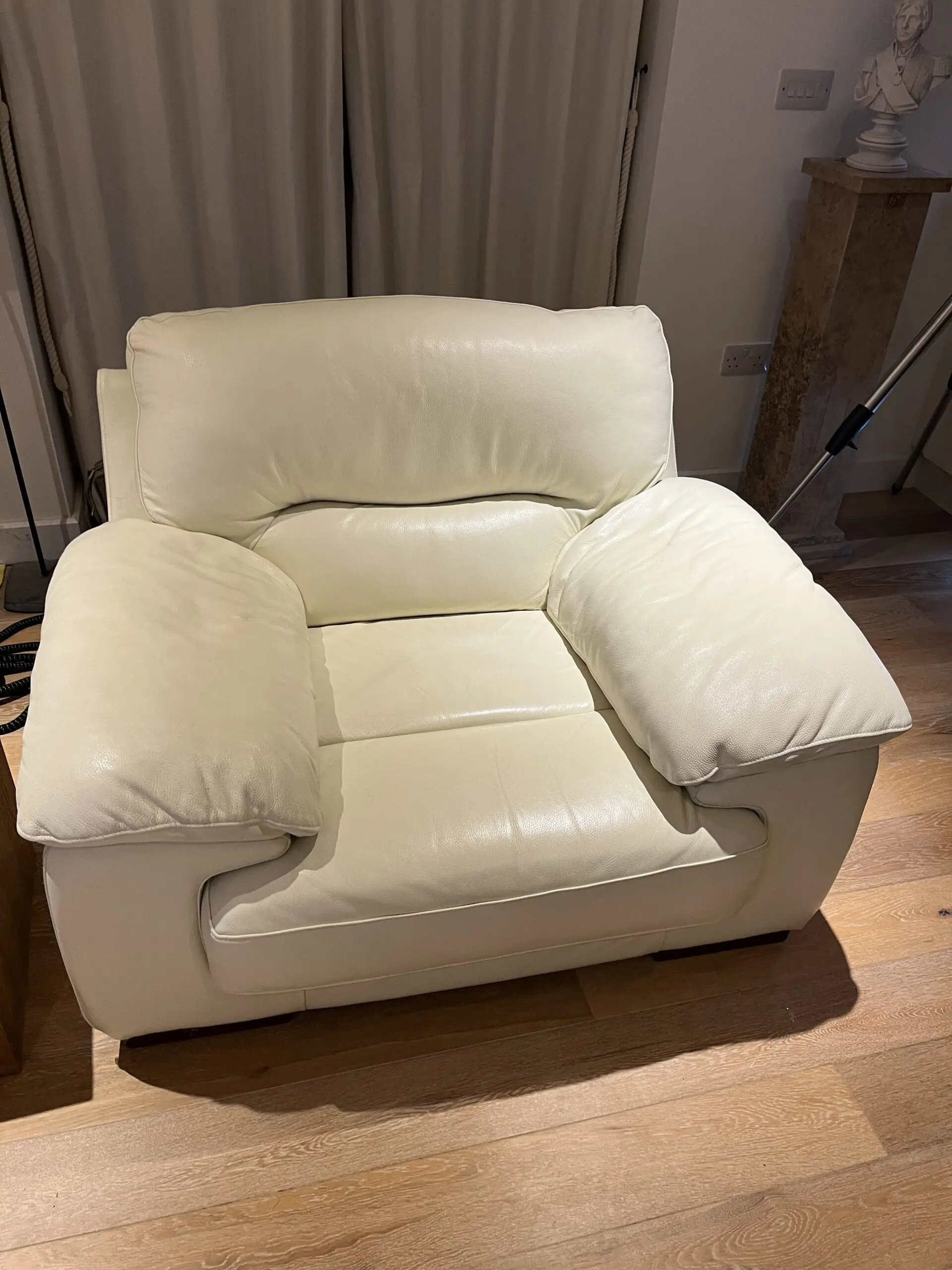 DFS 3 and 1.5 Leather Sofa and matching Chair plus footstool. In Ivory/Cream