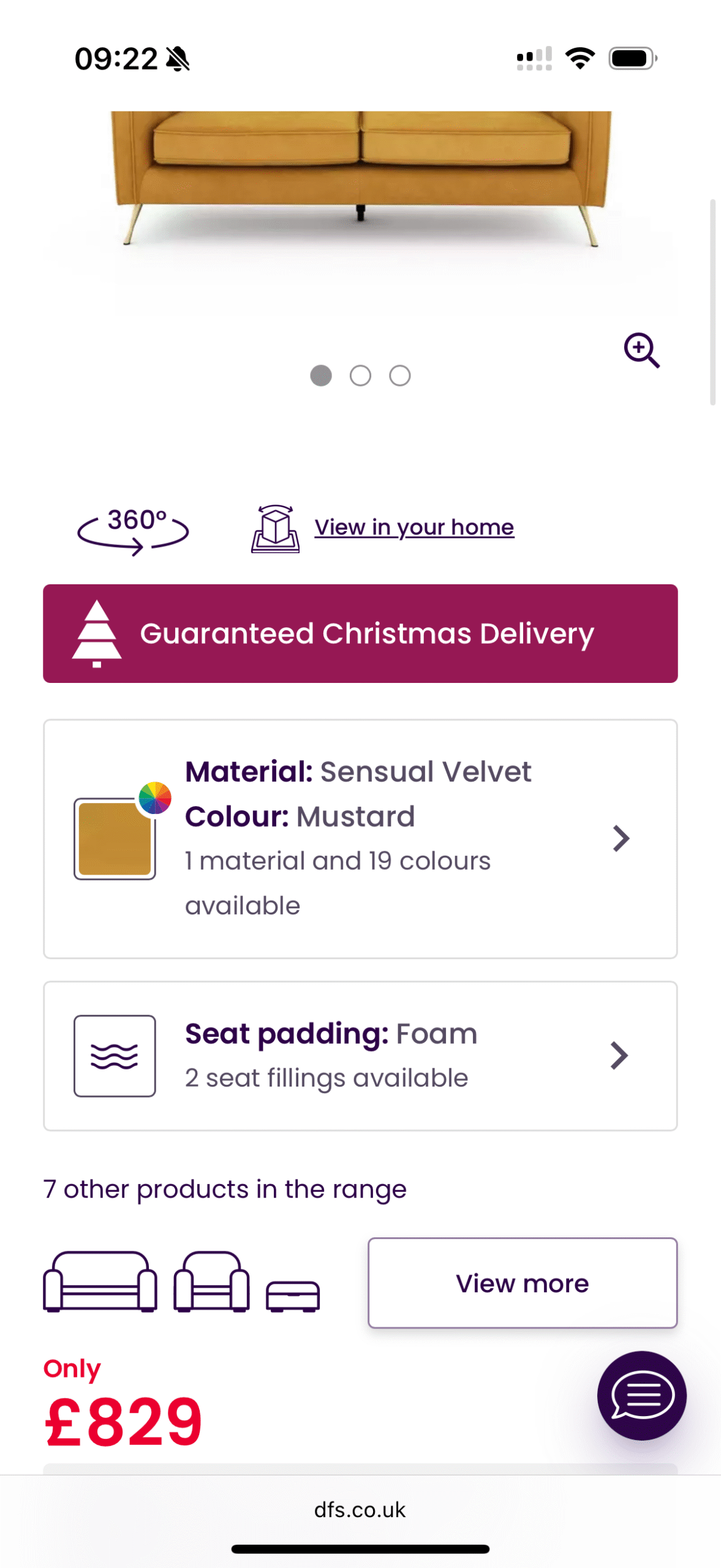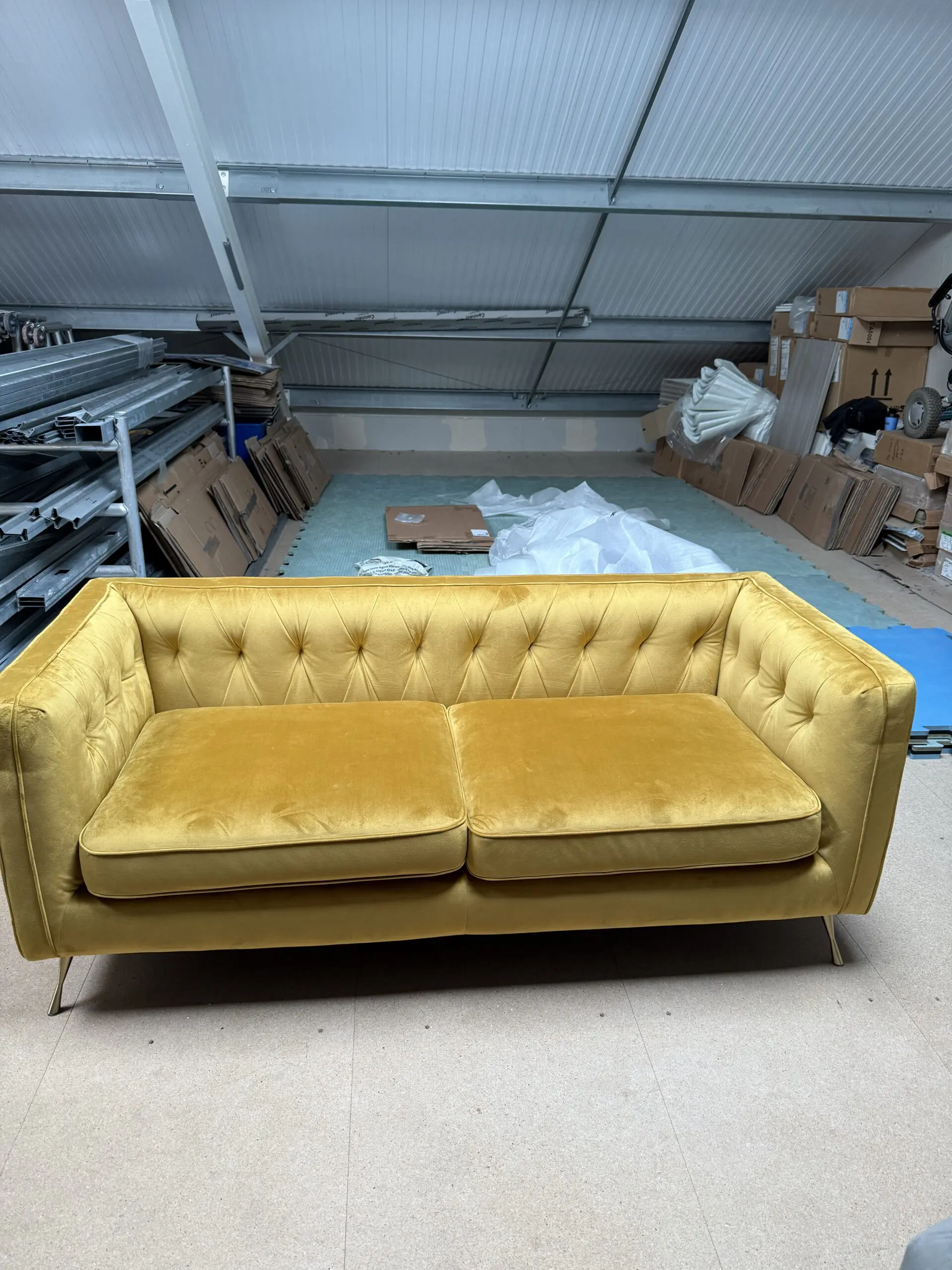 The Lustro is both elegantly stylish and cosy. Its soft velvet fabric, gold legs and button back cushions are sure to impress.