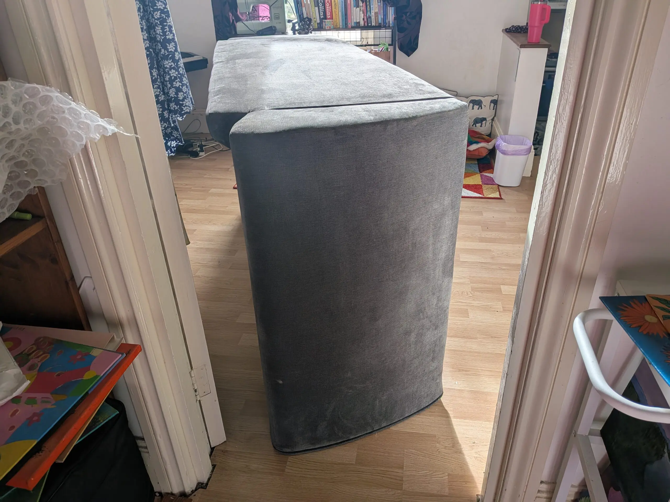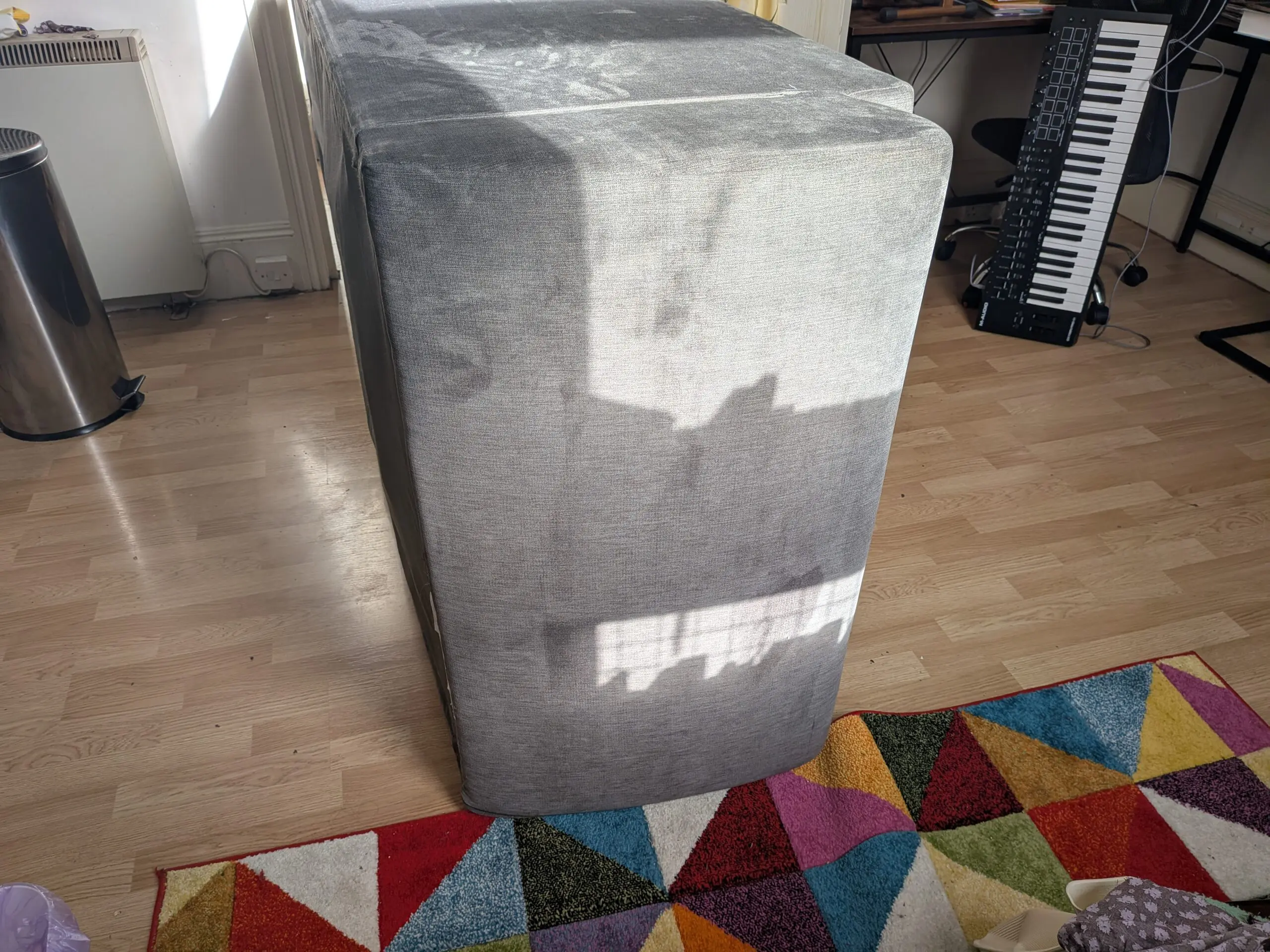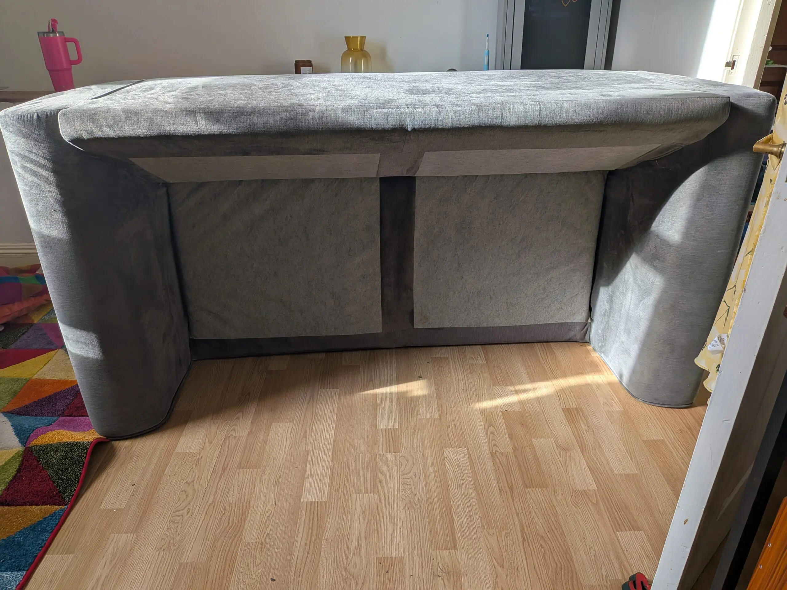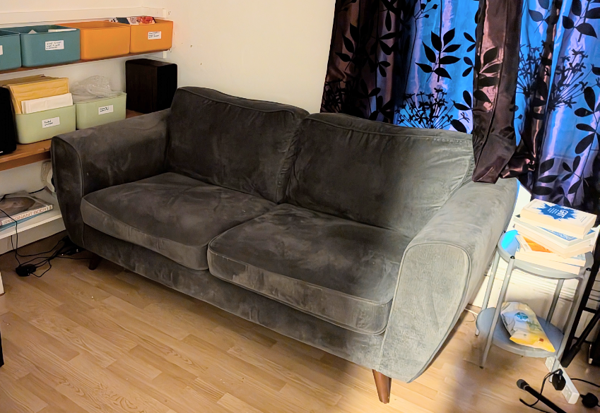 Comfortable second hand sofa, in good condition, in a Charcoal grey colour. Comes with wooden feet.
