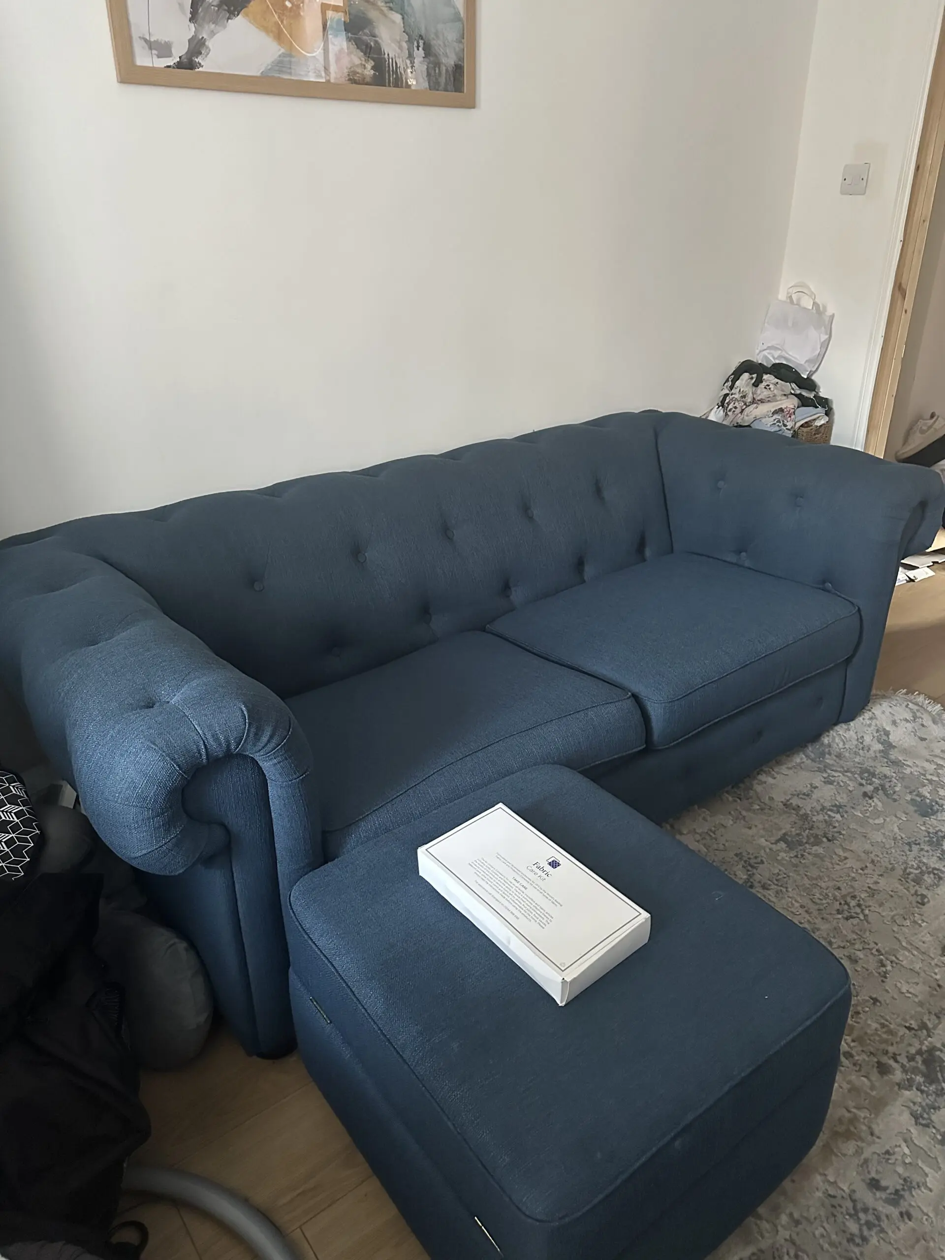 Both the 3-seater sofa and matching storage footstool are in excellent condition.