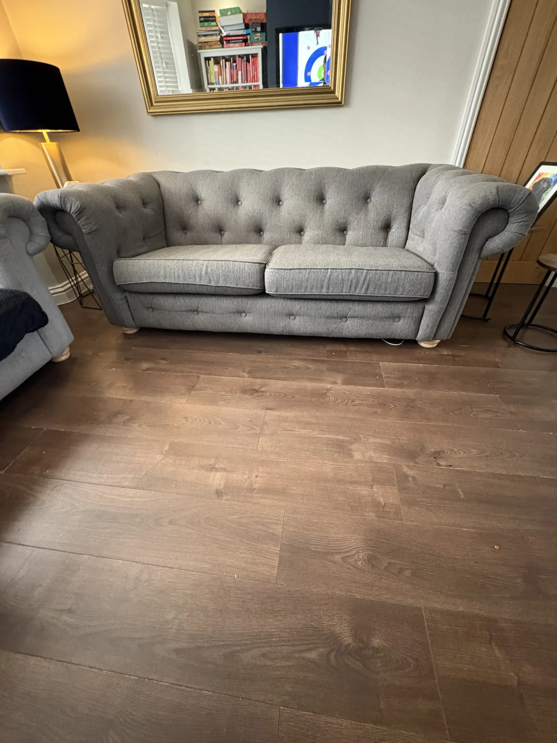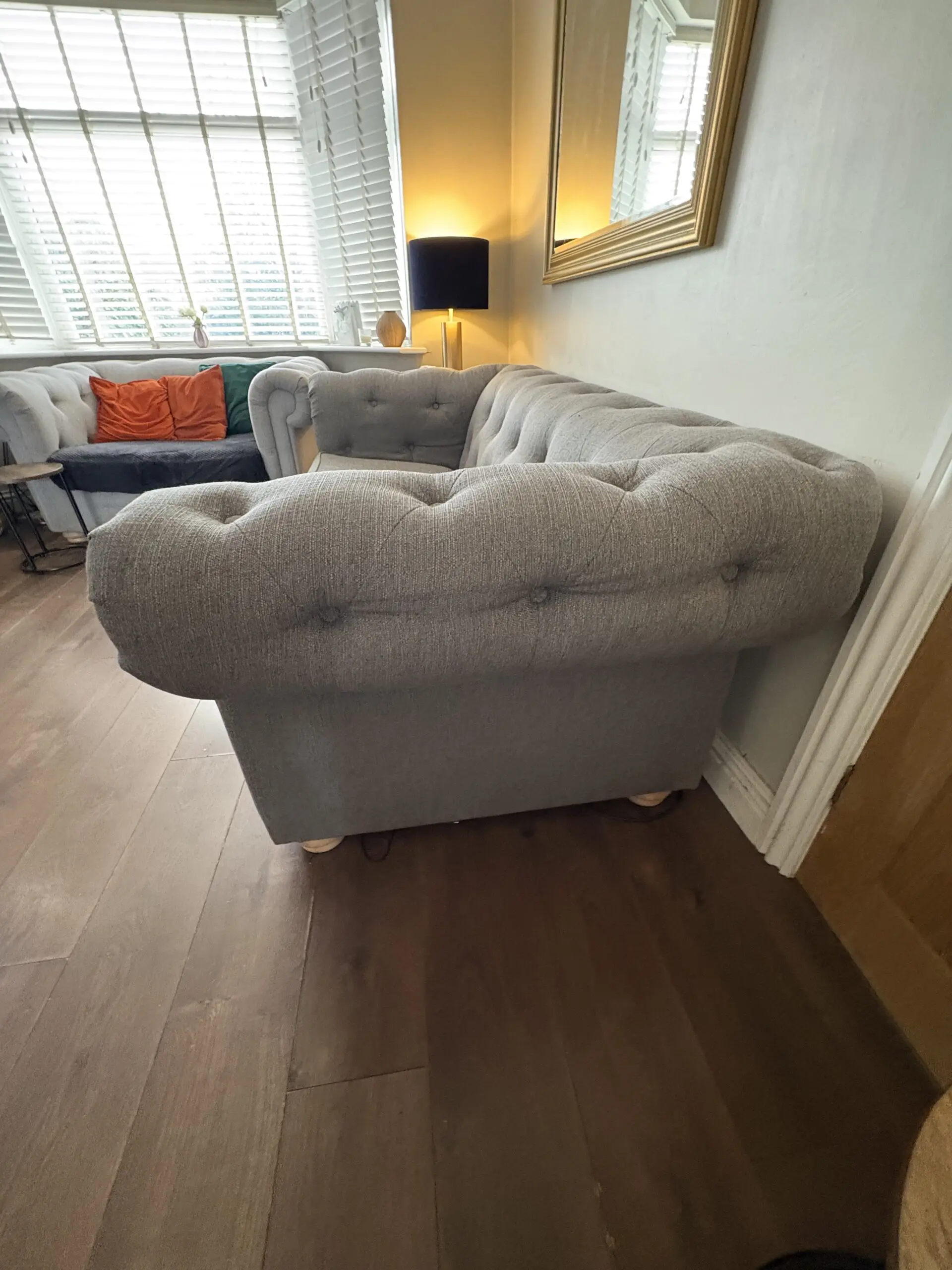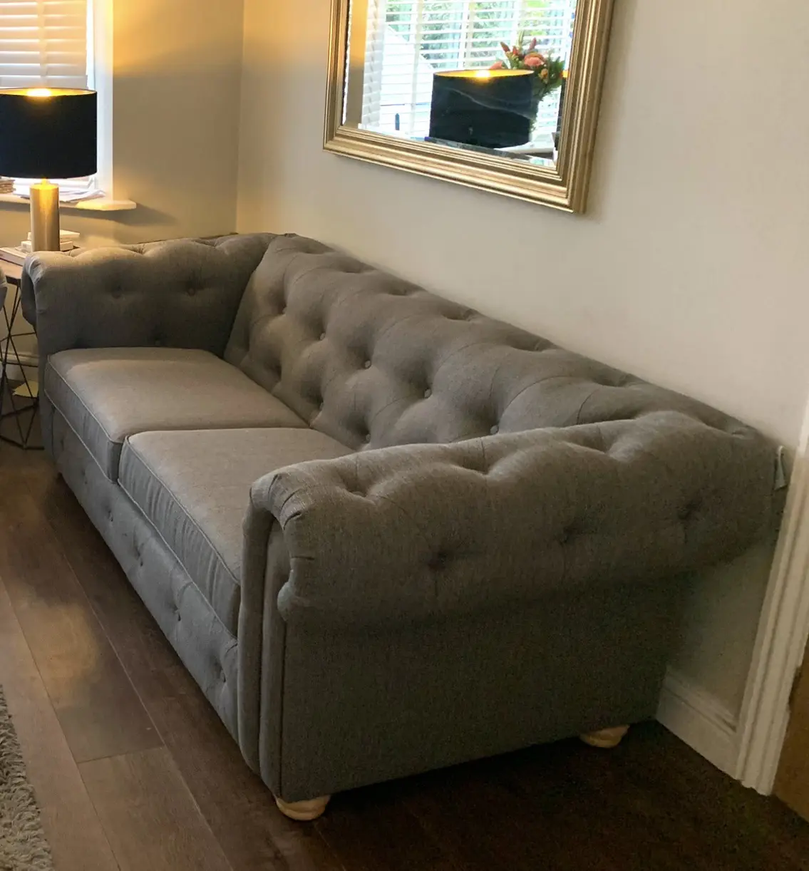 This elegant Belair 3-seater sofa brings classic Chesterfield styling to any living space with its distinctive deep button tufting across the back and arms. The generous proportions and comfortable seat cushions make it perfect for family relaxation or entertaining guests. The traditional design features rolled arms and wooden feet that complement both modern and traditional interiors. A timeless piece that would make an excellent addition to your lounge or sitting room.