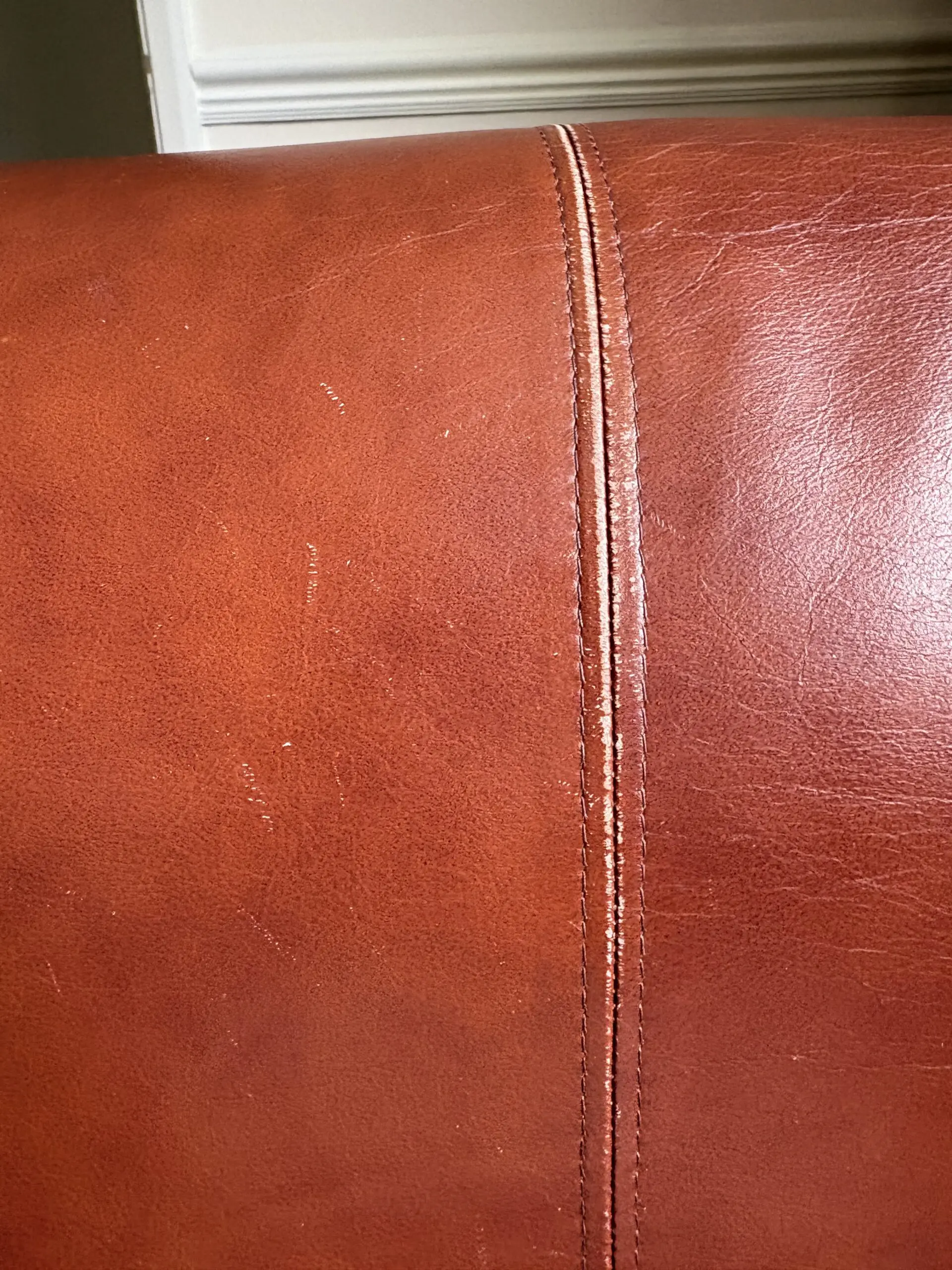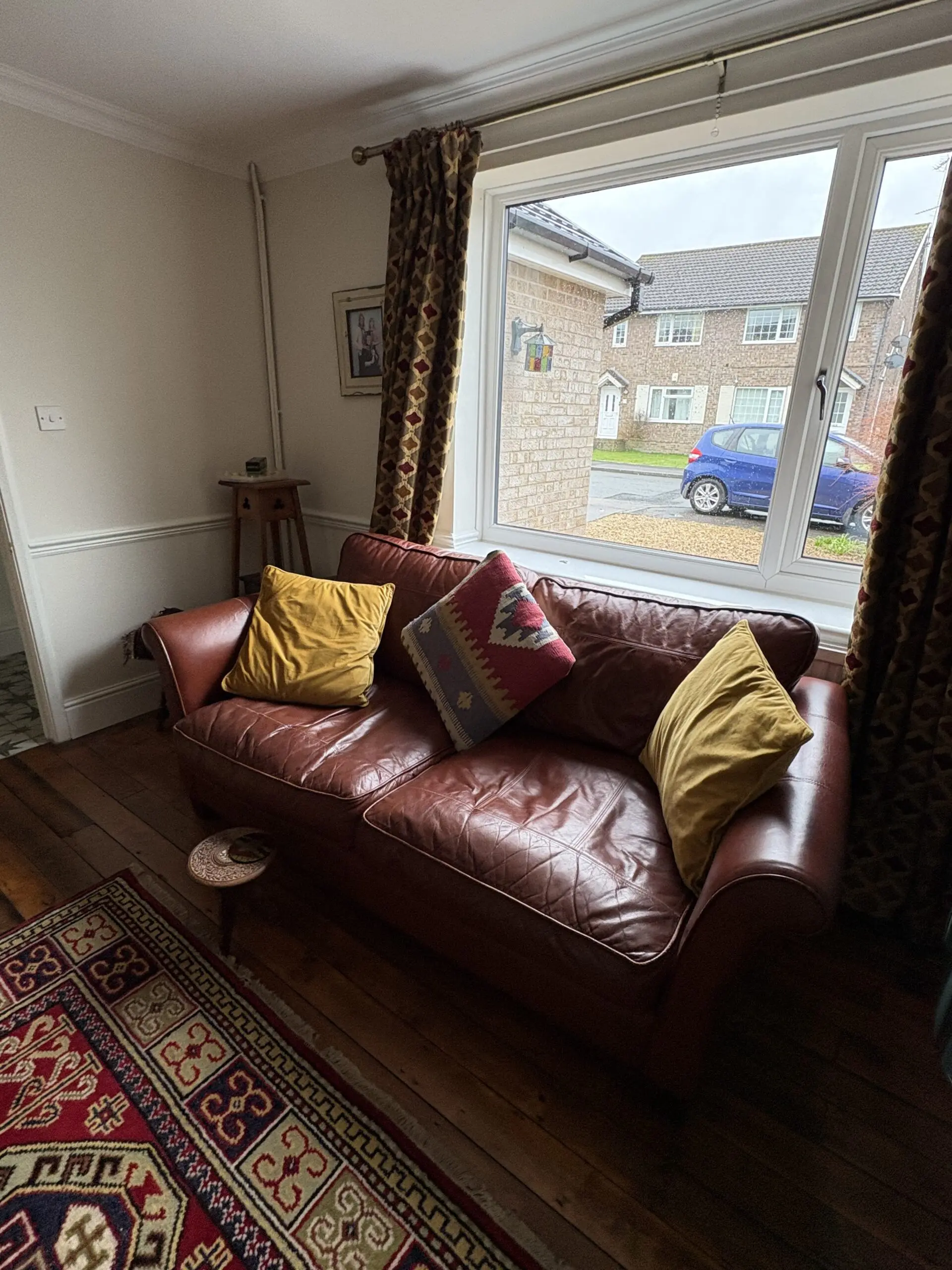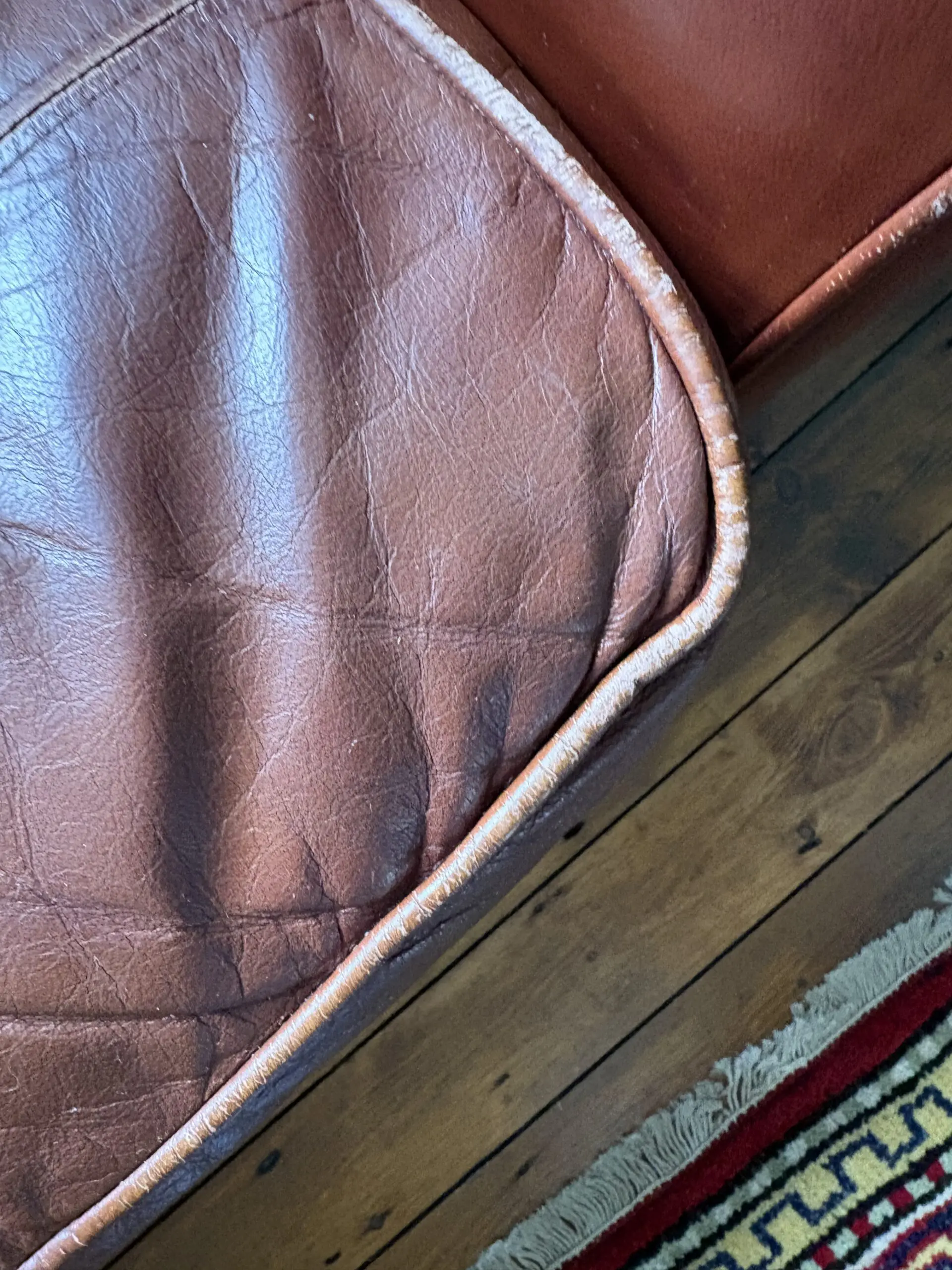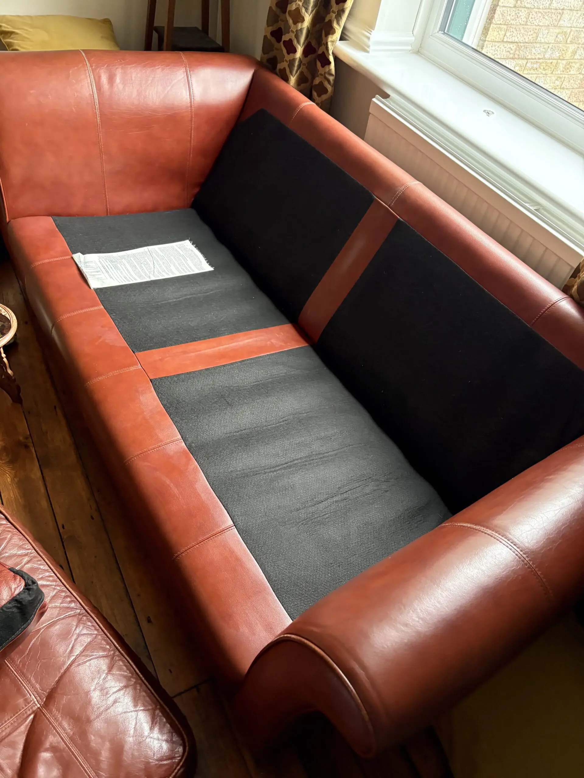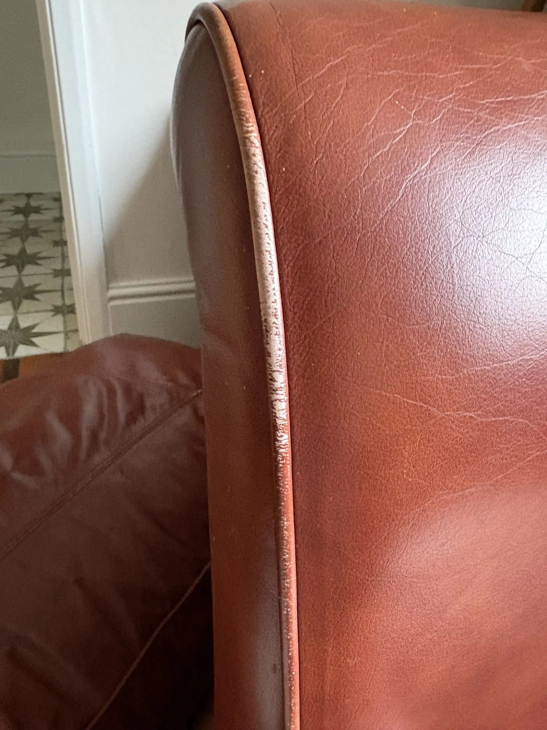 DFS leather sofa, very comfortable. In good condition, structurally excellent. Note there are wear and tear marks / scratches on the leather (see pics). We have always felt that they enhanced the look of the leather, but please look carefully to make sure you are happy.
