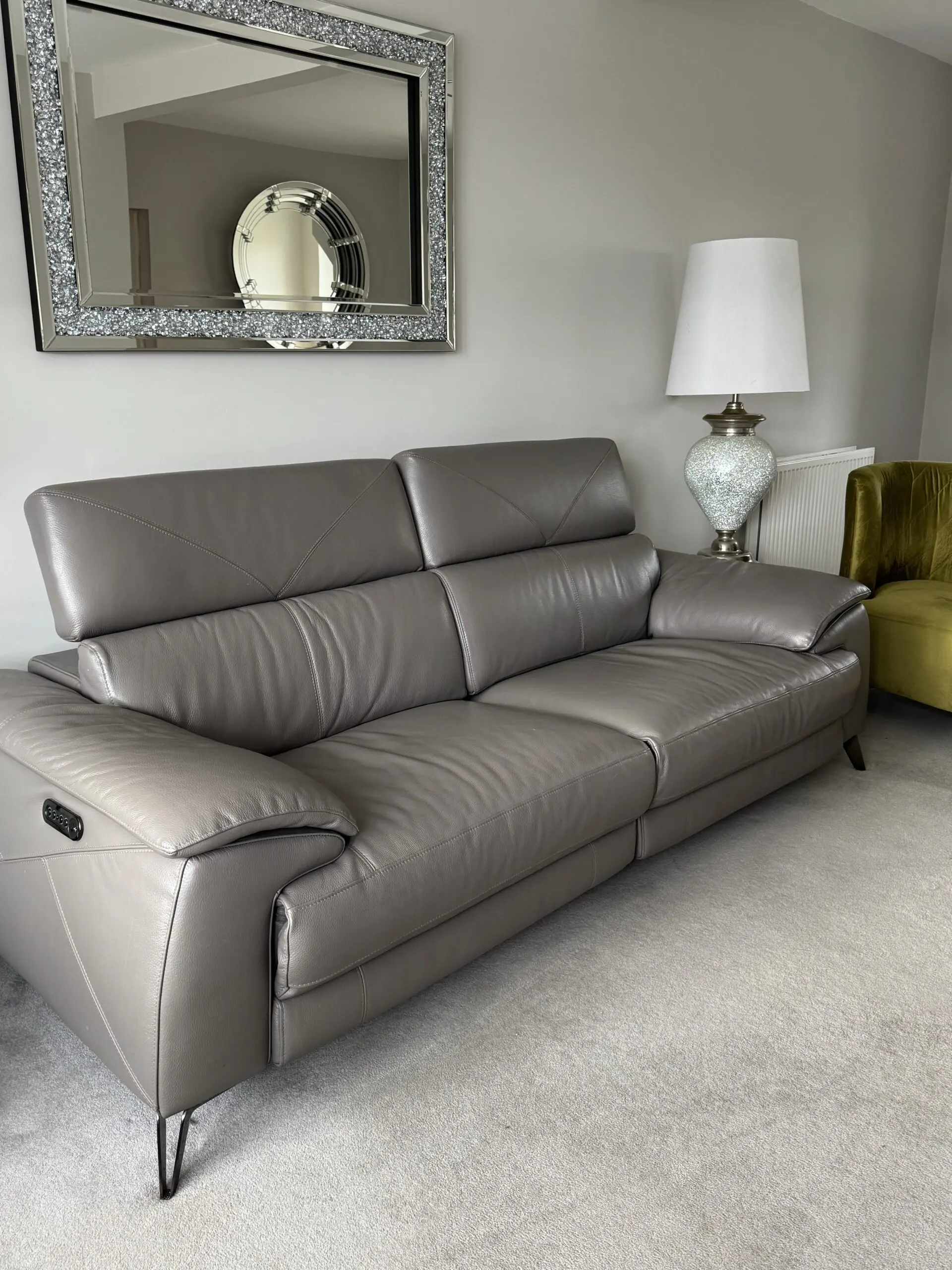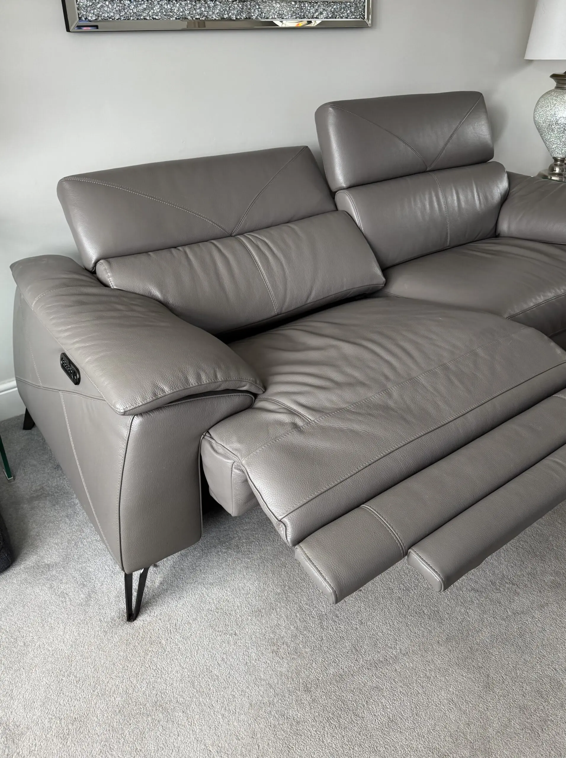 Ultra-cool and contemporary, effortlessly captures modern Italian sofa aesthetic – finished with minimalist splayed chrome-effect legs and diagonal feature seams. Relax in style with luxury reclining head and footrests, for customisable comfort.