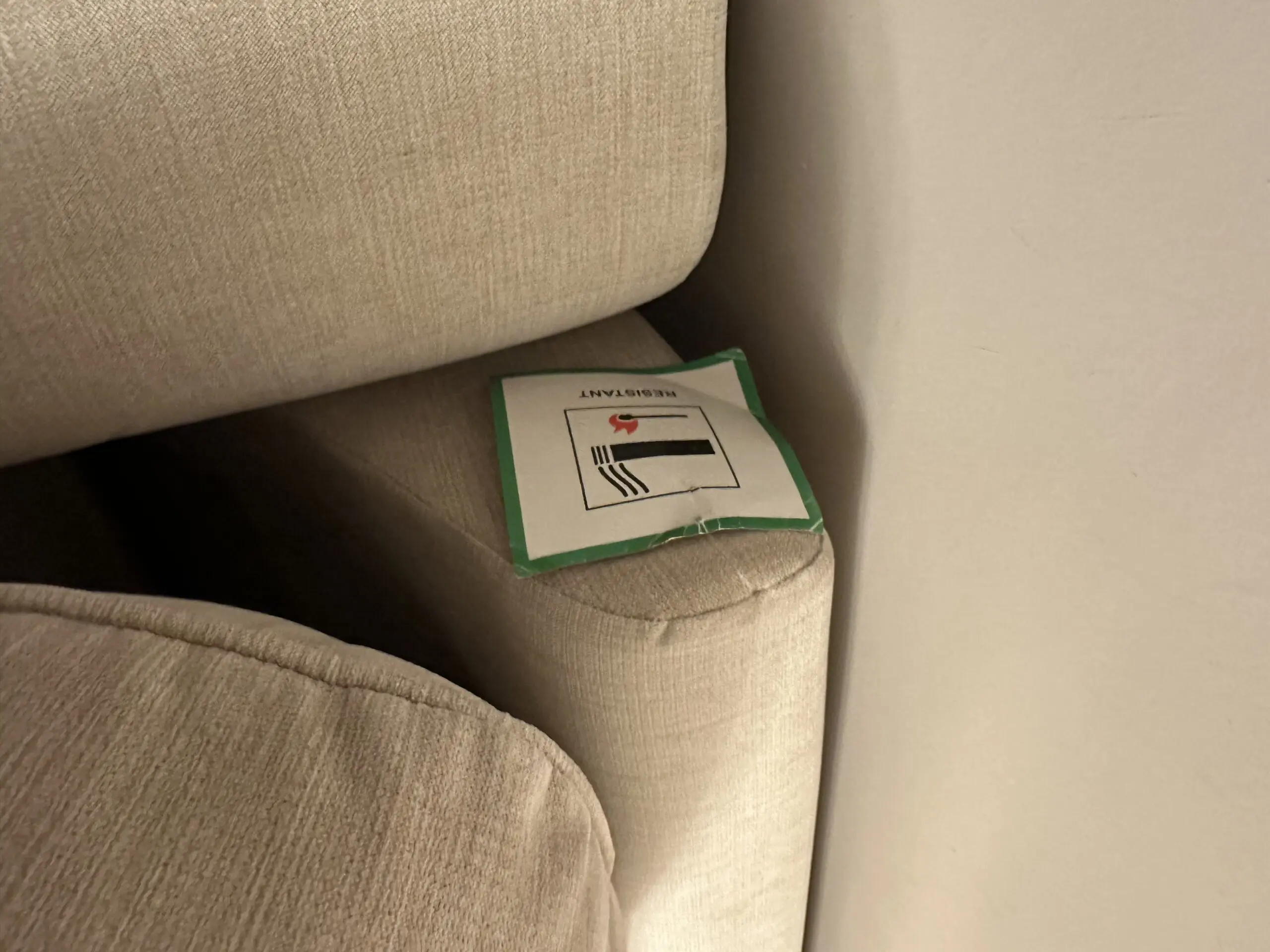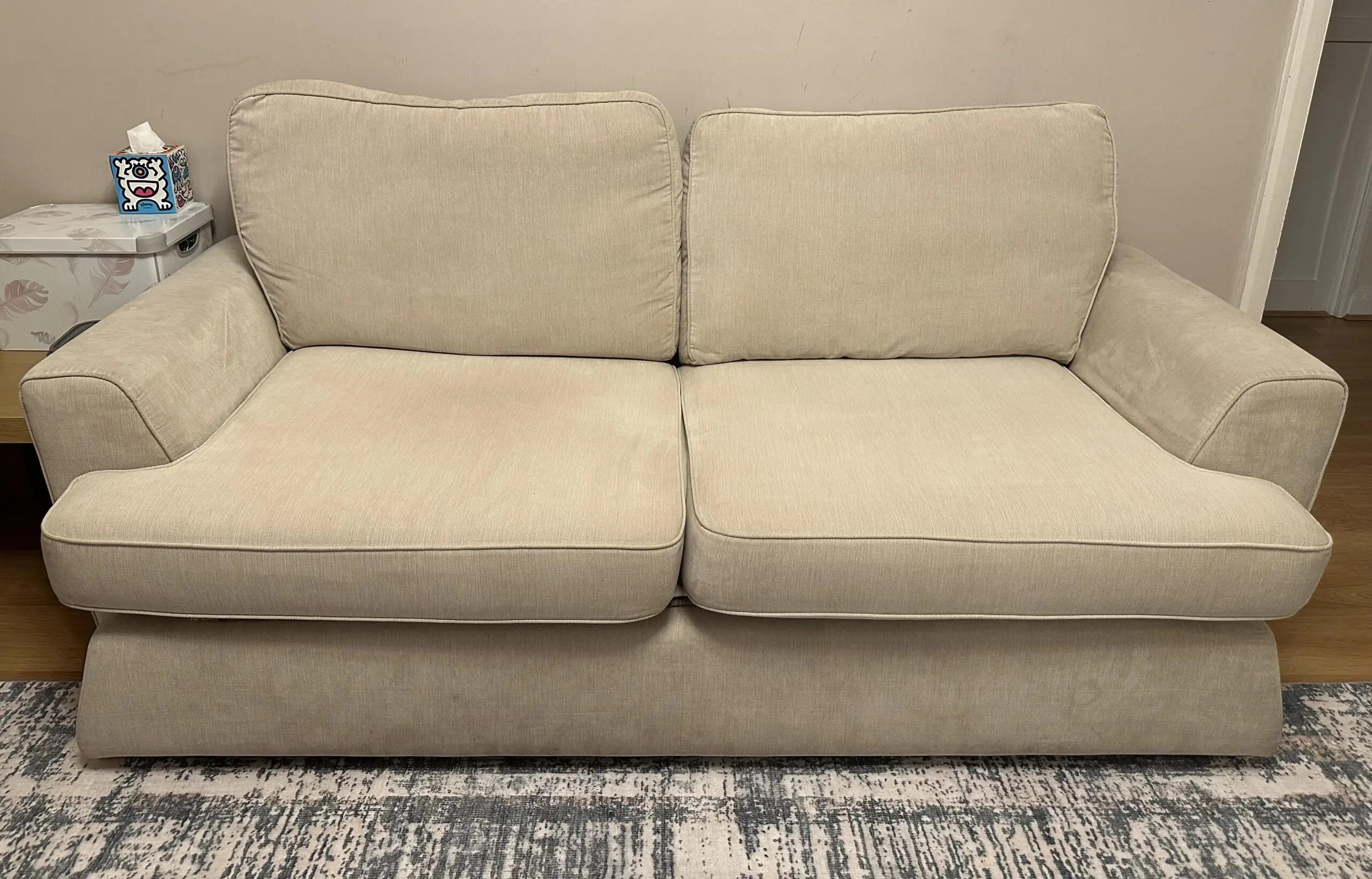 3 seater sofa used with minor stains. No noticeable damage to sofa. Pet free and smoke free home. Fire label present no tears or rips.