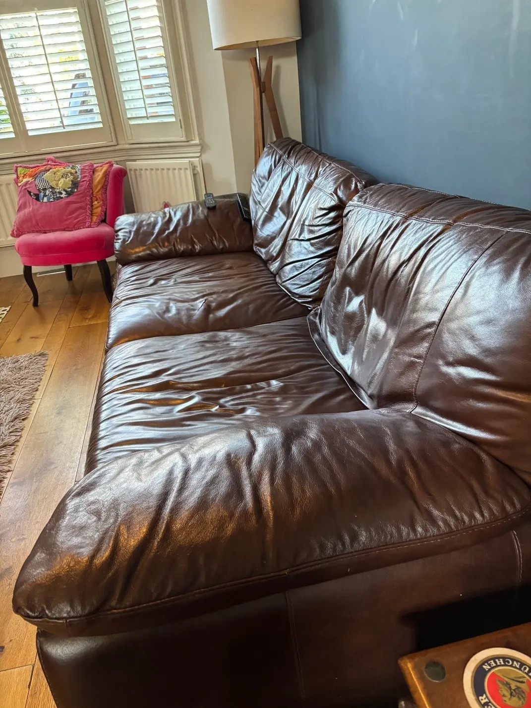 good condition leather wise, no tears, cuts or scratches – some sagging but super comfy.