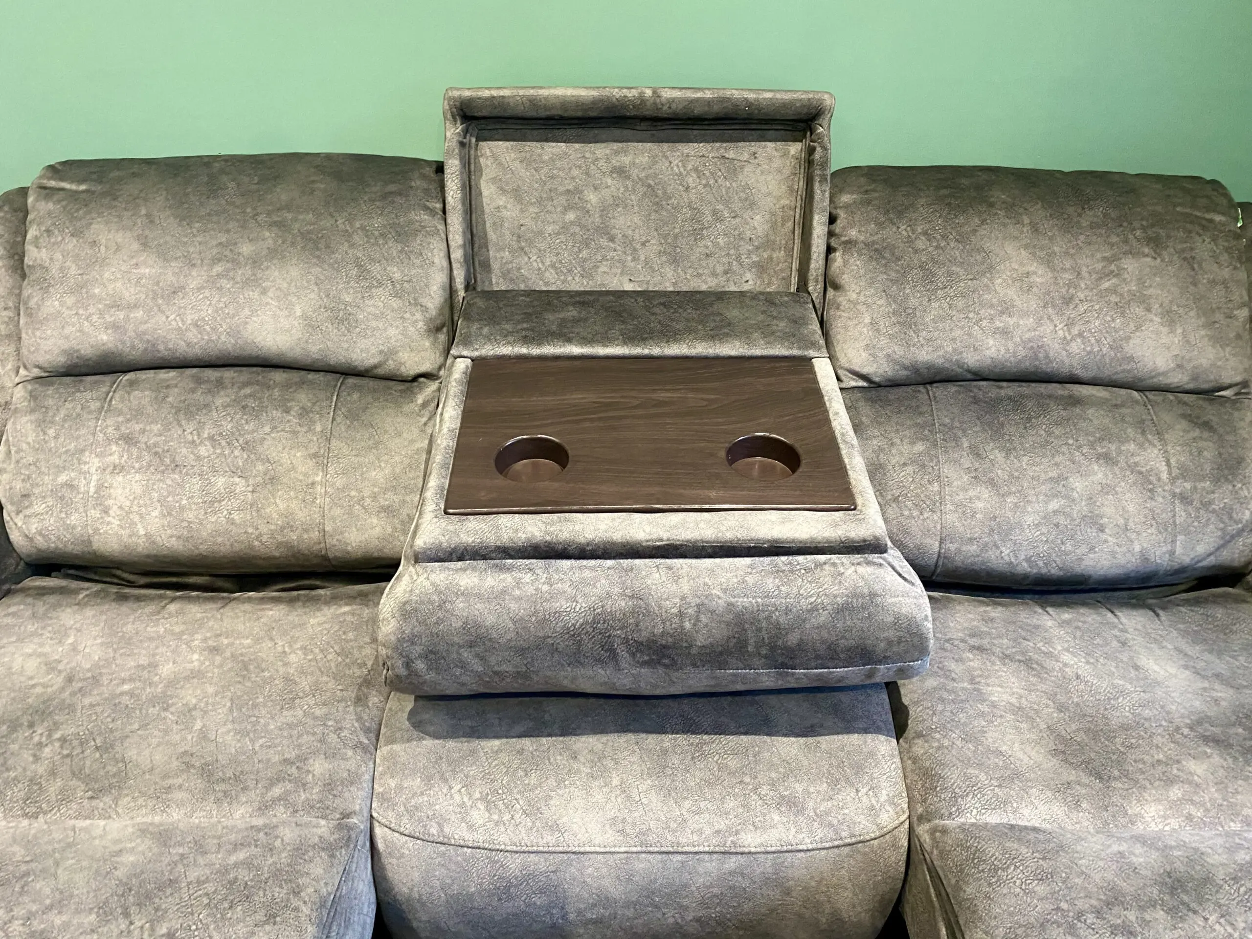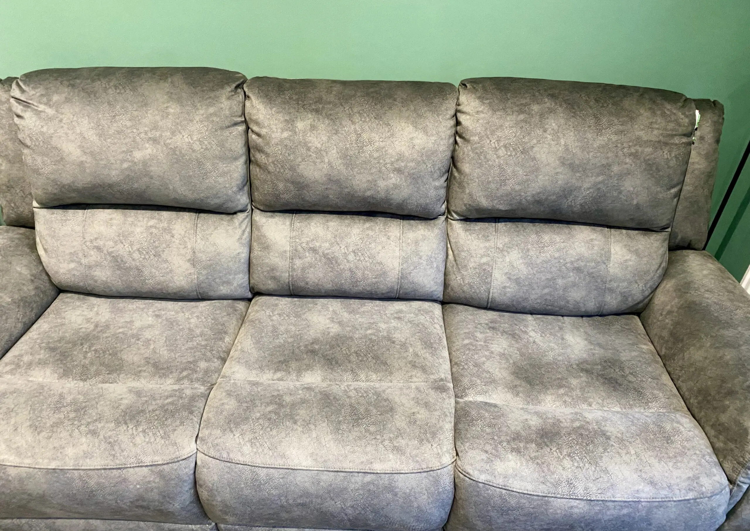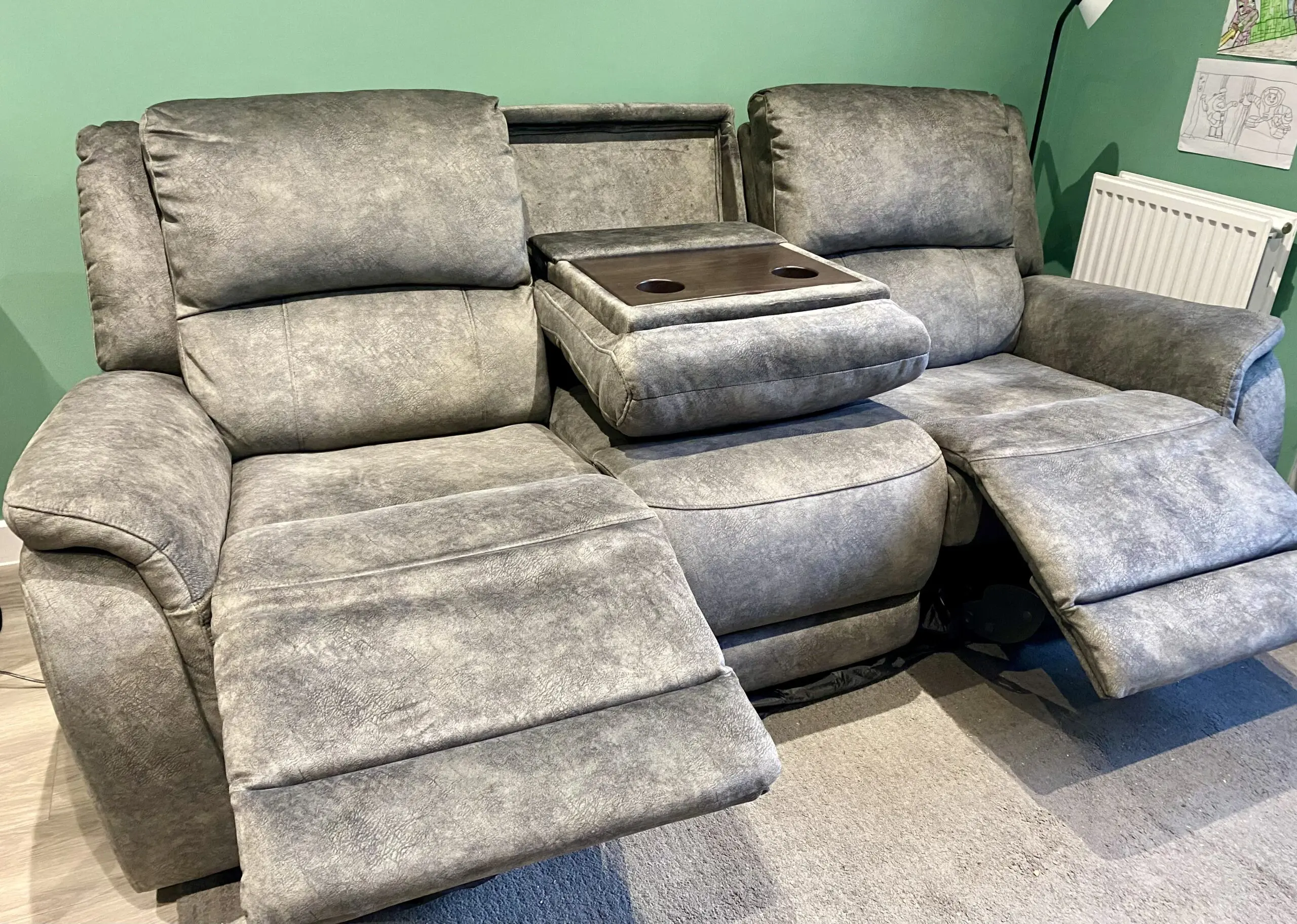 The DFS Dylan 3 seater sofa is a double power recliner so you can choose to recline independently. It has a fold down centre table and cup holders. Upholstered in Mayson, an indulgent fabric that looks like suede with the feel of velvet. It has supportive foam seat cushions – which spring back into shape, for a more consistently plump look across the seat of your sofa, with minimal maintenance. It also features built in USB/USB-C device chargers on both ends of the sofa. Includes new and unused fabric care kit provided by DFS as well as Eaziglide casters designed to make moving your sofa quick and easy when cleaning or rearranging your space.