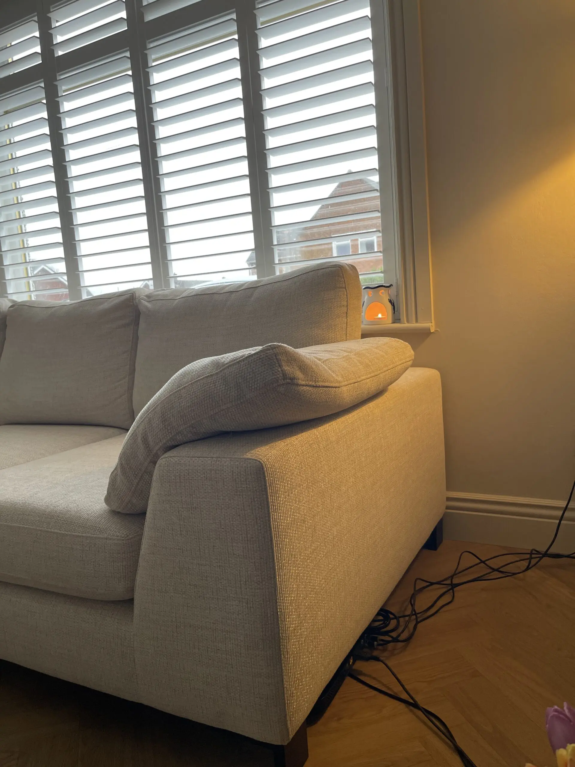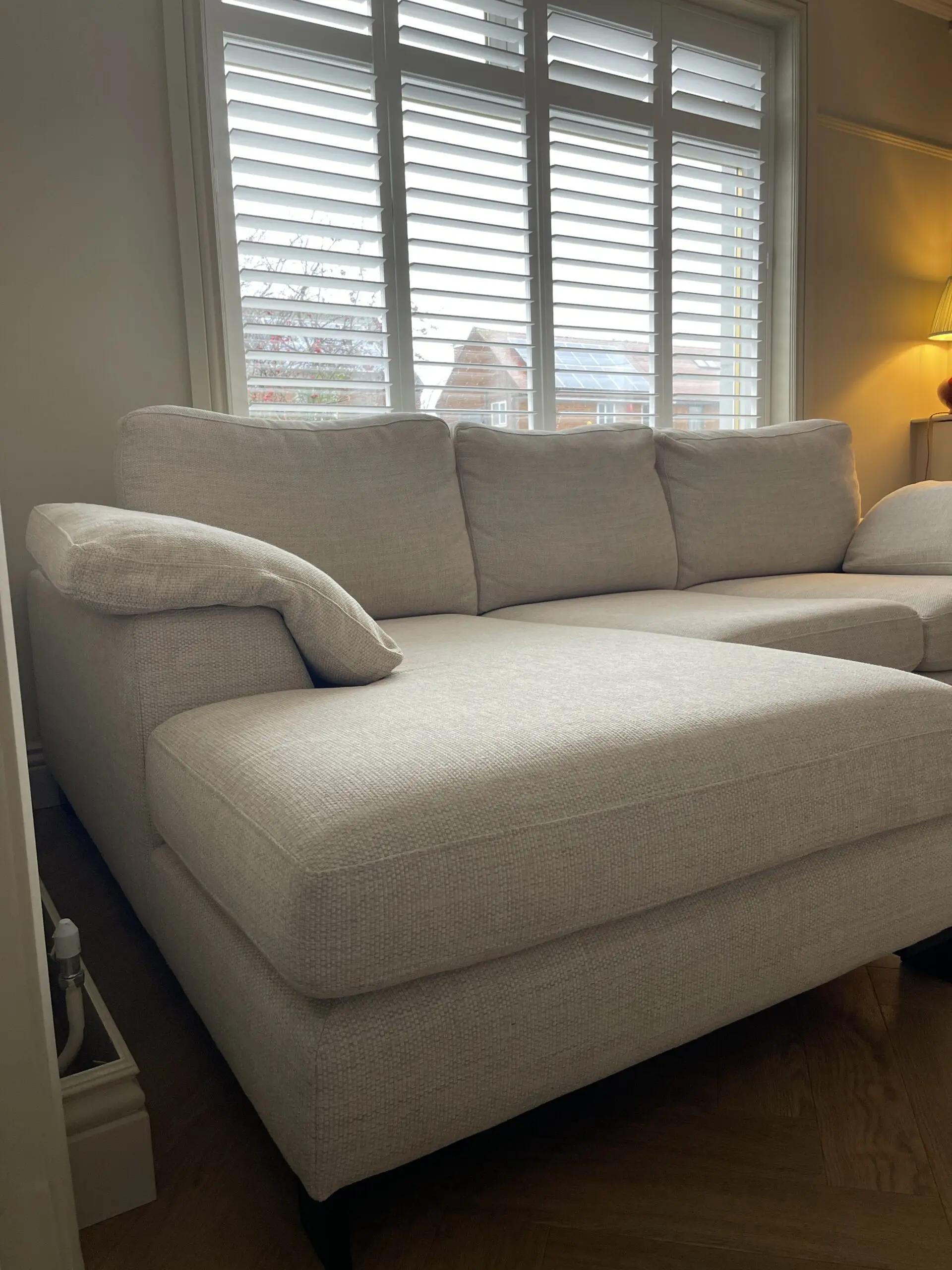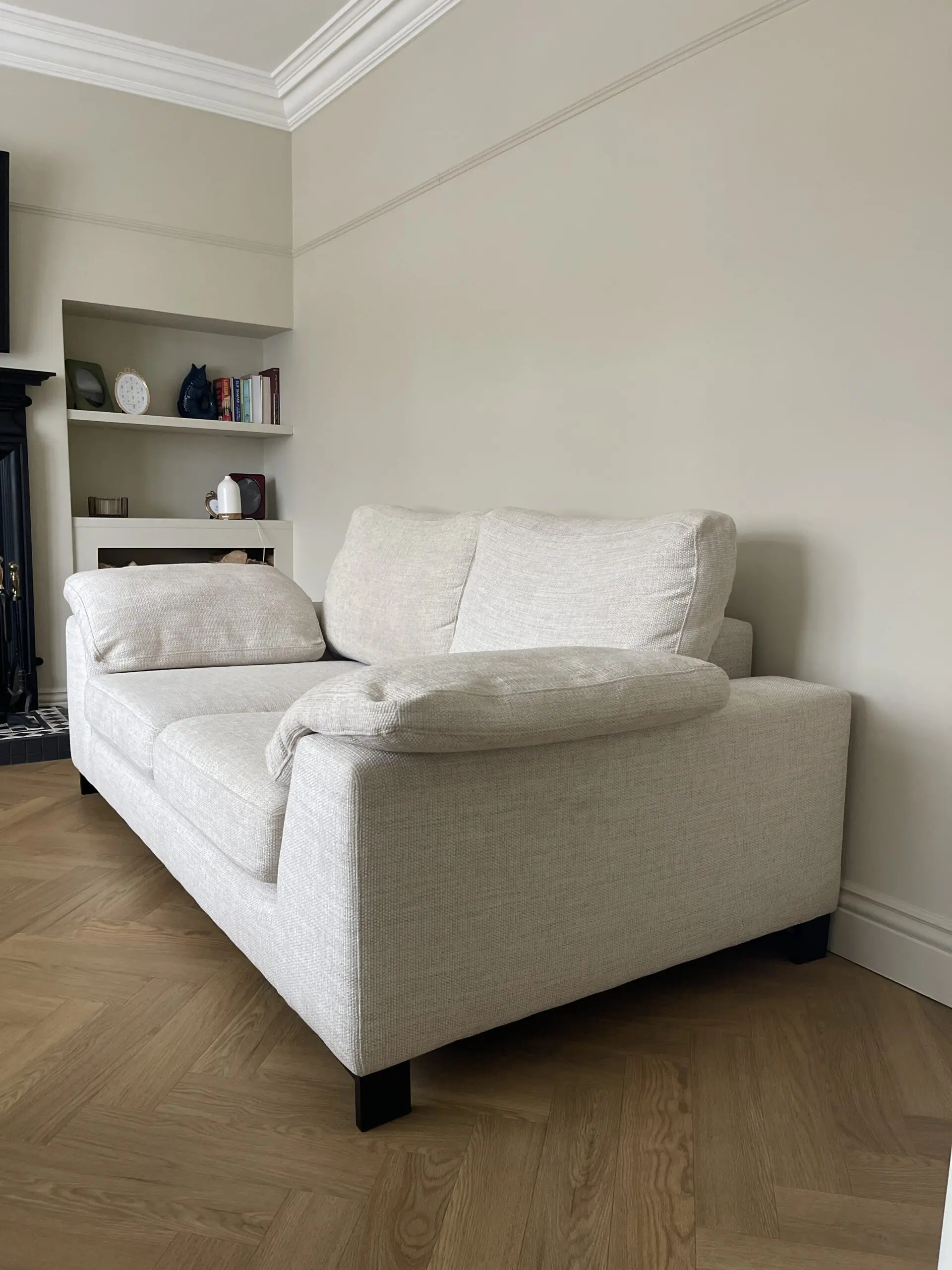 This sofa is upholstered in Breeze Plain, a chunky basket-weave fabric featuring subtle irregularities and contrasting tones that make the weave pattern a distinctive design feature. The sturdy, tonal fabric has a timeless look designed to endure beautifully over time. Foam-filled seat cushions provide a neat, supportive finish that springs back into shape without the need for plumping. The sofa also comes complete with two complimentary body arm pads.