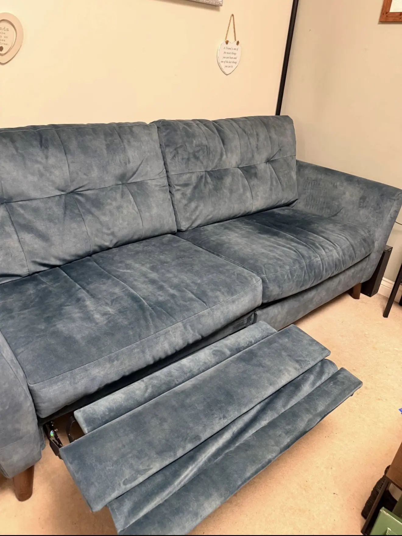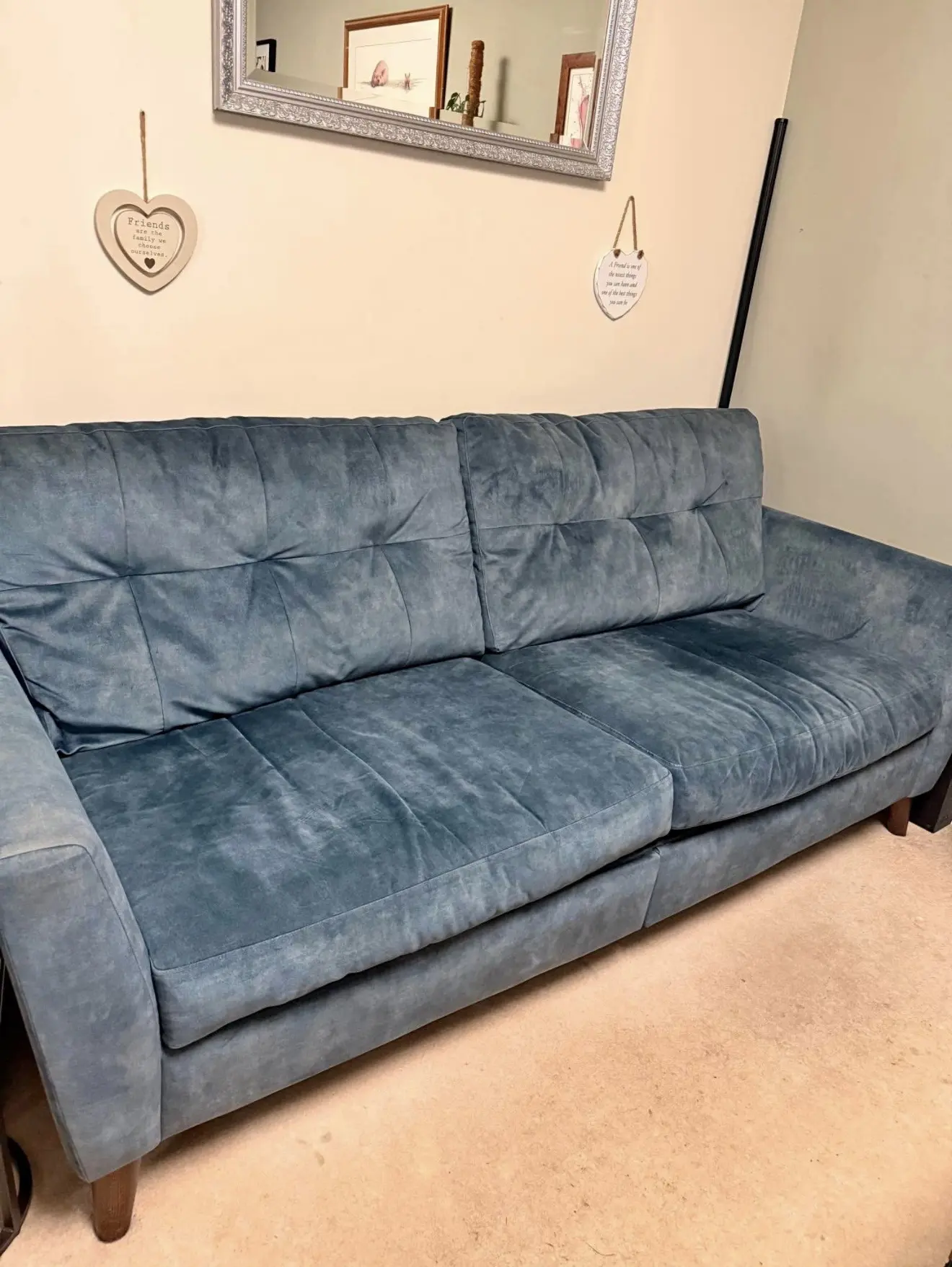 Beautiful teal velvet 3 seater power motion sofa. 3 years old, in good condition full working order.
