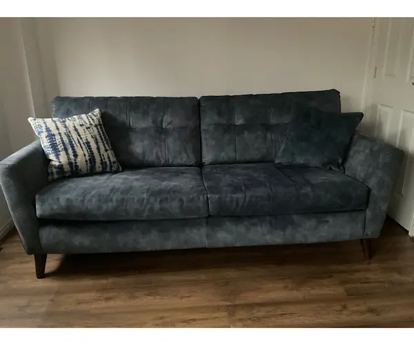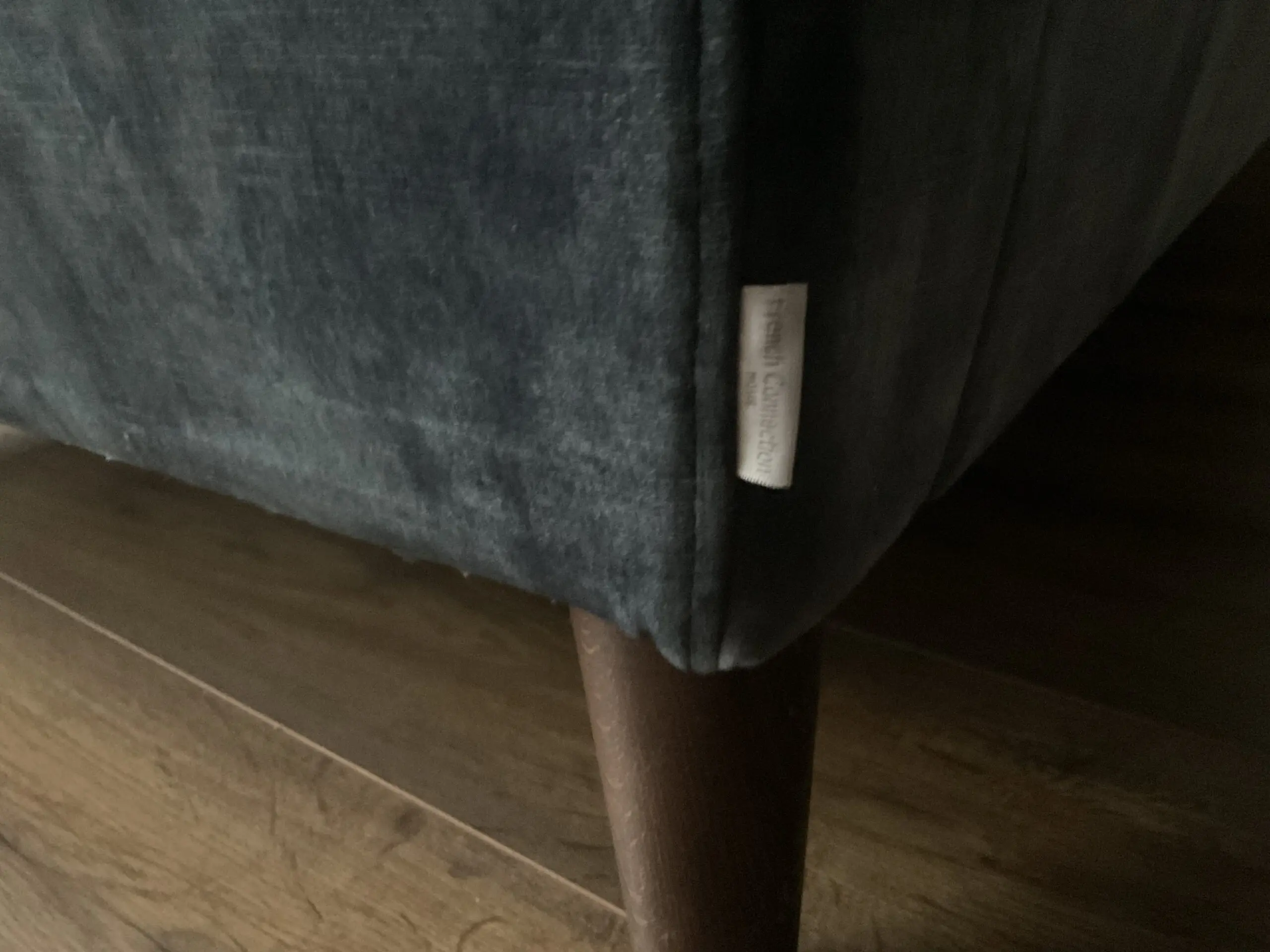 French Connection 3 seater sofa, in navy with dark legs plus 2 x doublesided scatter cushions.