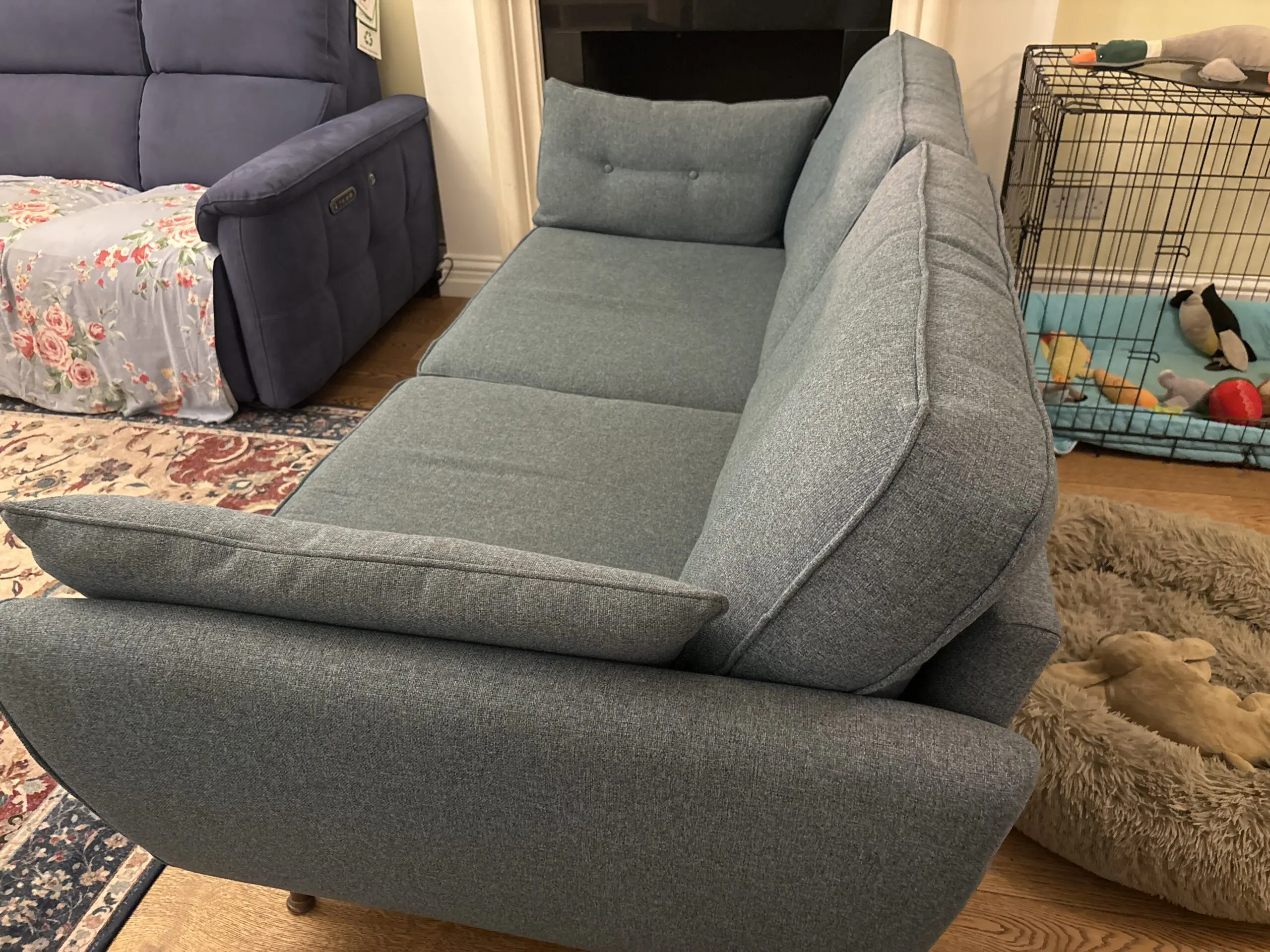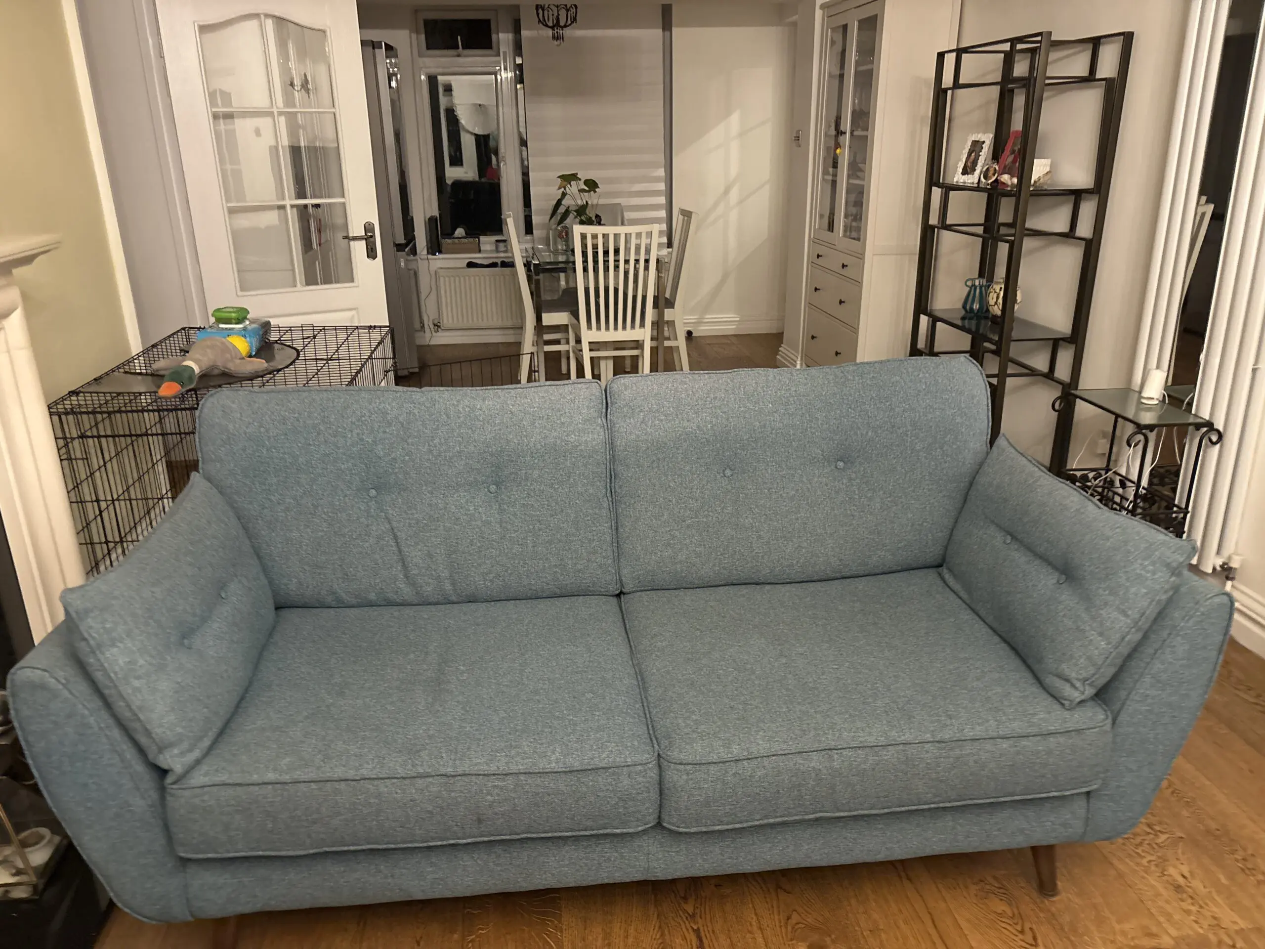 DFS / French Connection 3 seater sofa in decent condition. Expect usual usage stains. Left rear bitten by pet during her puppy phase. Pics will show condition, well maintained for 6-7 years of usage. Original price now is £1649. Seat height is 43cm https://www.dfs.co.uk/zinc/zci14kpzn?skuId=6760541&gclsrc=aw.ds&gad_source=1&gad_campaignid=12350179377&gbraid=0AAAAADojP062ubT9AHLV_Wg0AfVG0ciFY&gclid=EAIaIQobChMIyNW_neuIkQMVvI5QBh21JSVbEAQYAiABEgLWRvD_BwE