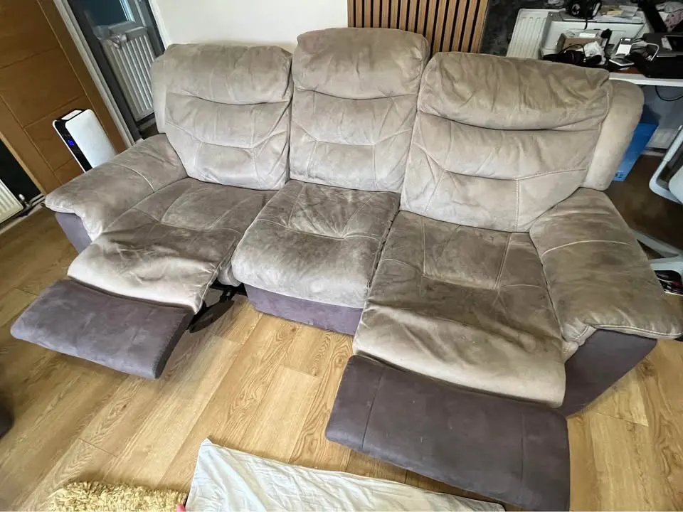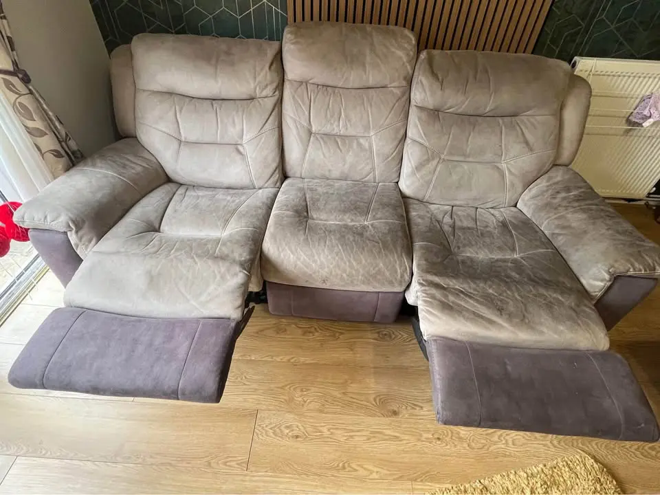 Selling Gariick 3 seater sofa, we have two 3 seater DFS Garrick sofas to sell. Both are sofas are manual recliner and a good professional clean will give you a great sofa to use. Both the sofas are in good condition and everything works fine with little wear. Dimensions of each sofa is same as mentioned below