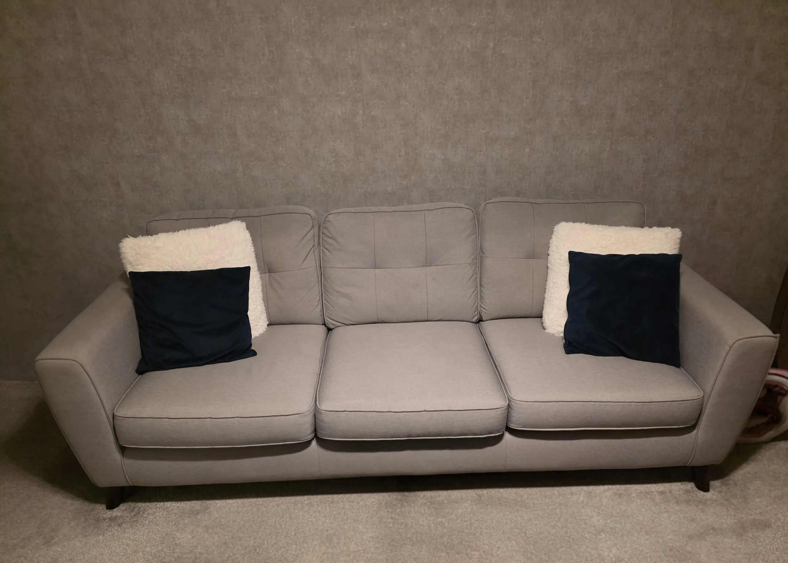 Dfs grey 3 seater sofa, Foam cushions, Fibre filled backs, excellent condition.