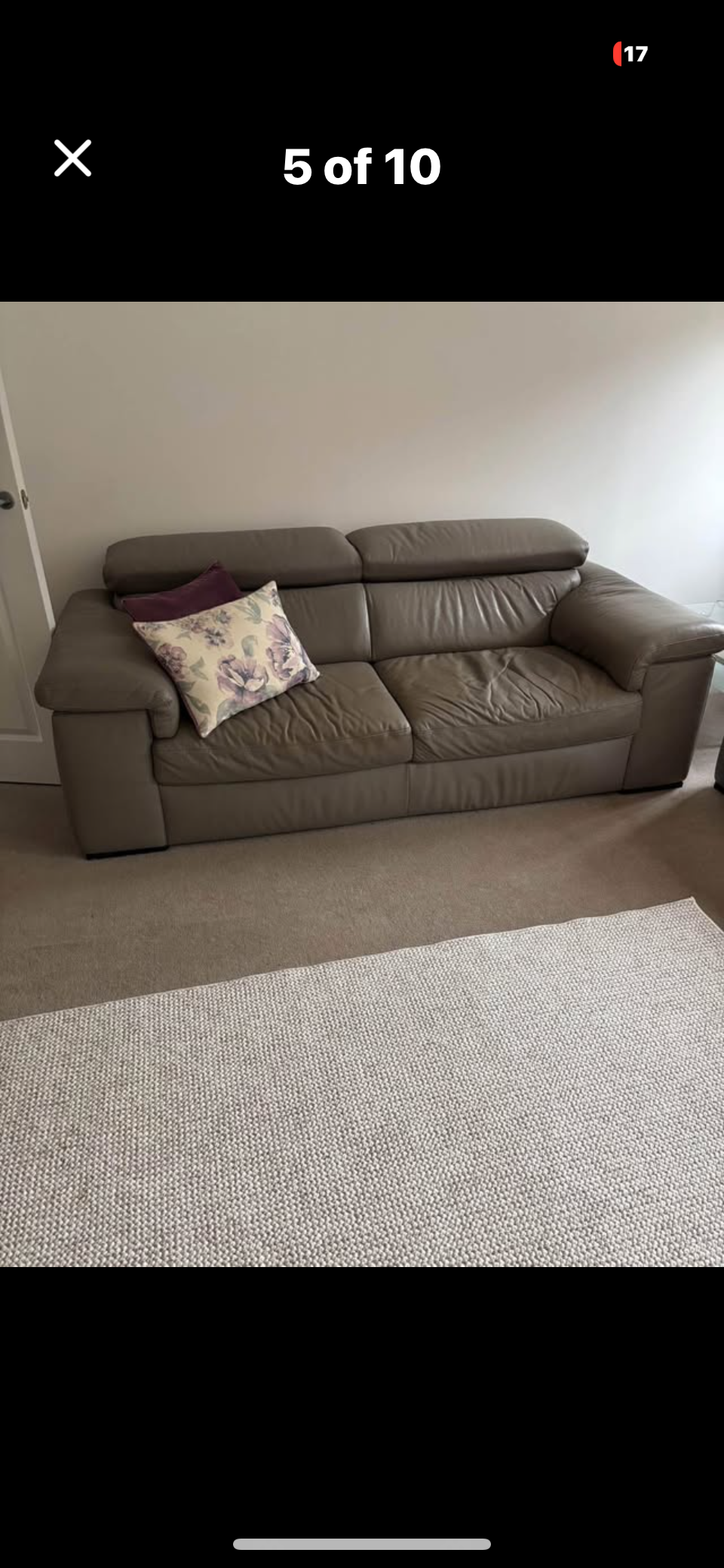 Italian leather, very heavy sofa with minimal wear. No stains. Back lifts up or down