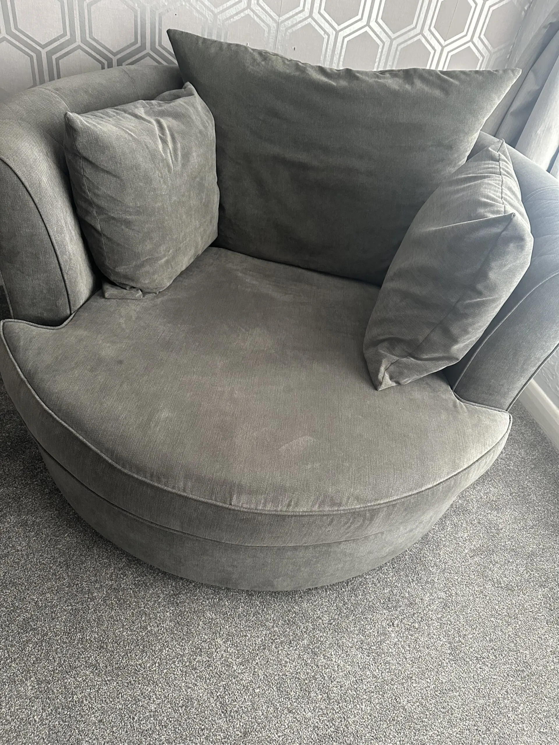DFS Grey Orka 3 seater sofa & Swivel Cuddler chair