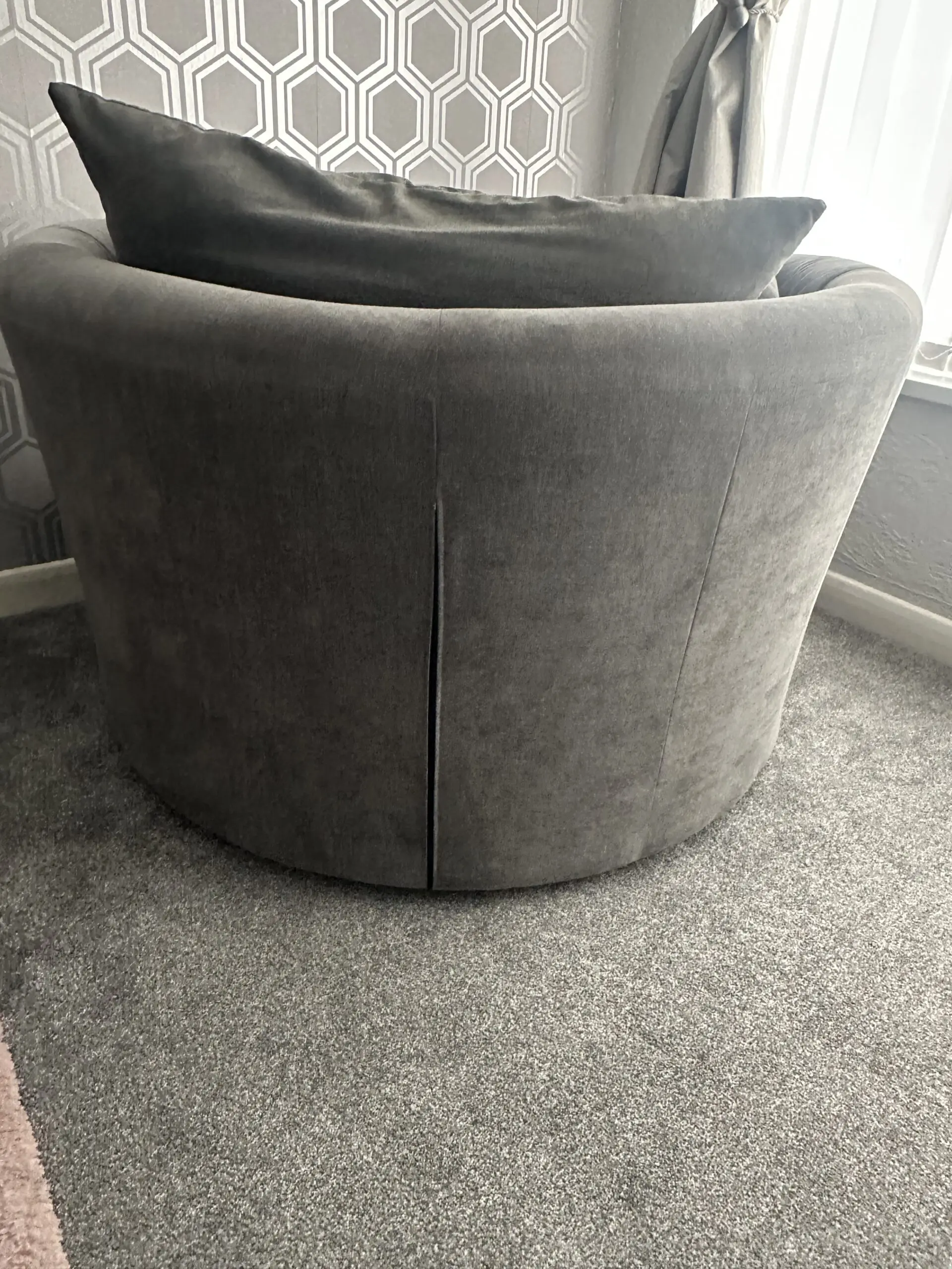 Grey large sofa & swivel chair comes with DFS Cleaning and protective kit. 3 years old.
