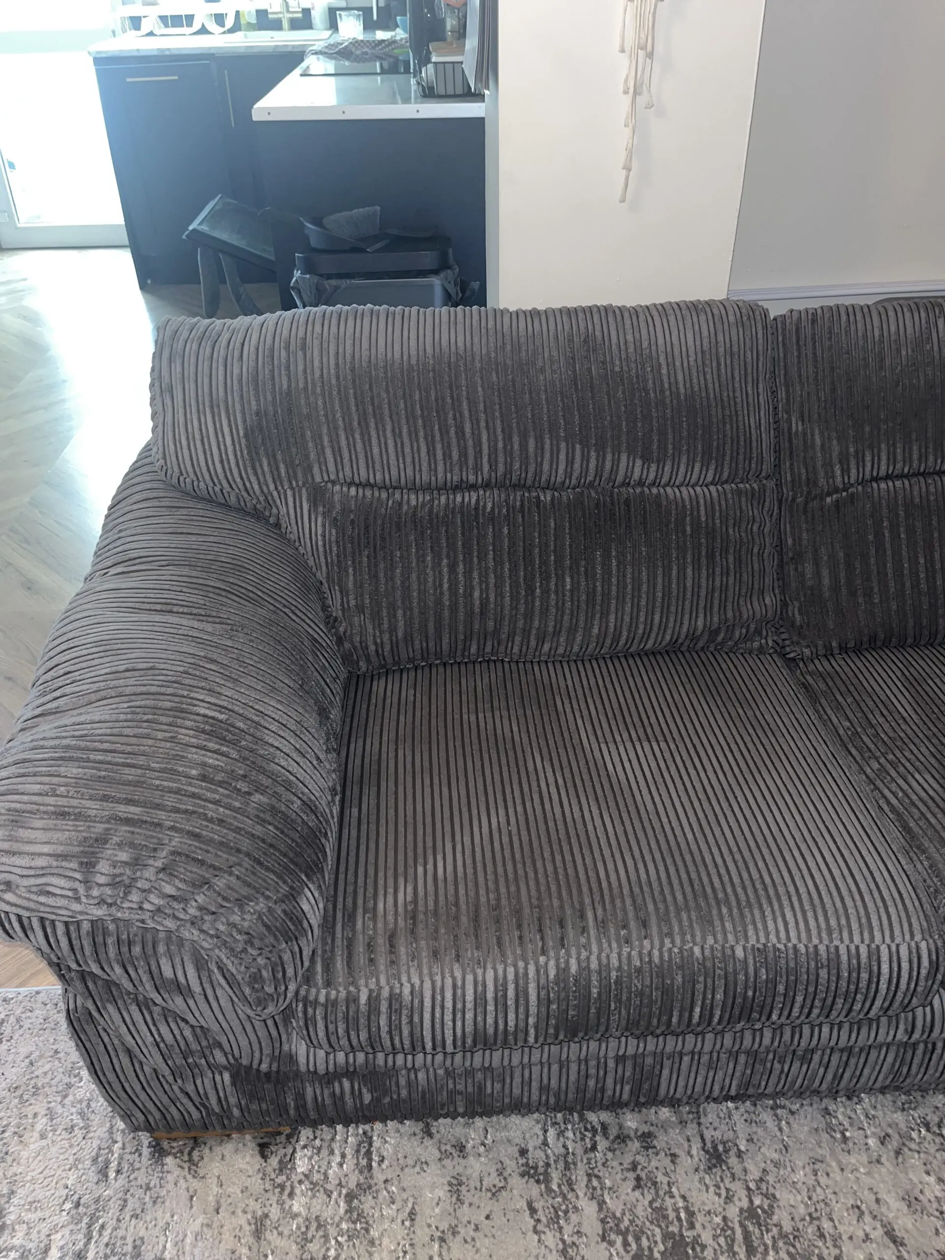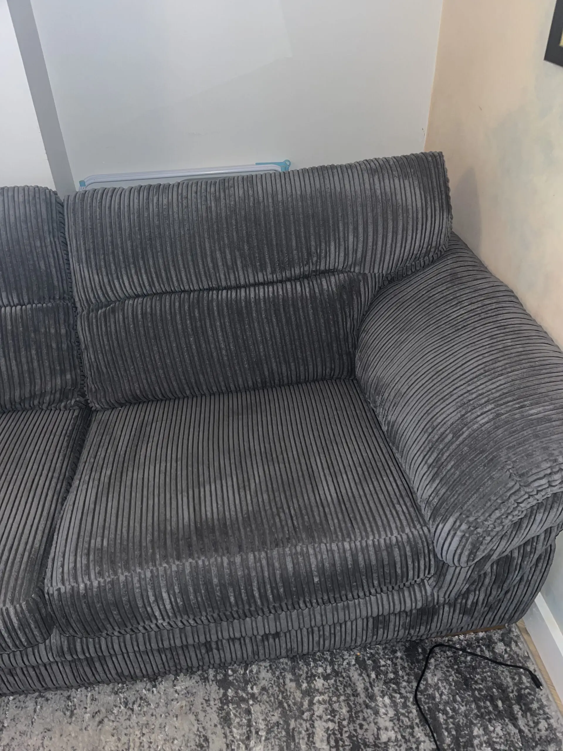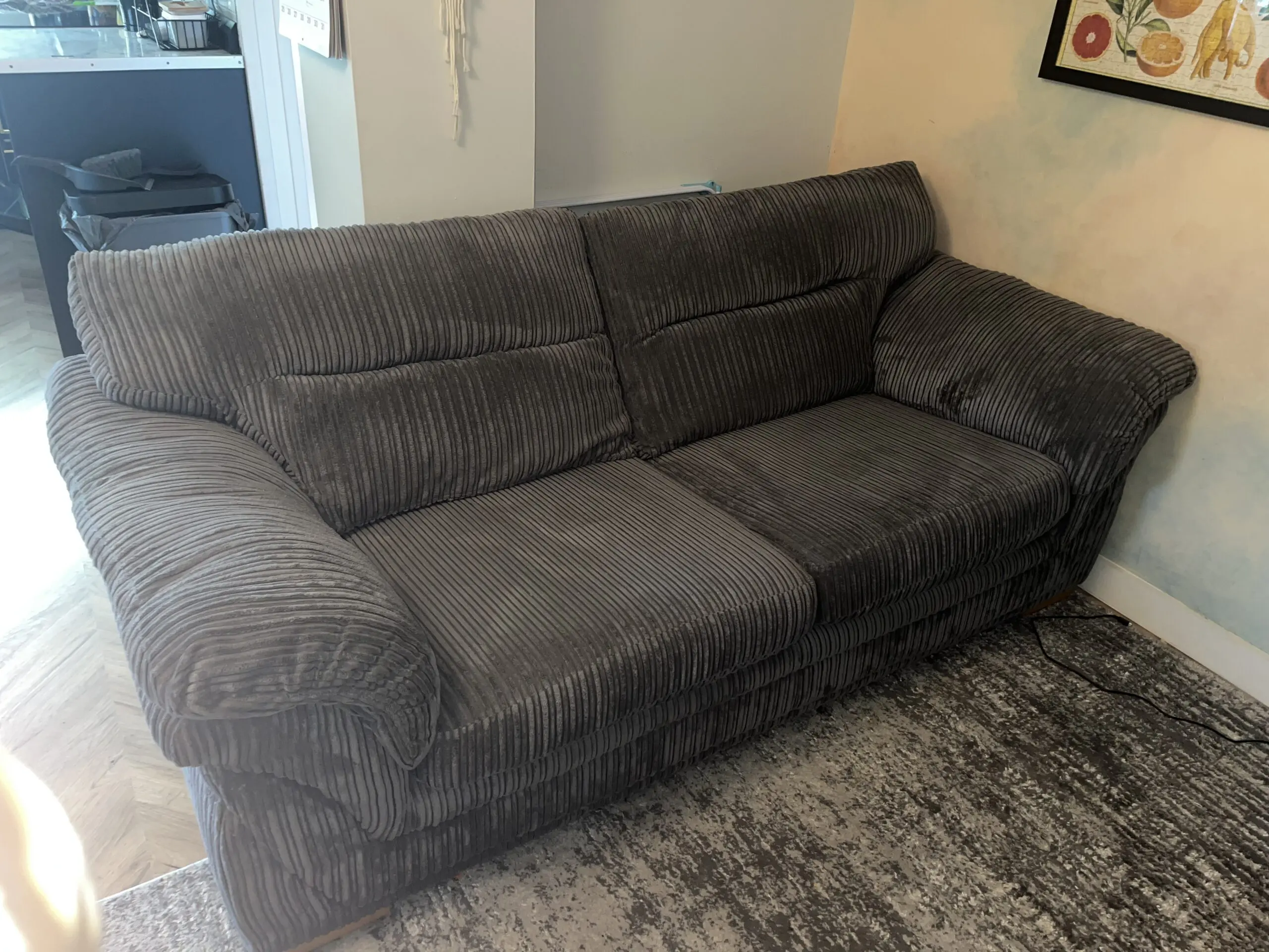 Dfs grey slate 3 seater sofa, cord design and foam cushions