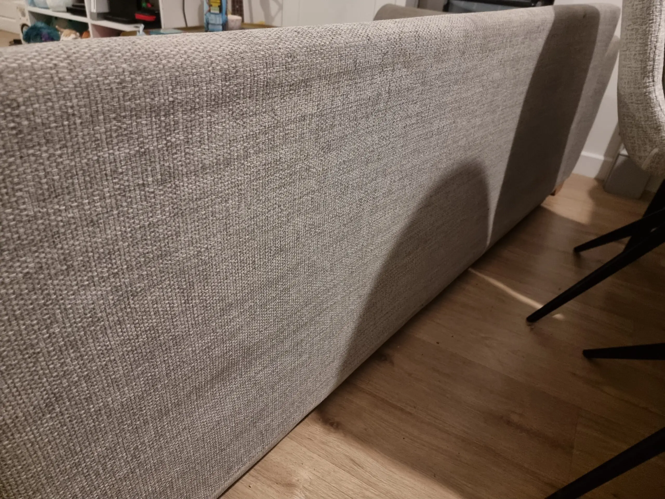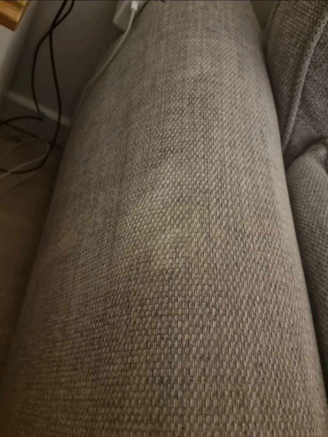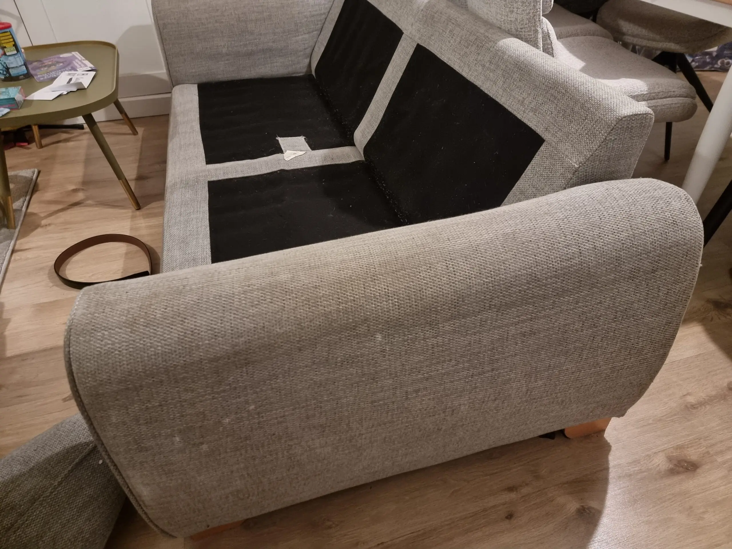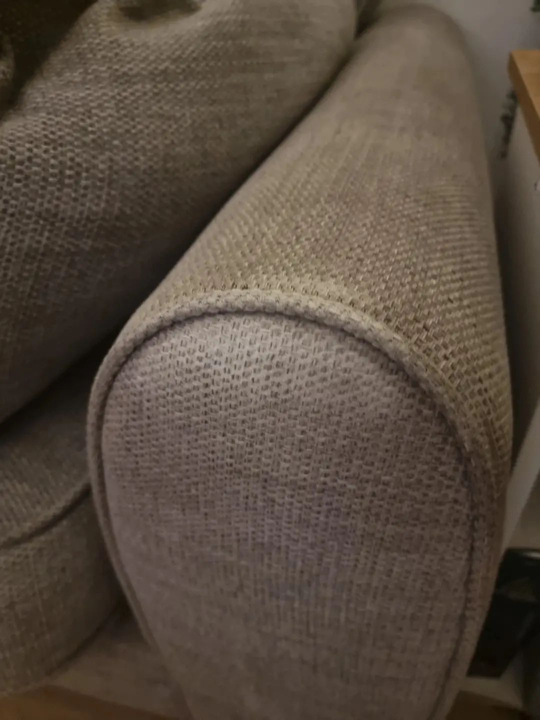 selling because I have got a new sofa. item is clean. armrest side cushions are a bit lumpy and bumpy and there are a few white marks on the material from where ive scraped it against the wall to get it into my house as its a tight fit. selling cheap as I need it gone ASAP. (Although our home is pet and smoke free, the item was previously owned by someone with pets and small amounts of pet hair can still be found on the frame underneath the cushions.