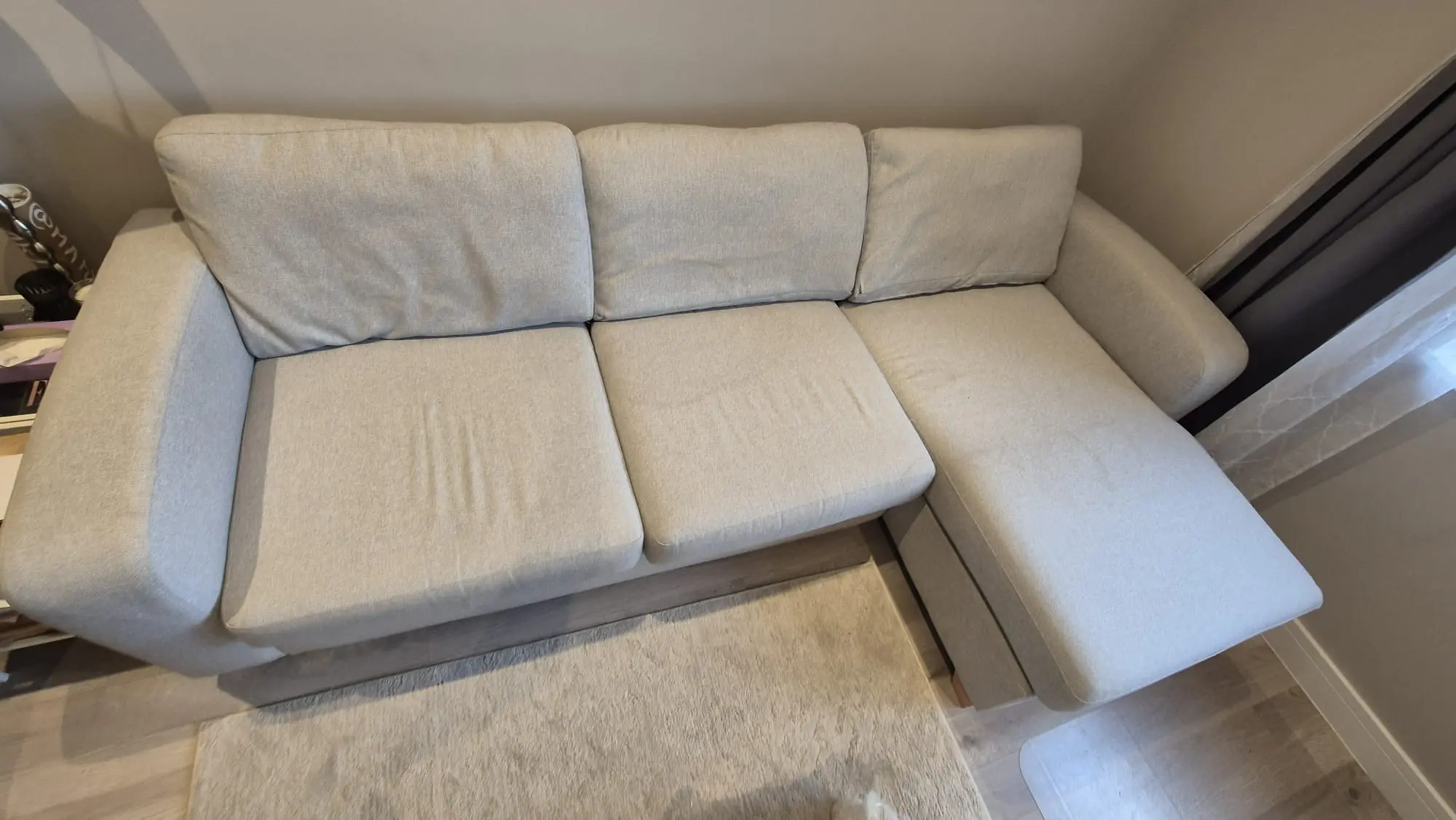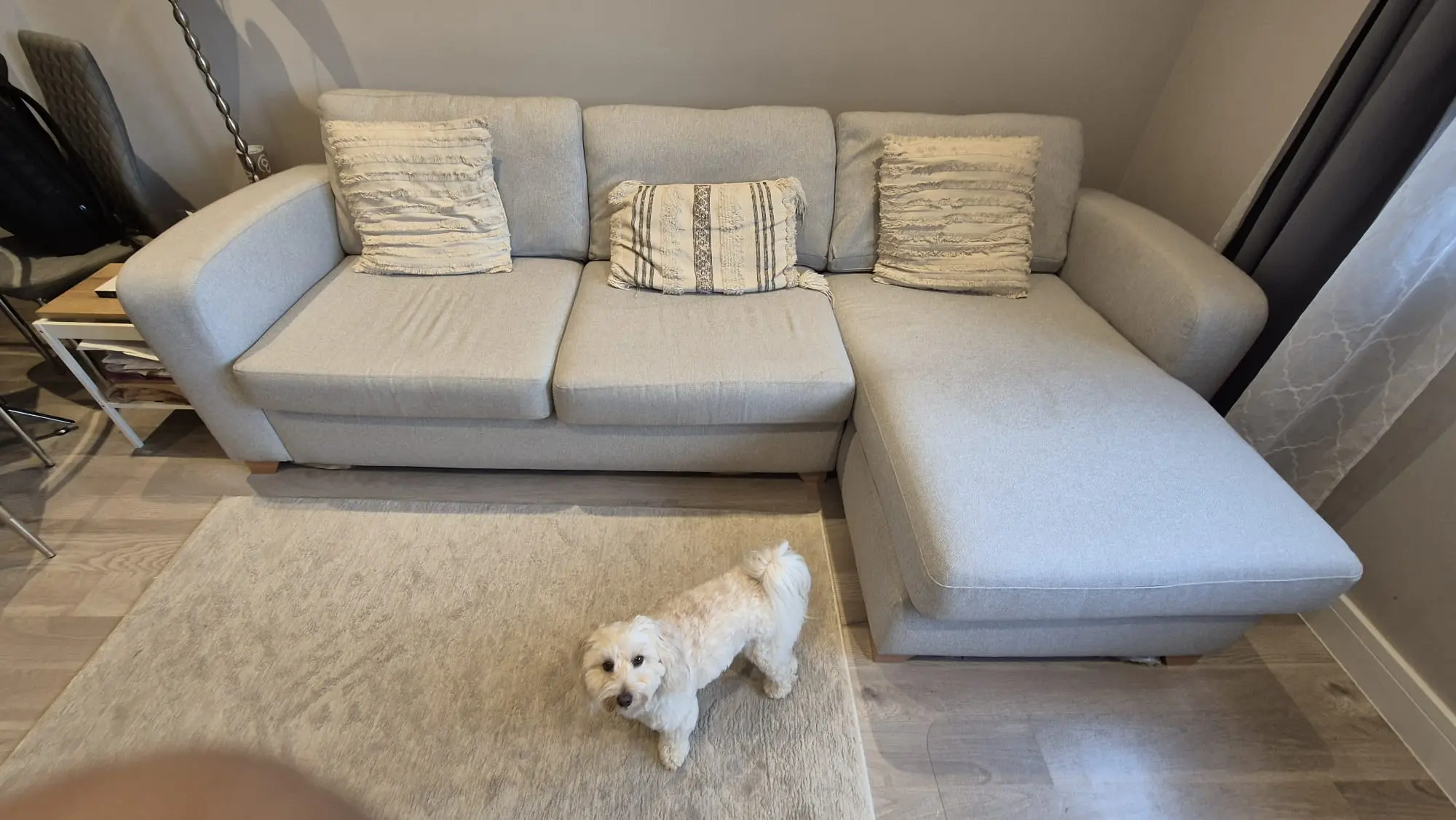 This grey left hand facing 3 seater sofa from DFS is in fantastic condition after only four years of use. The sofa cushions will be fully cleaned before pick up. Really comfy L shape!