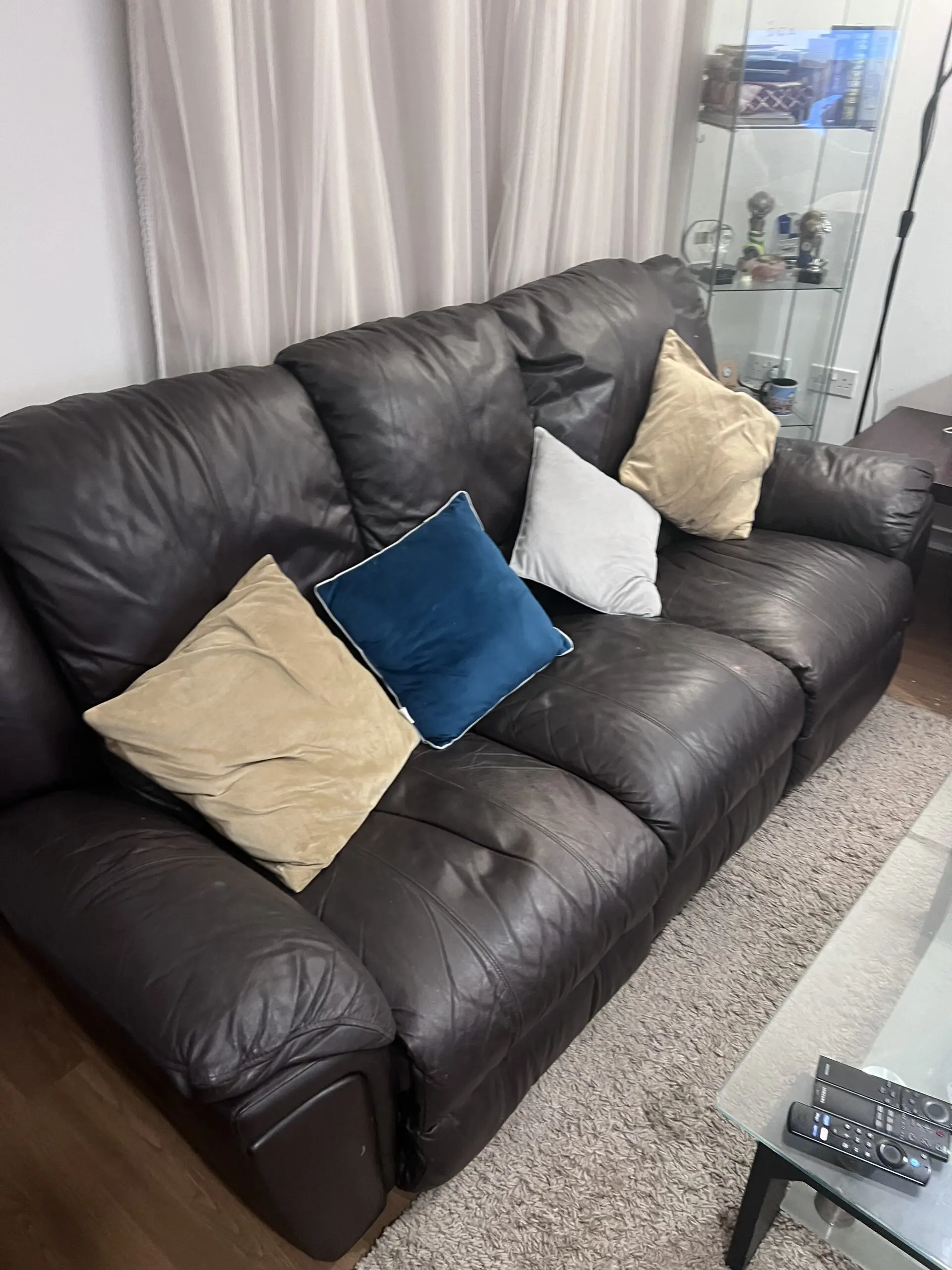 I have 2 three-seaters leather dfs sofa. one is in good condition and the other one has wear and tear. Both sofas recliners are working.